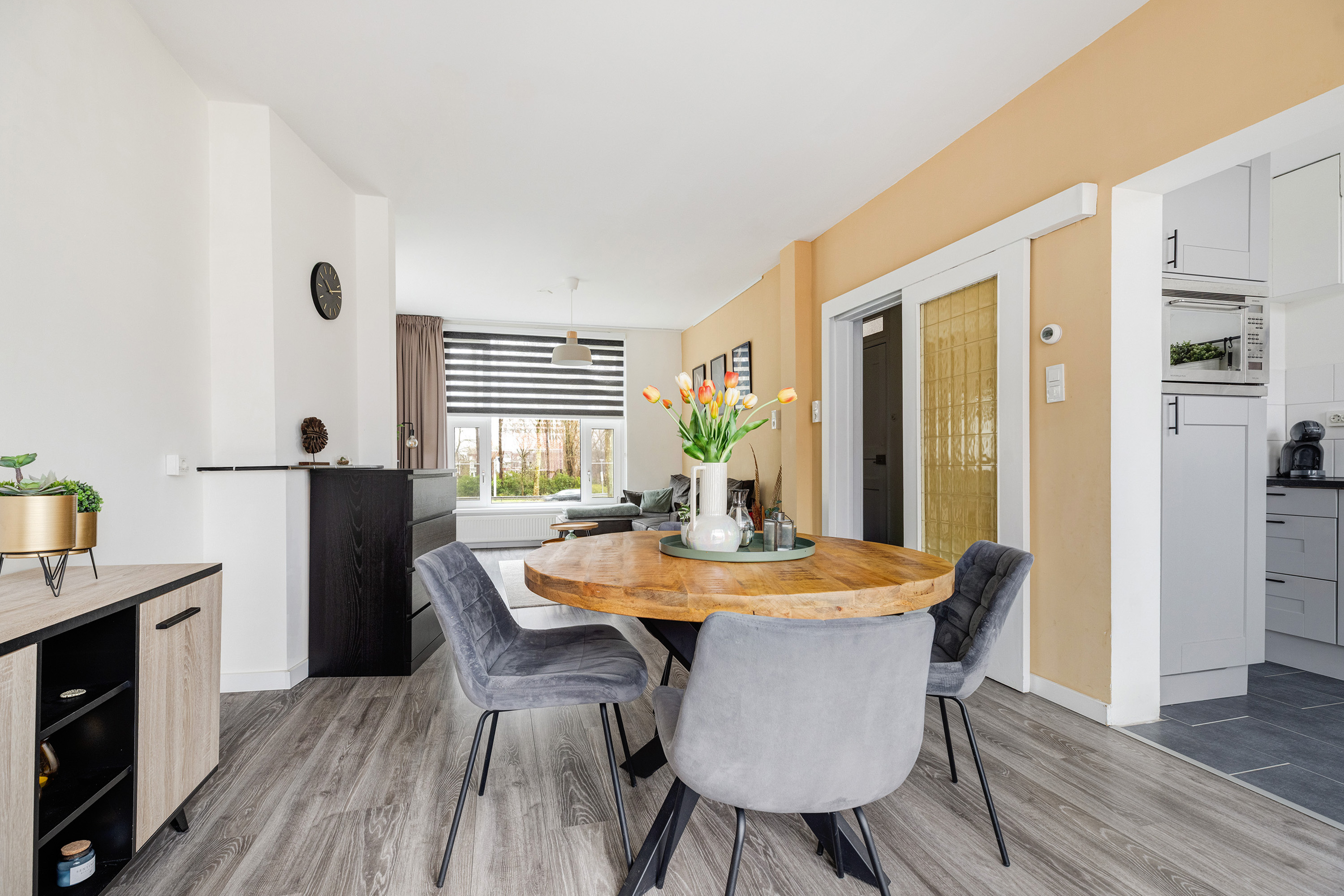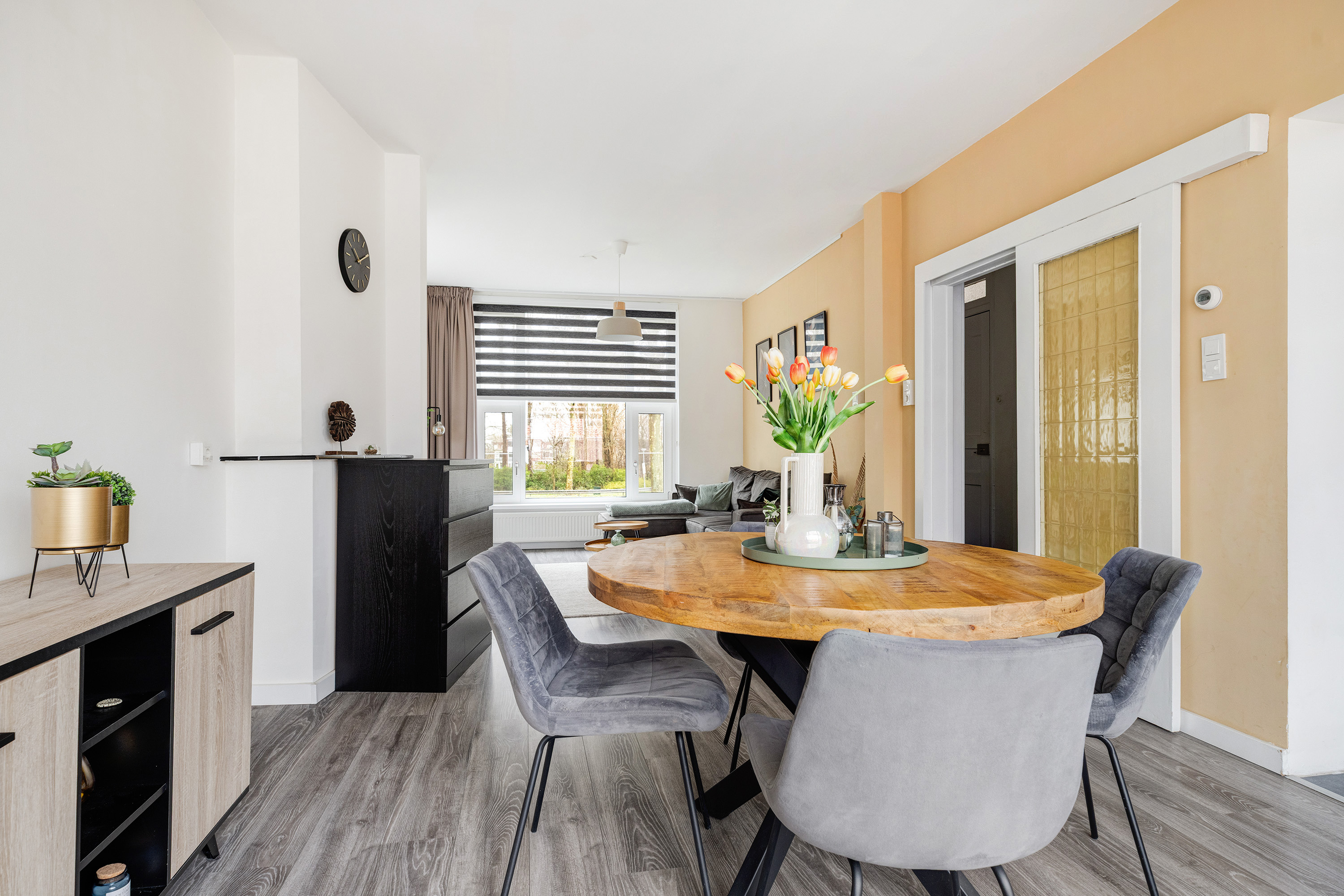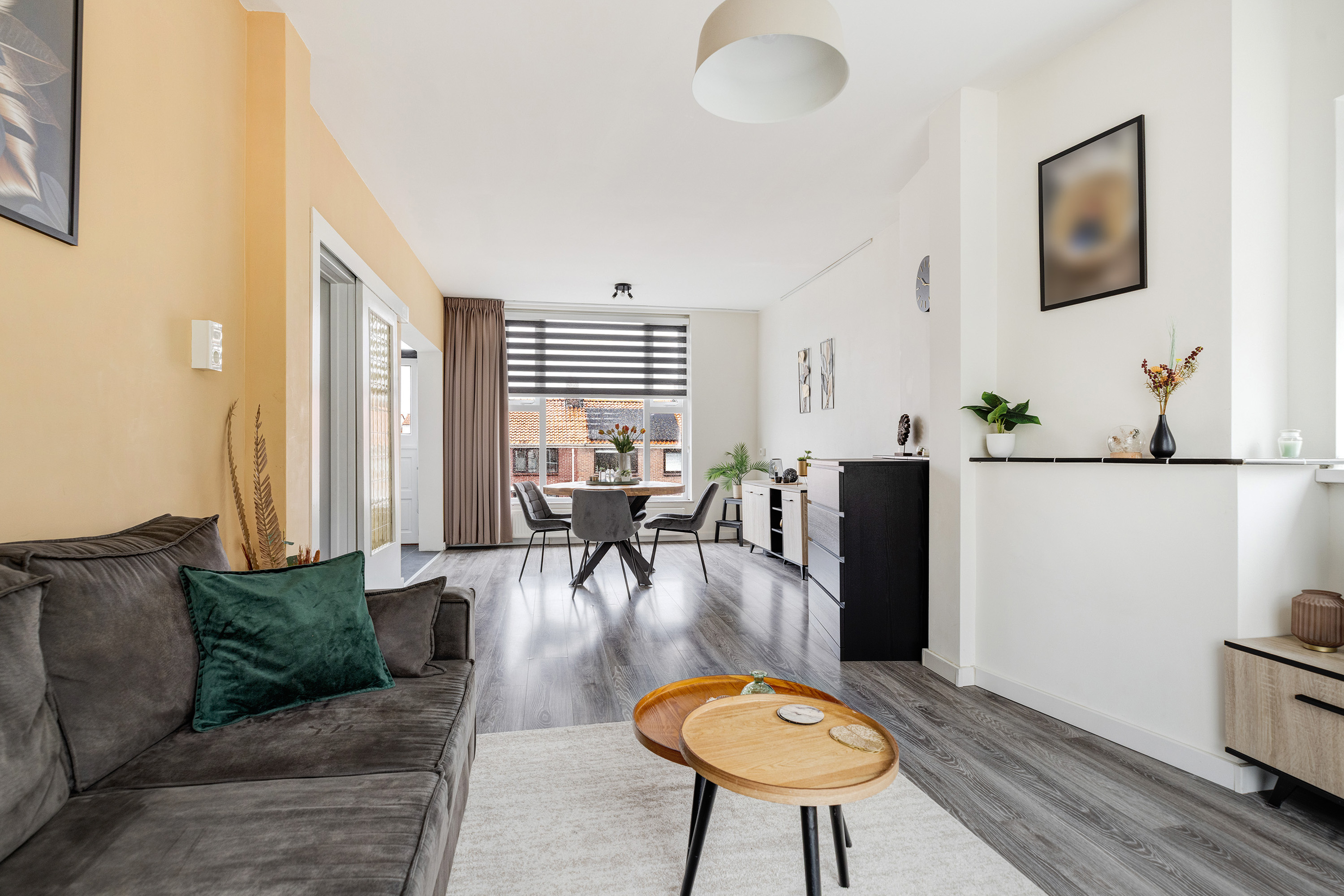 Vanuit de hal bereik je via een schuifdeur de woonkamer. De doorzon woonkamer is heerlijk licht dankzij de grote ramen aan zowel de voor- als achterzijde. De ruimte is netjes afgewerkt met een laminaatvloer en strak gestucte wanden en plafonds, wat zorgt voor een moderne en rustige basis voor ieder interieur.