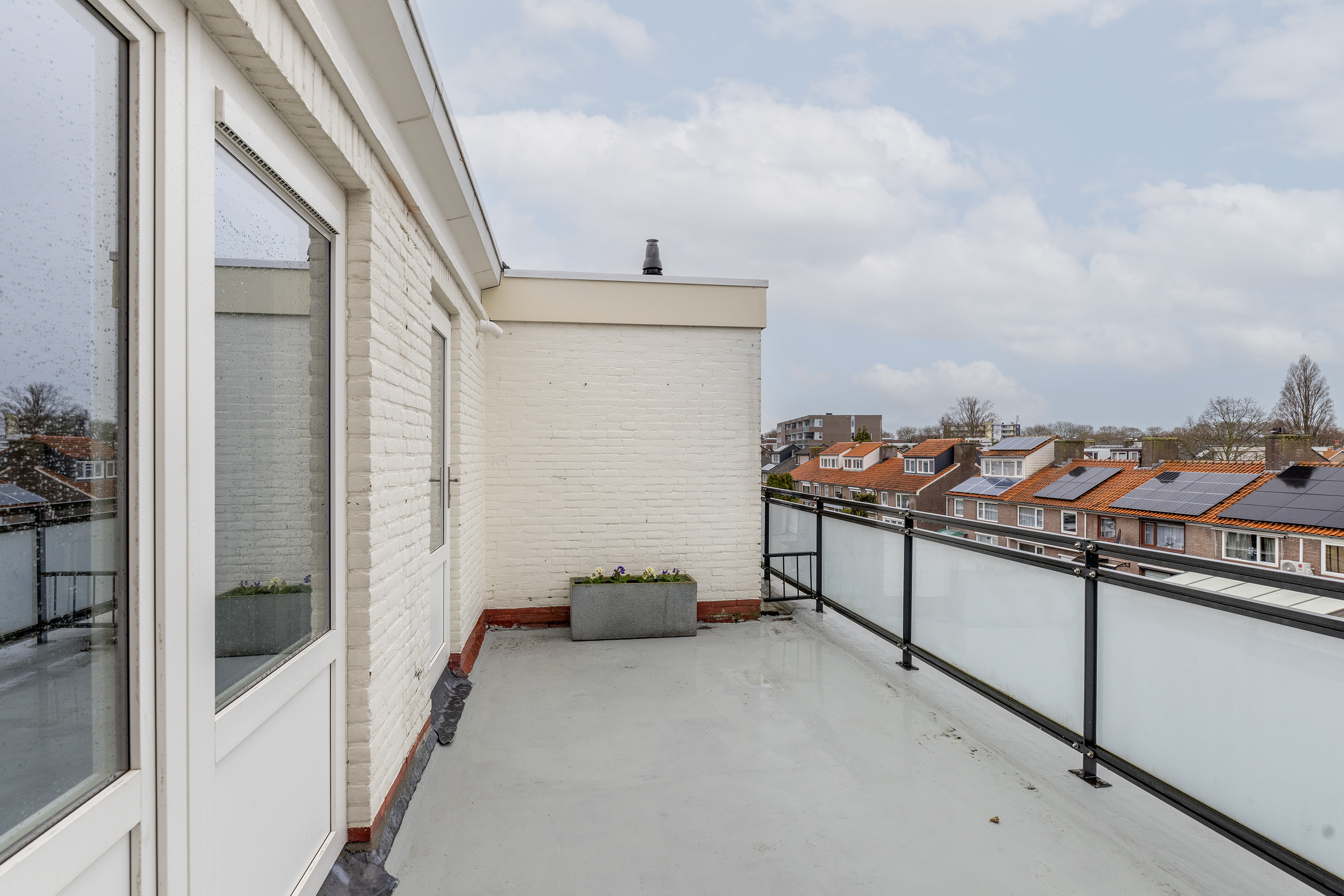 Het dakterras ligt op het noordwesten en biedt verrassend veel ruimte. Hier is eenvoudig plaats voor een royale loungehoek of een gezellige buitentafel, waardoor je hier heerlijk kunt ontspannen of genieten van lange zomeravonden.