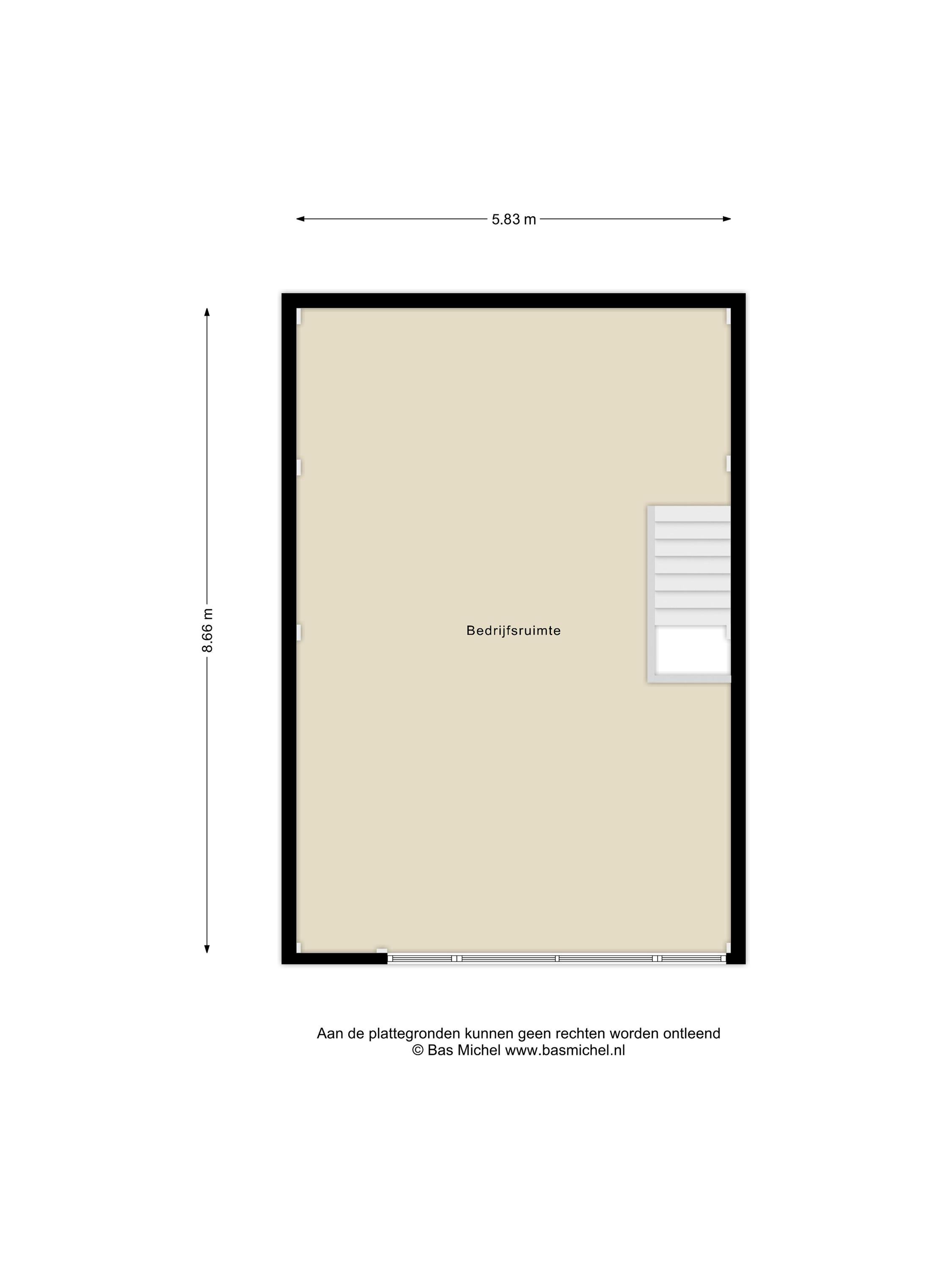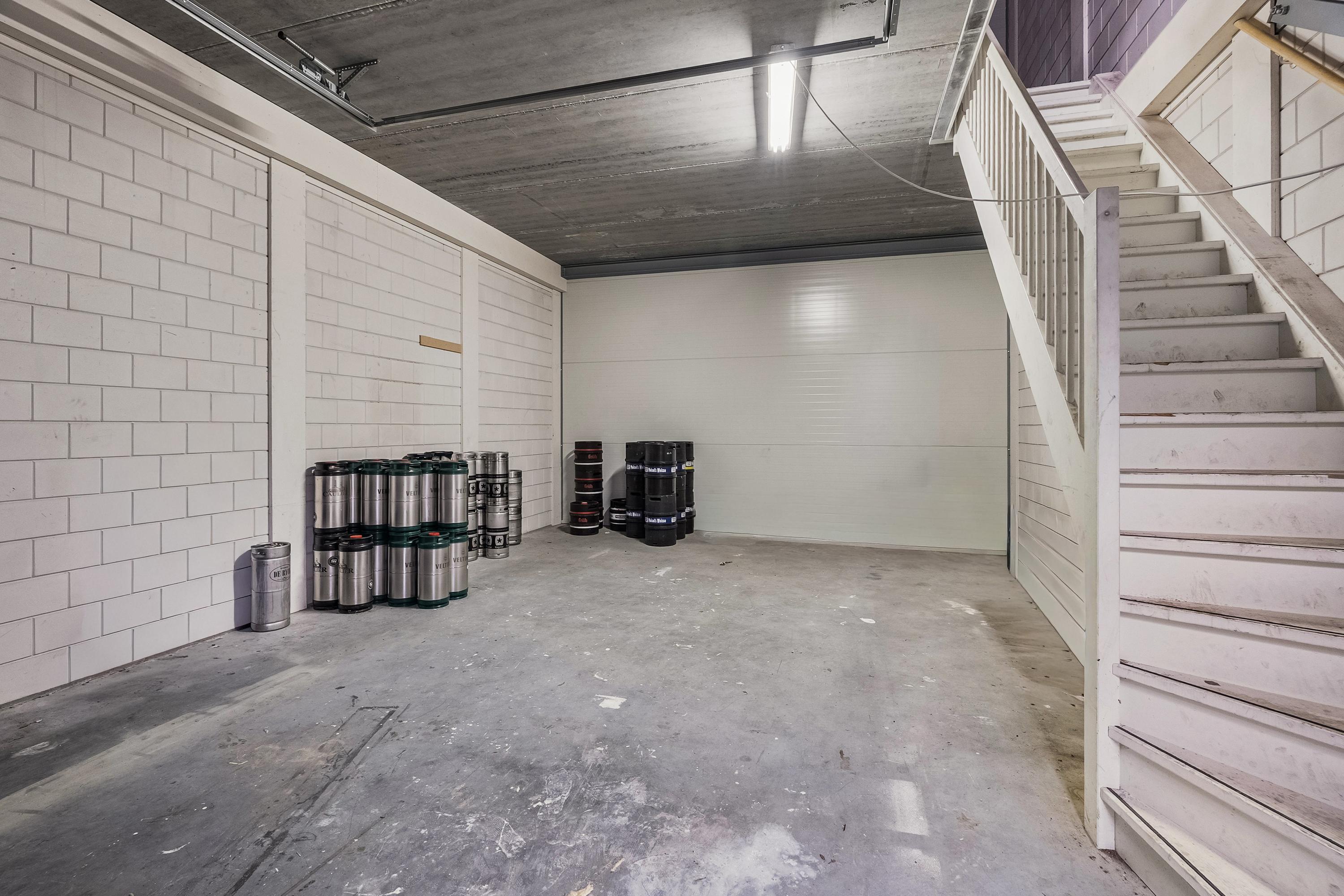 De bedrijfs-/opslagruimte voorzien van een glad afgewerkte betonvloer.