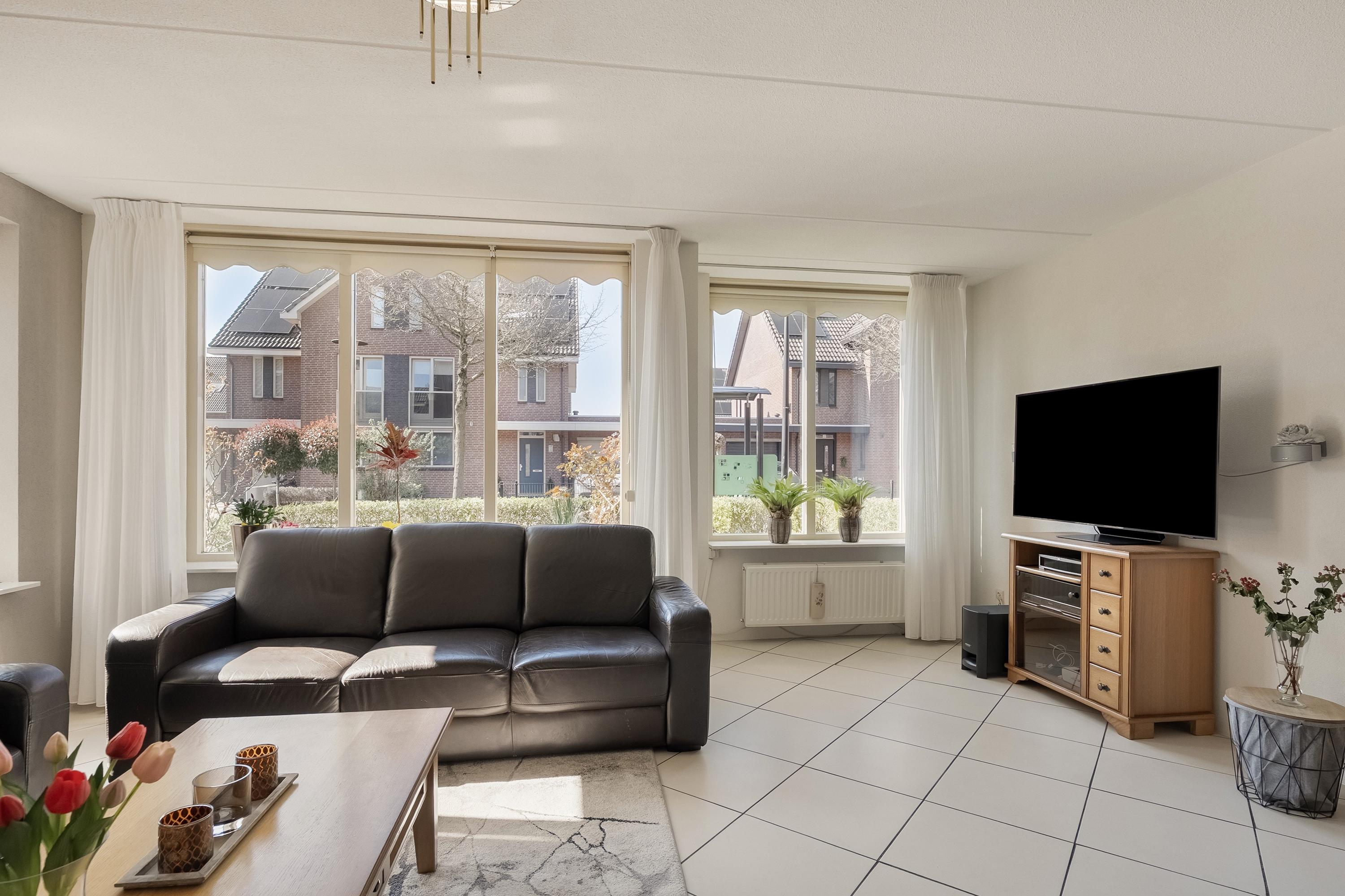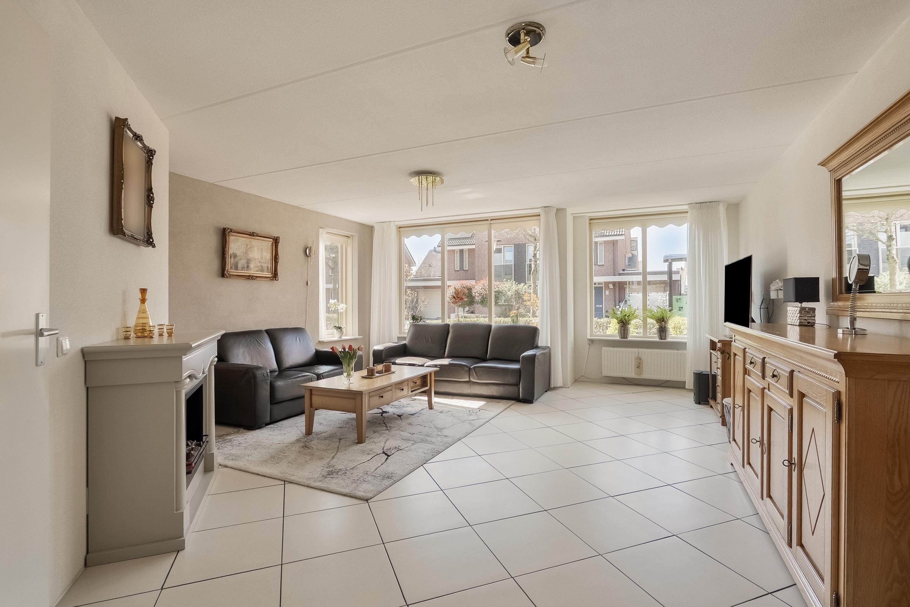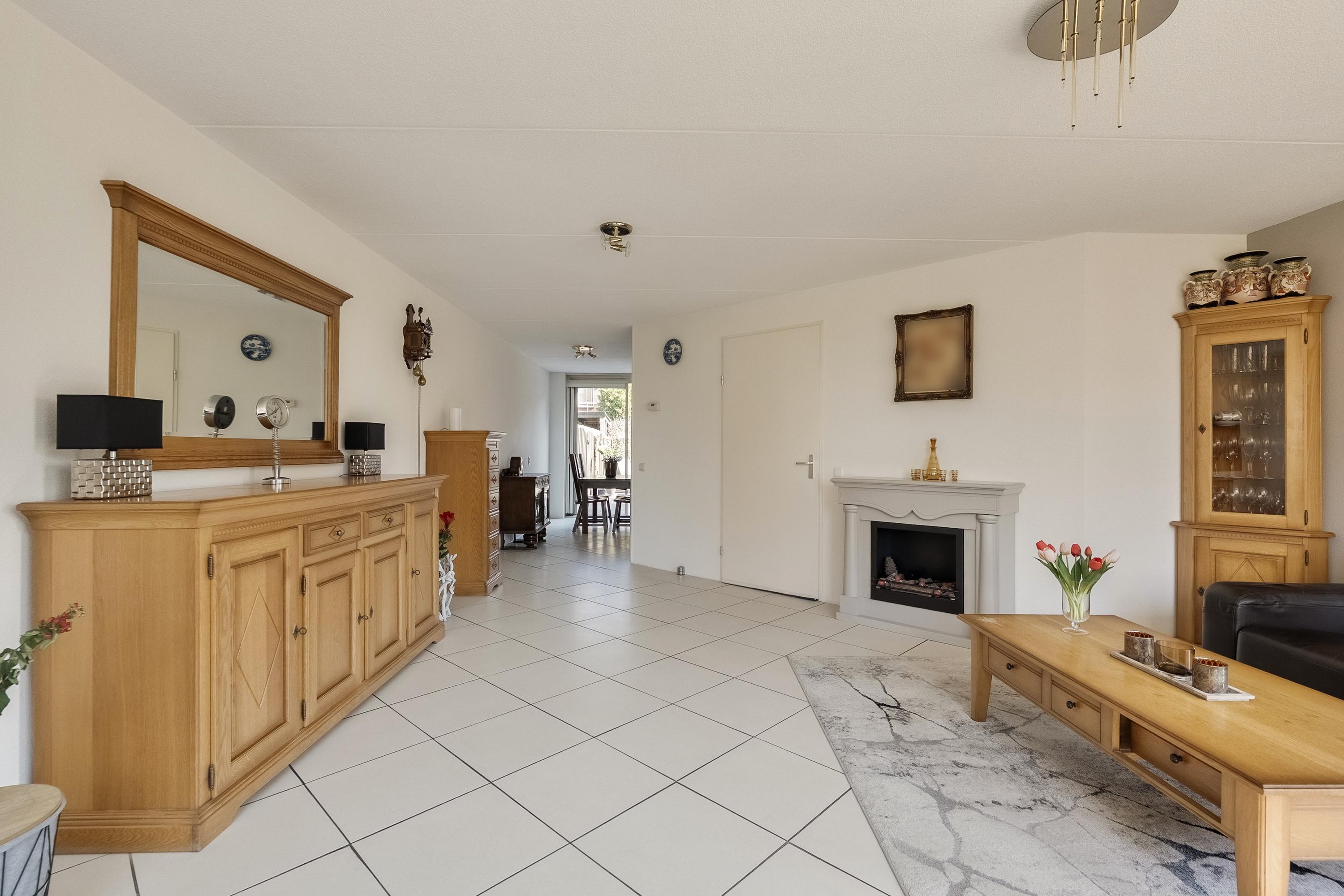 De royale, lichte woonkamer is gelegen aan de voorzijde van de woning. Deze degelijke woning is gebouwd met klassieke stijl kenmerken zoals een sfeervolle erker met grote glazen ramen. Door de erker biedt de woonkamer een mooie lichtinval die van verschillende zijden binnenvalt en de kamer ruimer en eleganter maakt. De erker nodigt uit tot een knusse zithoek/leeshoek. De woonkamer is verder afgewerkt met tegelvloer met vloerverwarming wat zorgt voor een aangenaam binnenklimaat en meer vrijheid in uw inrichting. Verder beschikt de woonkamer over twee elektrisch bedienbare screens.