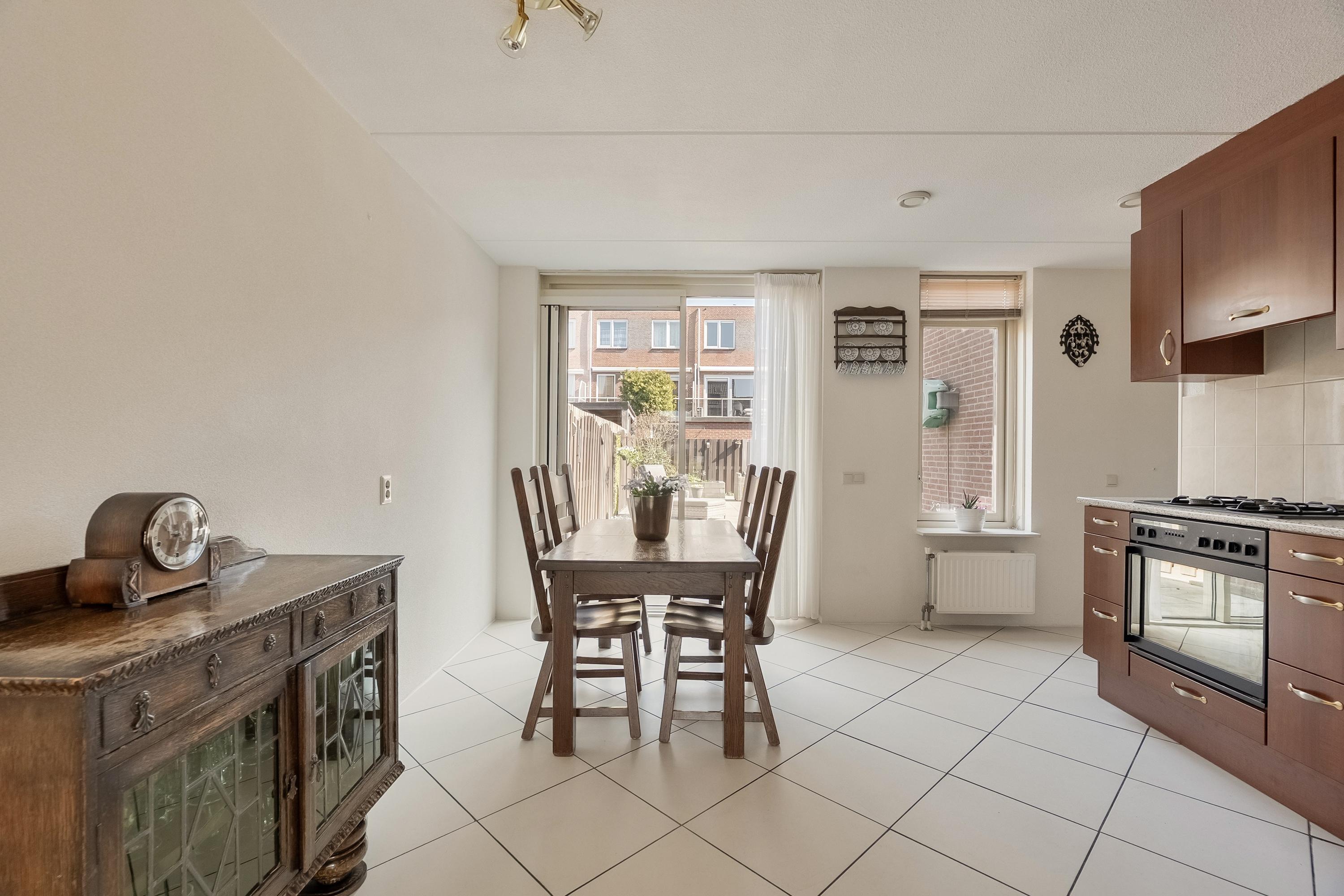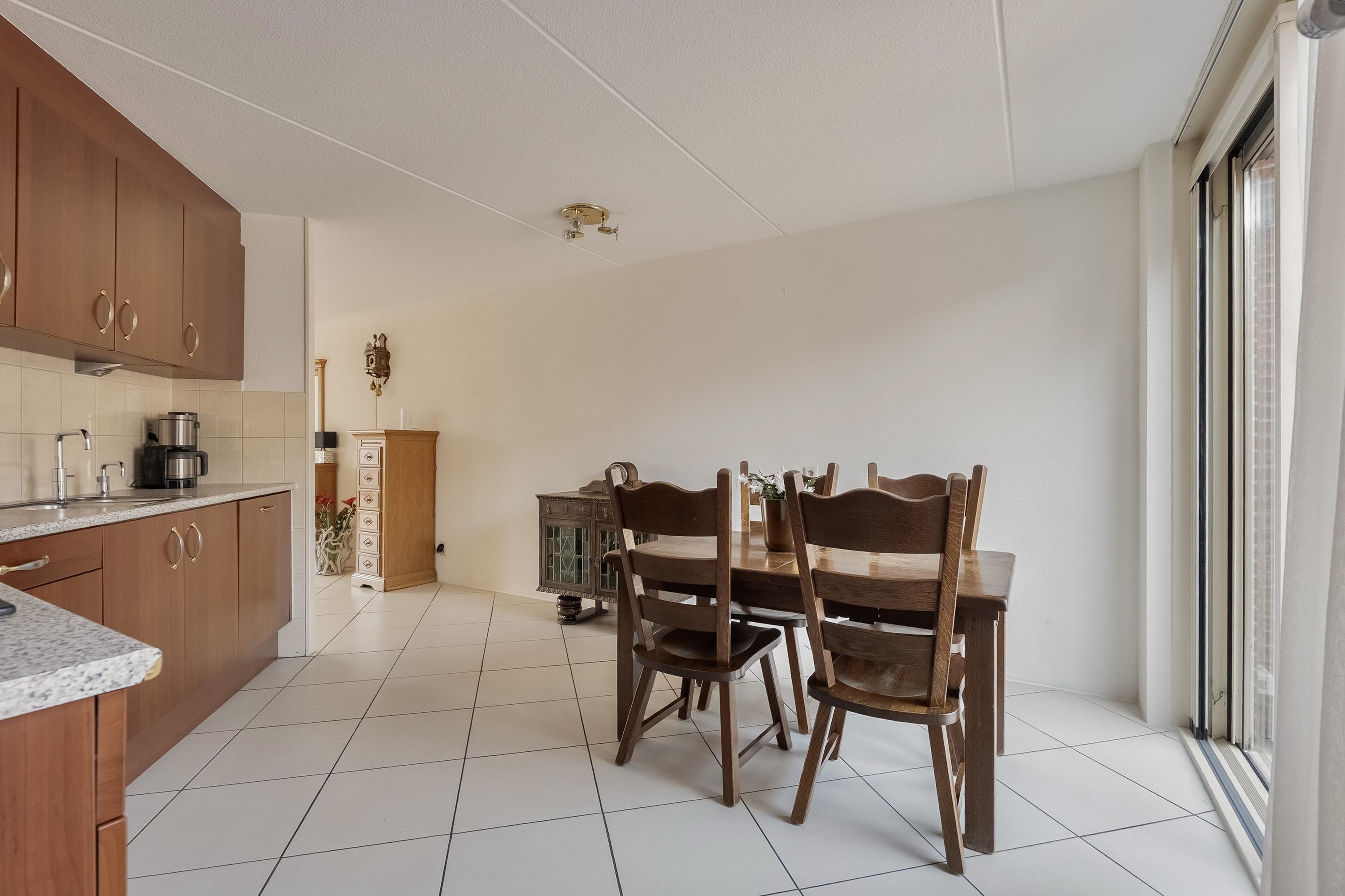 De tuingerichte keuken is uitgevoerd in een L-opstelling plus een extra apparatenkast en is voorzien van diverse inbouwapparatuur zoals koelkast, vrieskast, 4-pits gaskookplaat, afzuigkap, magnetron, twee ovens en een vaatwasser. Verder is de keuken voorzien van anderhalve spoelbak. Het geheel is uitgevoerd in lichte kleuren en afgewerkt met een houtlook kunststof aanrechtblad, wandtegels, sfeerverlichting en tegelvloer met vloerverwarming. Middels de schuifpui met hor heeft u toegang tot de achtertuin. Via de keuken heeft u toegang tot de inpandige garage.