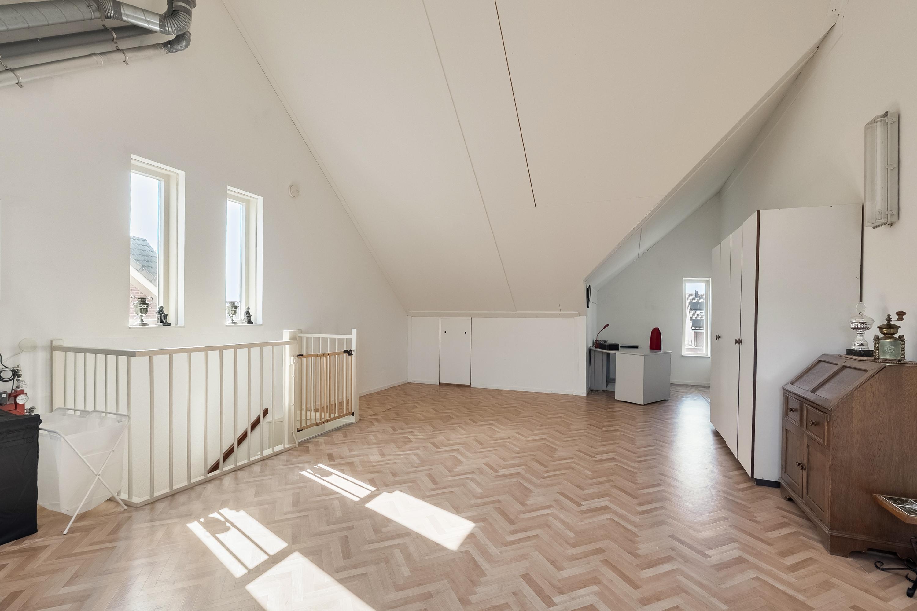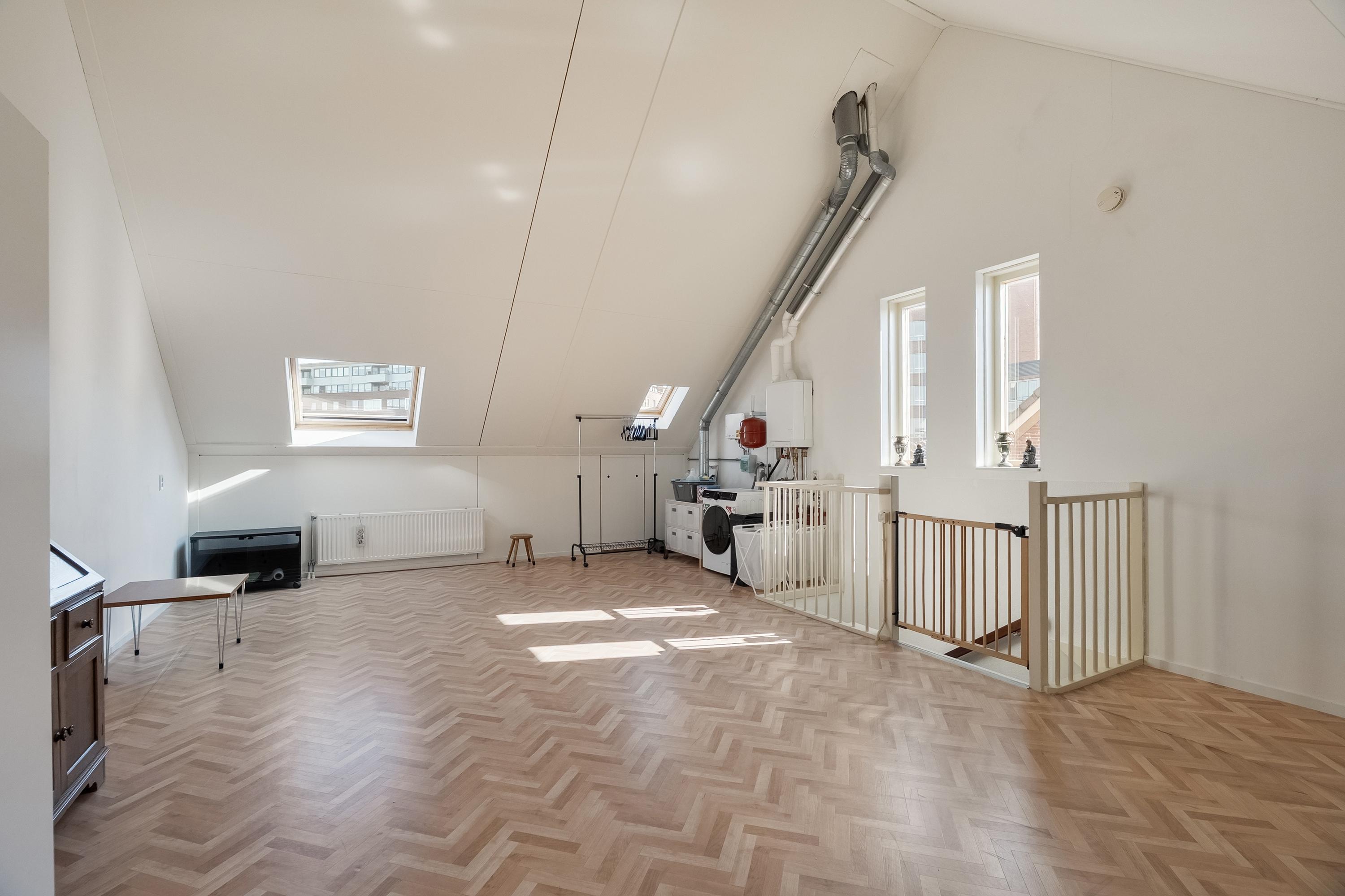 Royale zolderverdieping met opstelling voor de HR C.V. combiketel (Intergas 2022), omvormer voor de 15 zonnepanelen, afzuigsysteem, wasmachine- en drogeraansluiting, twee Velux dakramen en bergruimte achter het knieschot. Dankzij de reeds geplaatste dakramen biedt deze verdieping bovendien uitstekende mogelijkheden voor het realiseren van extra kamers. De zolder is verder verwarmd en afgewerkt met zeilvloer.