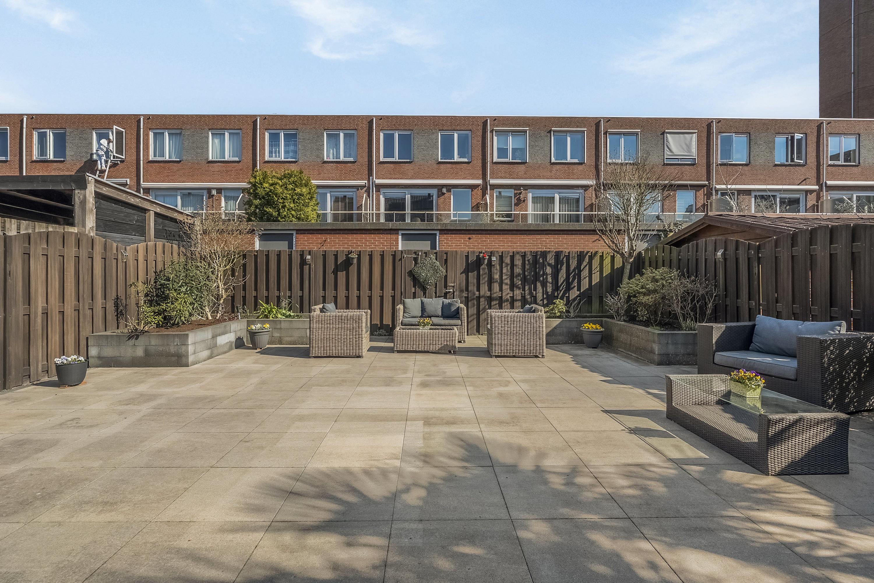 De achtertuin is gelegen op het oosten en is onderhoudsvriendelijk aangelegd. De tuin beschikt over sierbestrating, sierbeplanting, achterom, een buitenkraan, verlichting en stopcontacten.