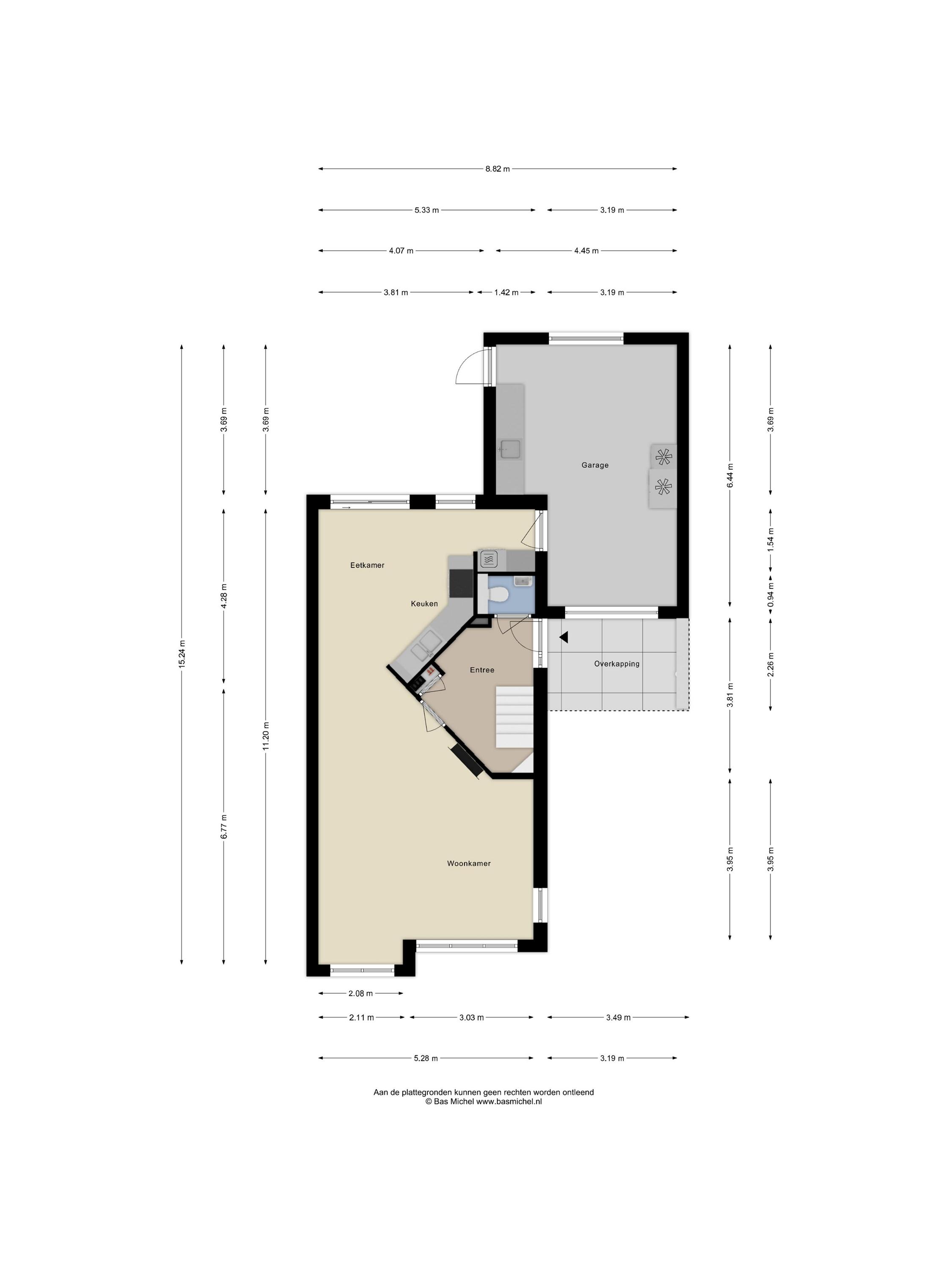 - Inpandige garage met elektrisch bedienbare garagedeur met afstandsbediening;