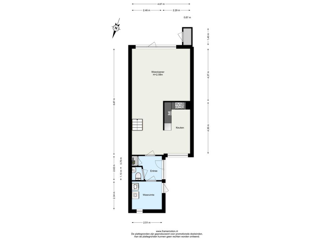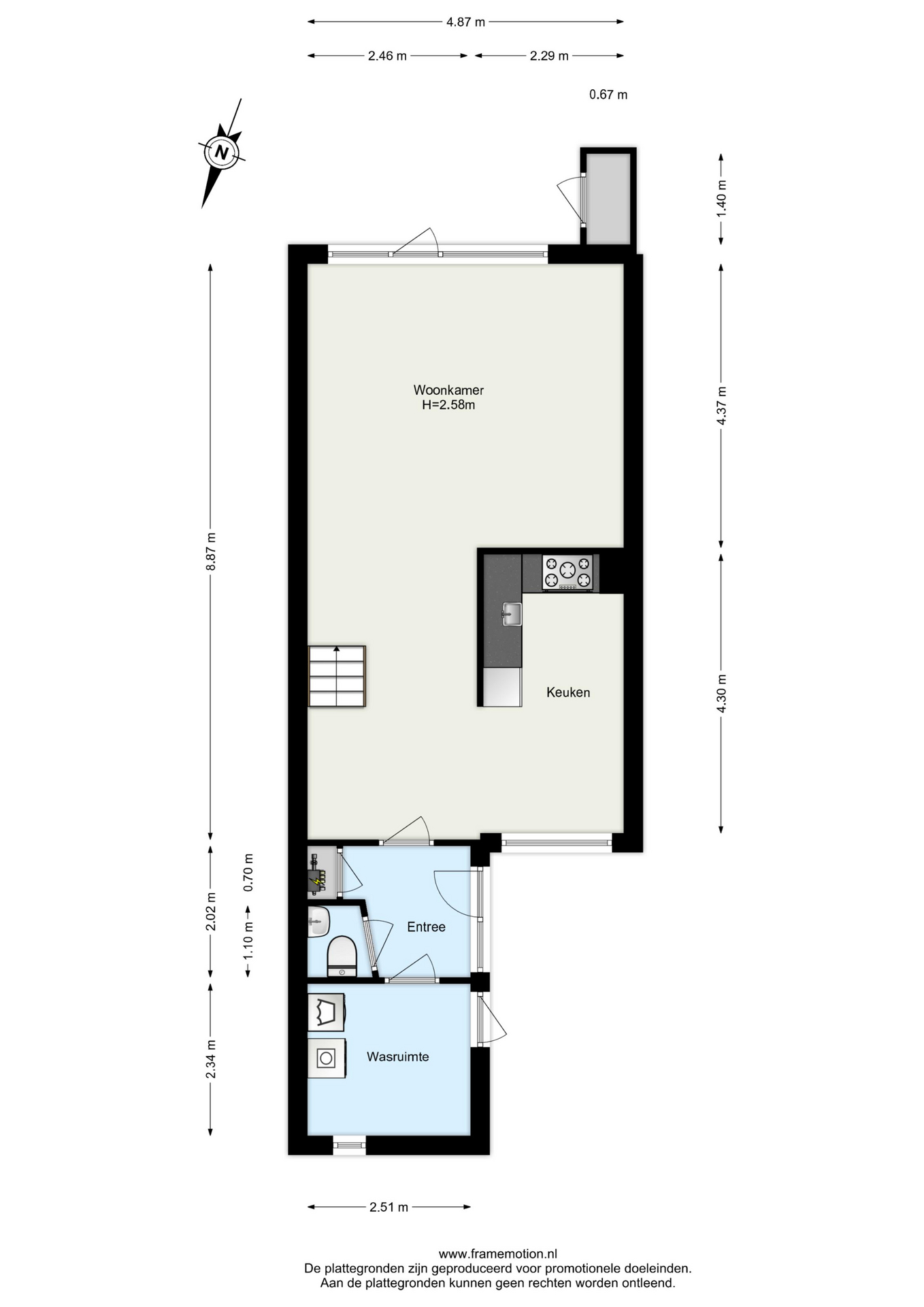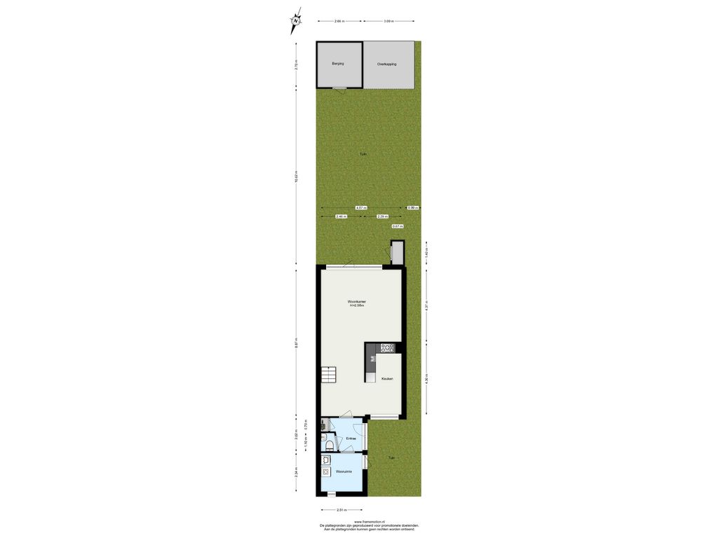 De ruime voortuin geeft toegang tot de entree van de woning. In de hal bevinden zich de meterkast, de modern afgewerkte toiletruimte en de toegang tot de inpandige berging.
