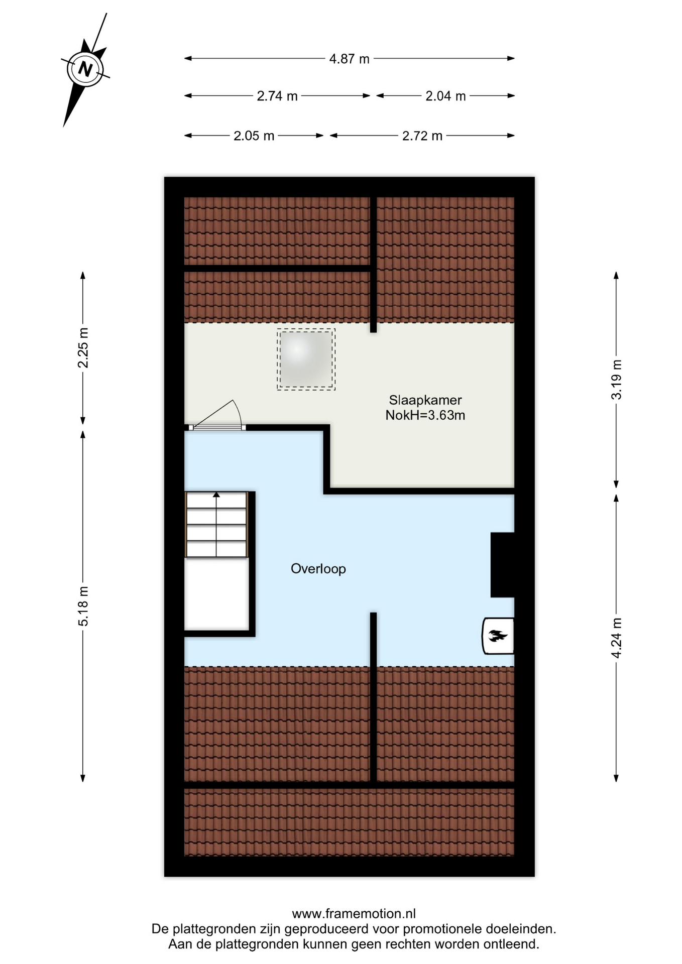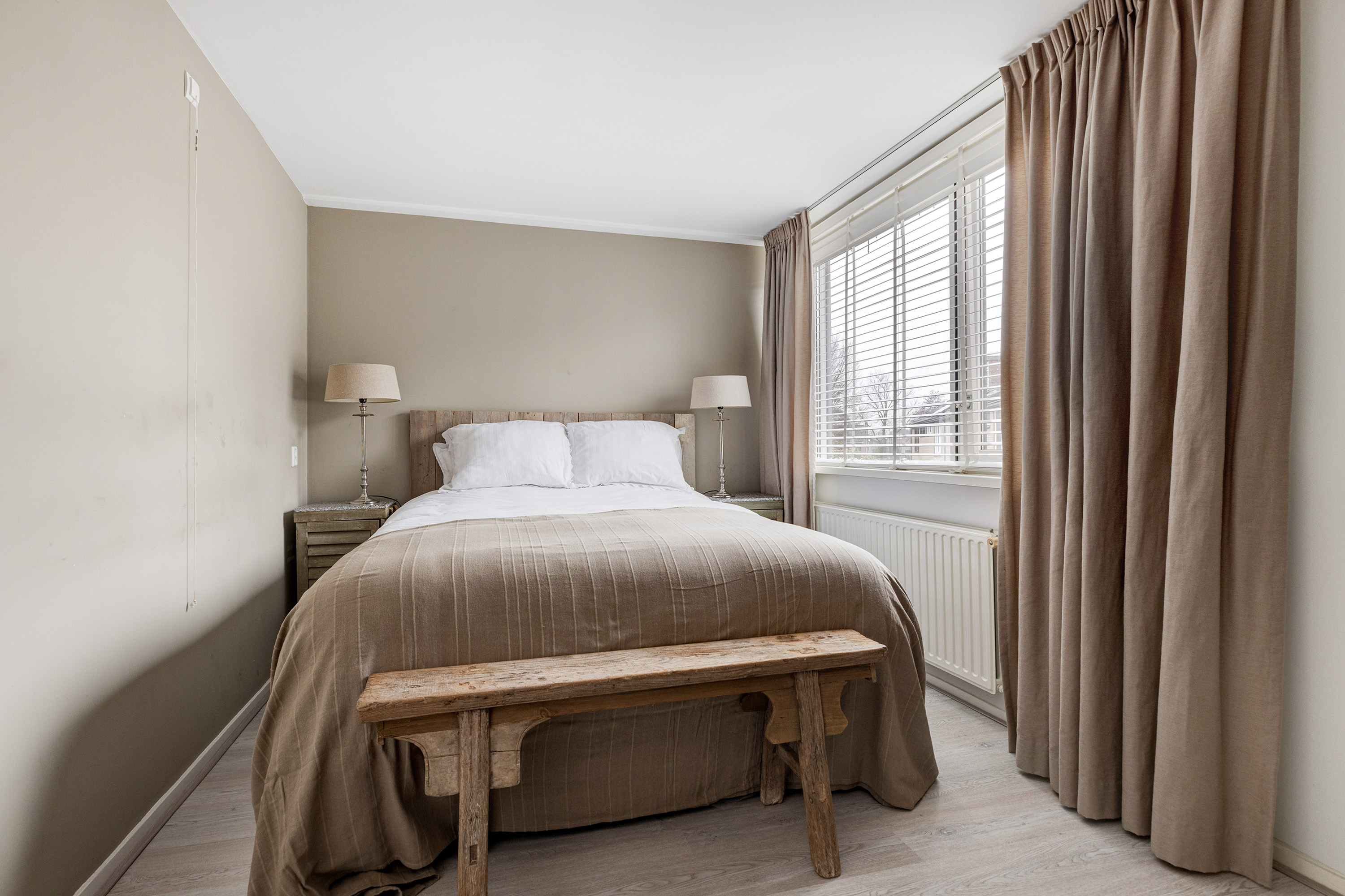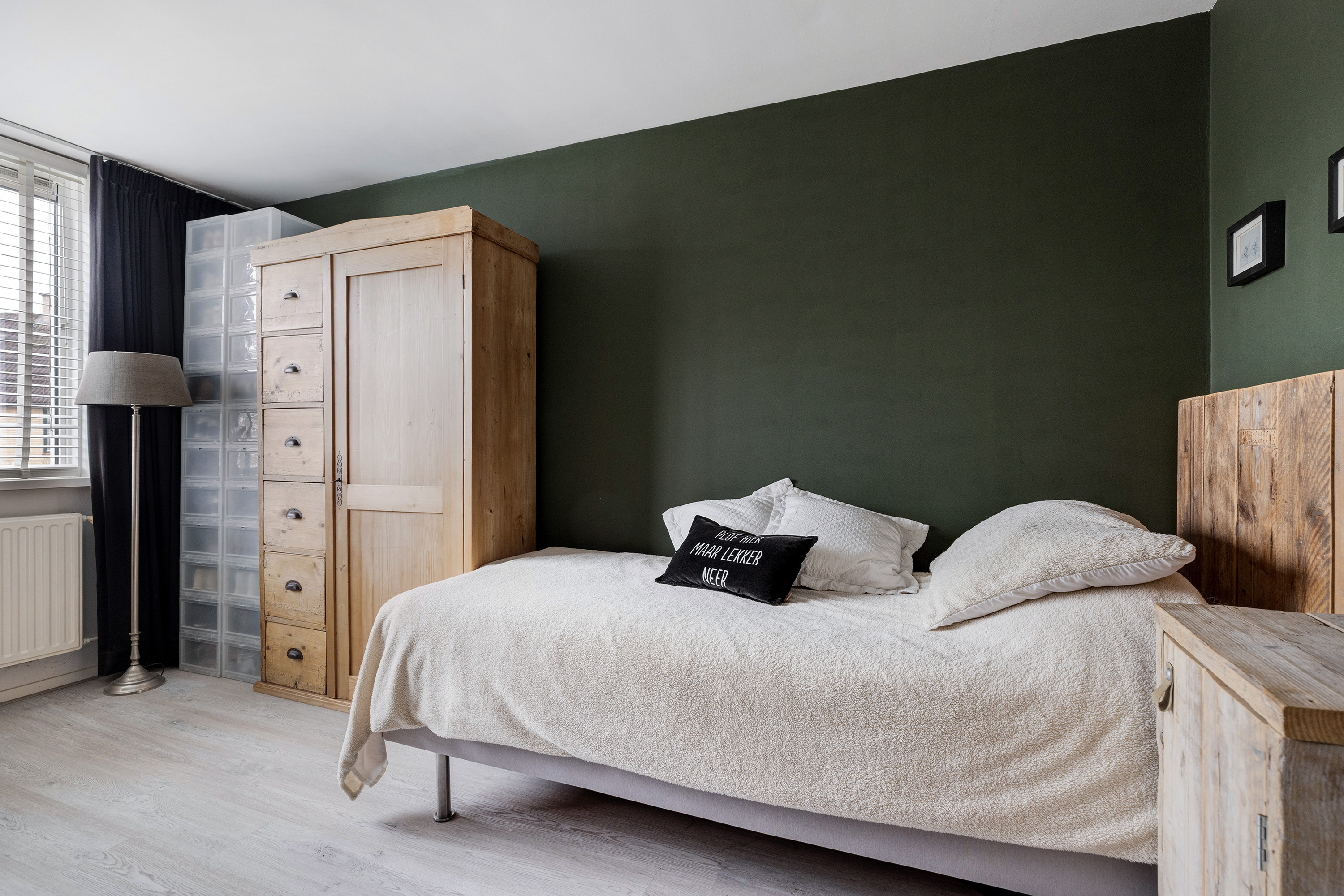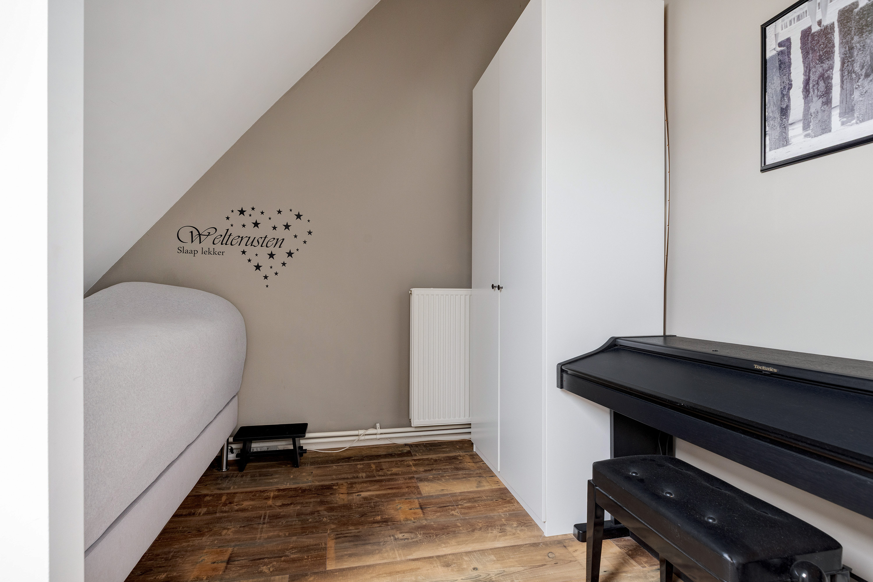 Aan de achterzijde is de vierde slaapkamer gerealiseerd, voorzien van een Velux dakraam met verduisterend gordijn en hor. Dankzij de hoge nok en de praktische indeling is dit een volwaardige slaapkamer met veel bergruimte. Indien gewenst is het mogelijk om op deze verdieping twee slaapkamers te realiseren.