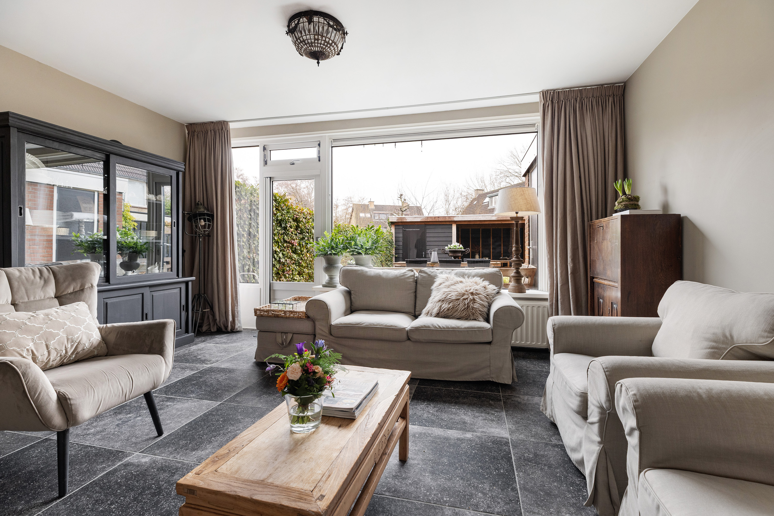 - Tuingerichte woonkamer met schuifhor naar de tuin