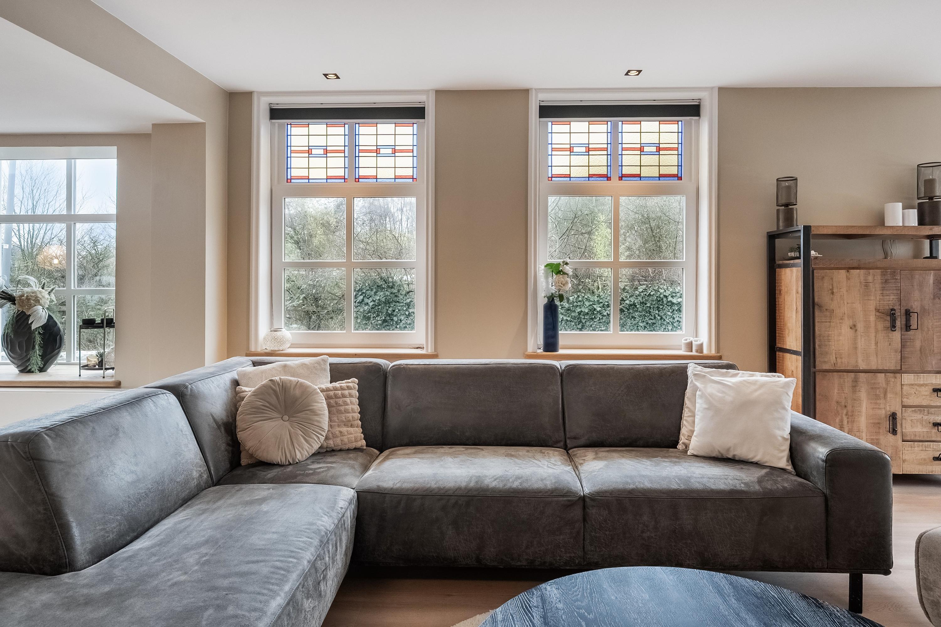- Authentieke details zoals glas-in-lood gecombineerd met modern wooncomfort