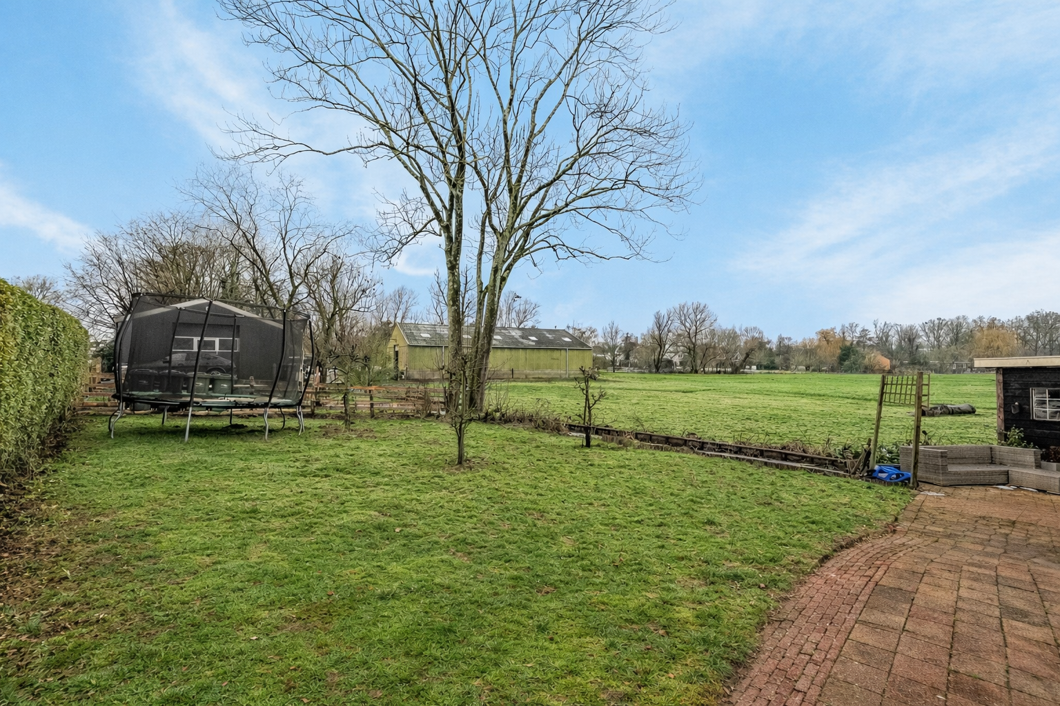 De riante, speels aangelegde tuin is een absoluut hoogtepunt. Hier vindt u altijd een zonnig of juist beschut plekje om te ontspannen, met vrij uitzicht over het achtergelegen weiland en water. Dankzij de hoge groene haag aan de dijkzijde geniet u van optimale privacy. Dit is een woning waar u elke dag thuiskomt met een gevoel van rust en vrijheid.