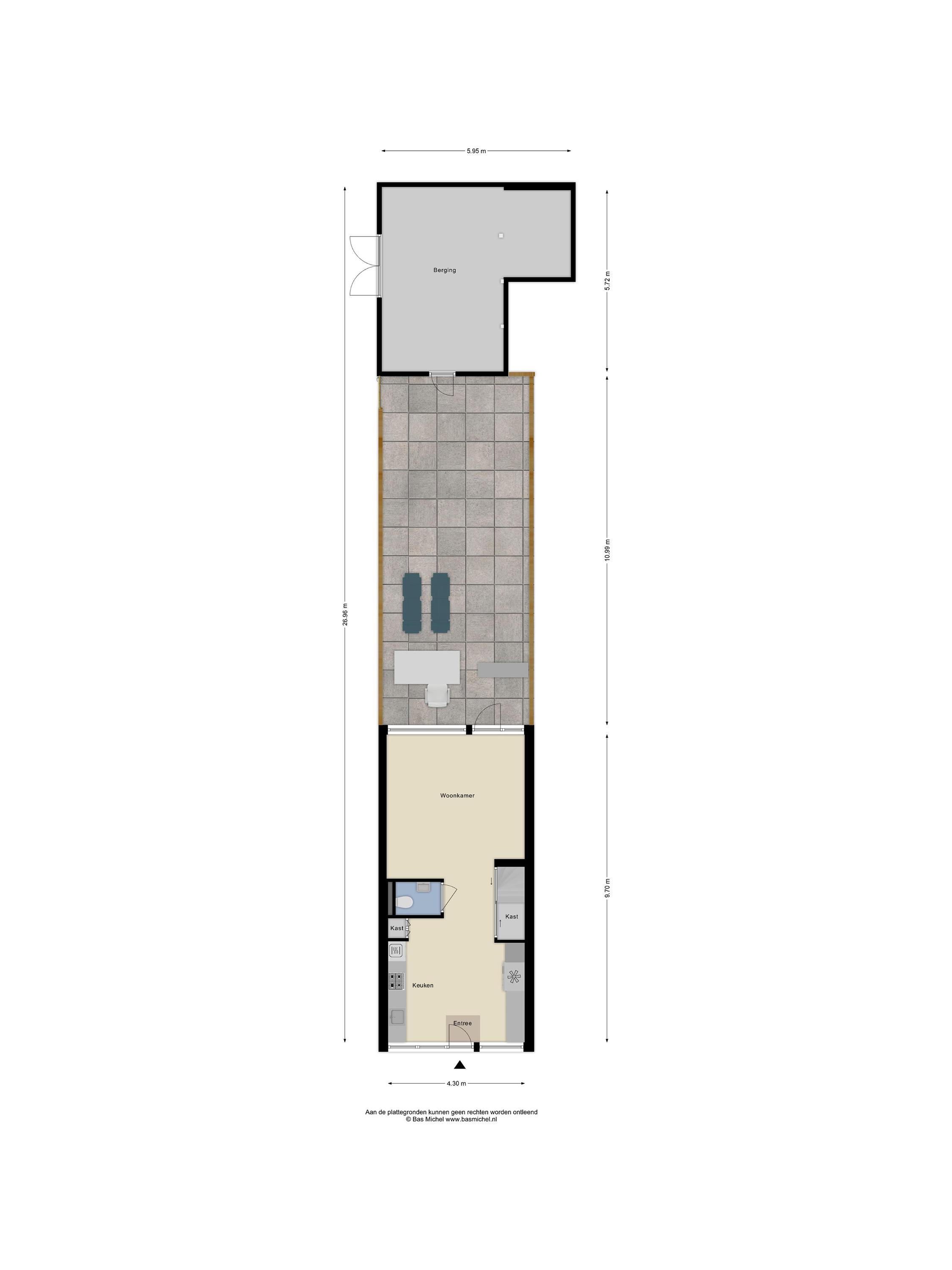 • Vrijstaande houten berging ca. 28 m² met dubbele deuren naar de straat