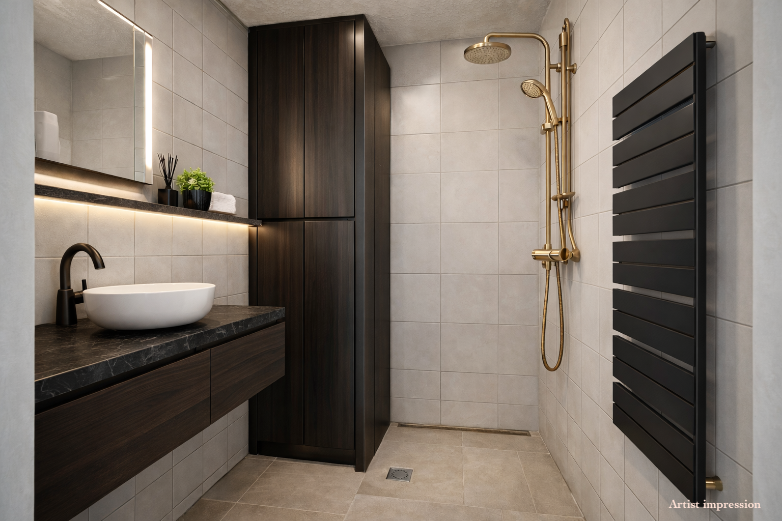 De woonkamer is een fijne, lichte leefruimte waar wonen en koken op een prettige manier samenkomen. De open keuken sluit logisch aan, waardoor de begane grond als één grote ruimte aanvoelt. Er is ruimte voor een comfortabele zithoek én een eettafel waar je met het gezin of vrienden aan kunt zitten. De vloerverwarming op de begane grond maakt het geheel in de koudere maanden extra aangenaam. Dit is de ruimte waar het dagelijks leven zich vanzelf afspeelt.