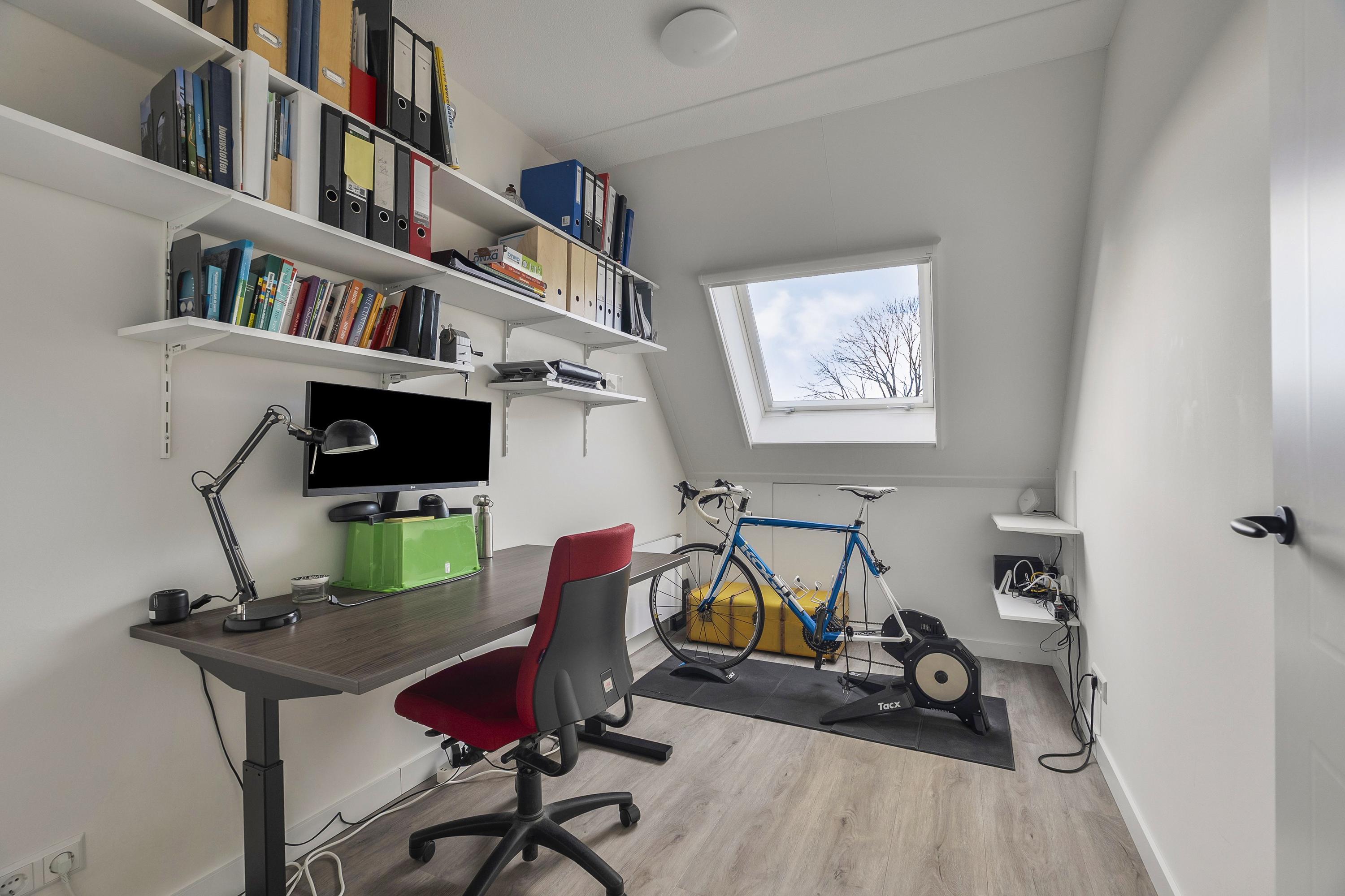 Slaapkamer 2 (ca. 8 m2) is gelegen aan de achterzijde van de woning en voorzien van een dakraam met hor en verduisterend gordijn en bergruimte achter het knieschot.