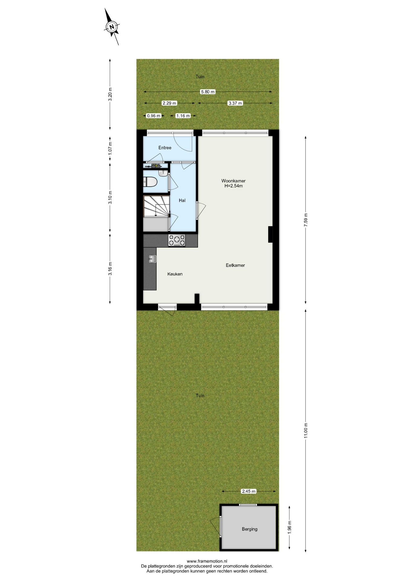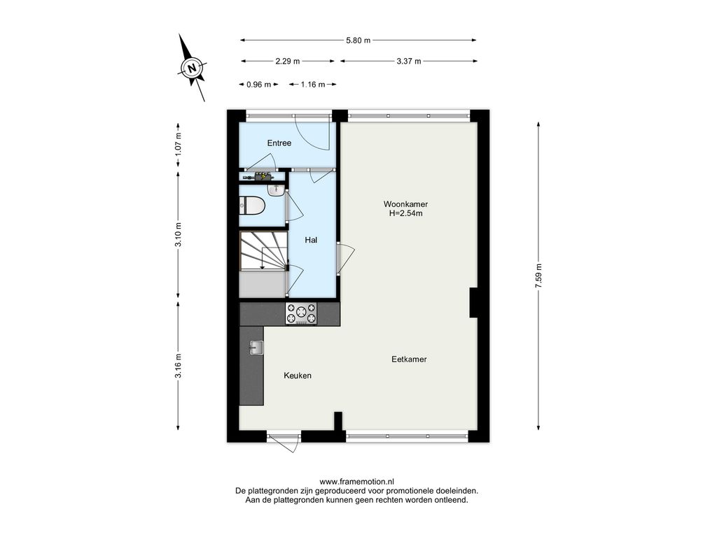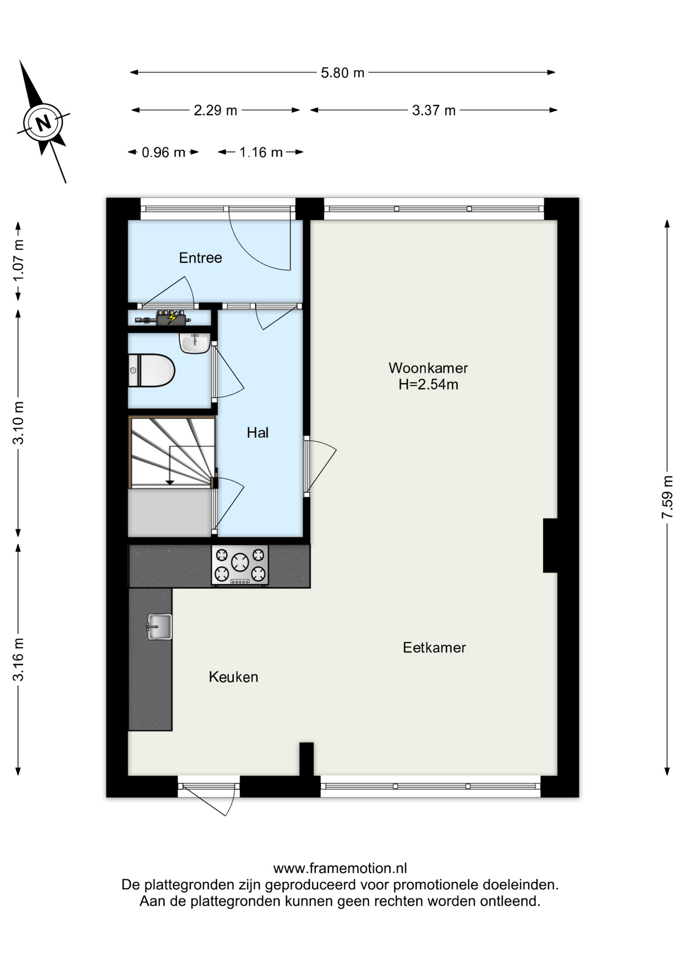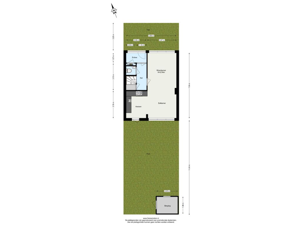Via het voorportaal met ruimte voor de garderobe en de meterkast betreedt u de woning. De hal geeft toegang tot de trap naar de eerste verdieping en de toiletruimte met hangend toilet en fonteintje. De woonkamer is licht en ruim, voorzien van een laminaatvloer en strak gestucte wanden en plafonds. De grote ramen aan voor- en achterzijde zorgen voor een prettige lichtinval gedurende de hele dag.