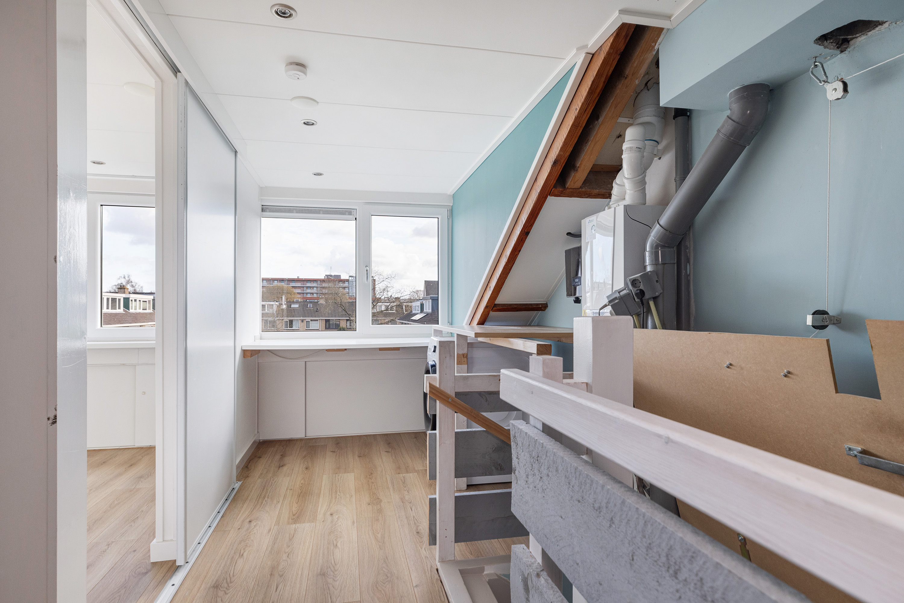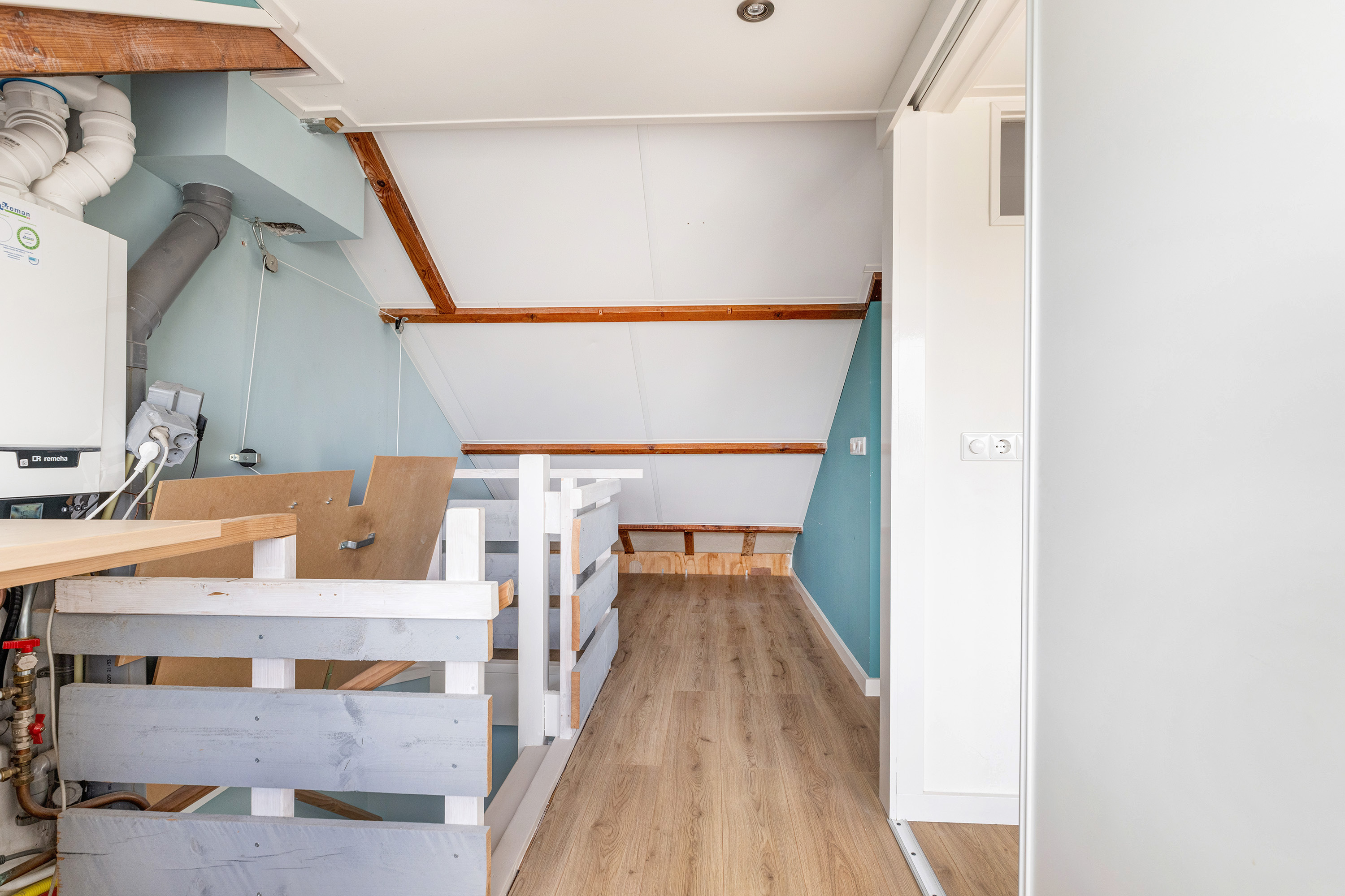 De tweede verdieping beschikt over een voorzolder met aansluiting voor wasmachine en droger, de CV-opstelling (2023) en de omvormer van de zonnepanelen. Daarnaast is er veel praktische bergruimte onder het schuine dak.