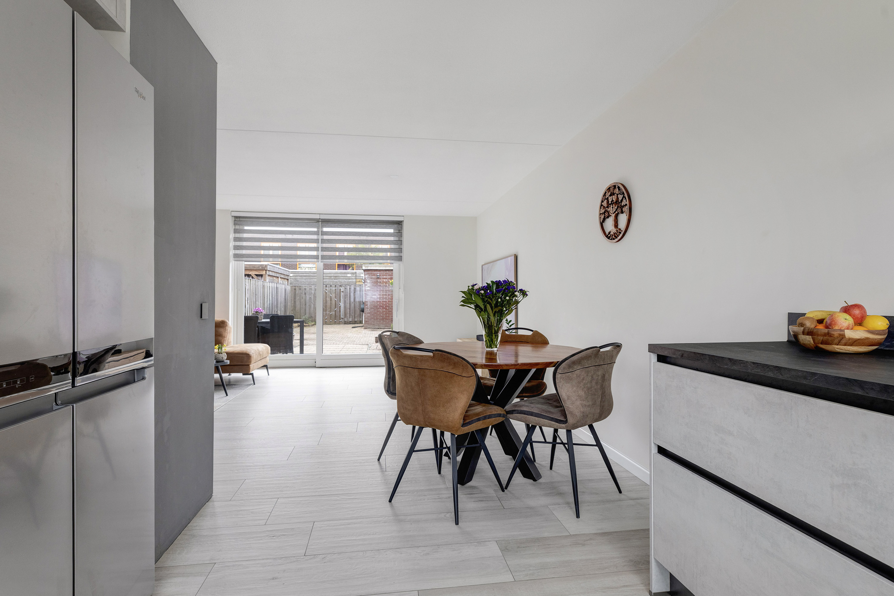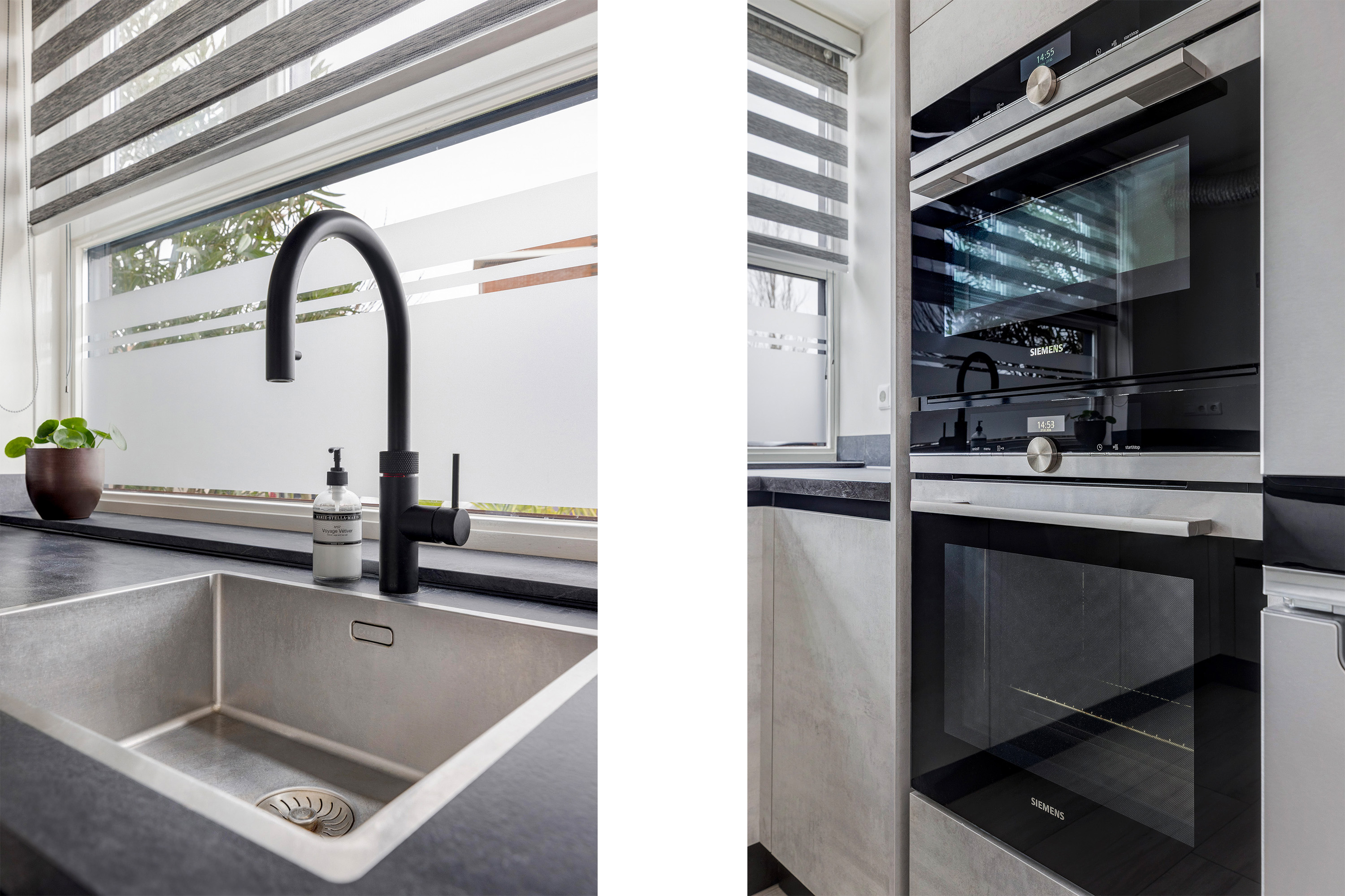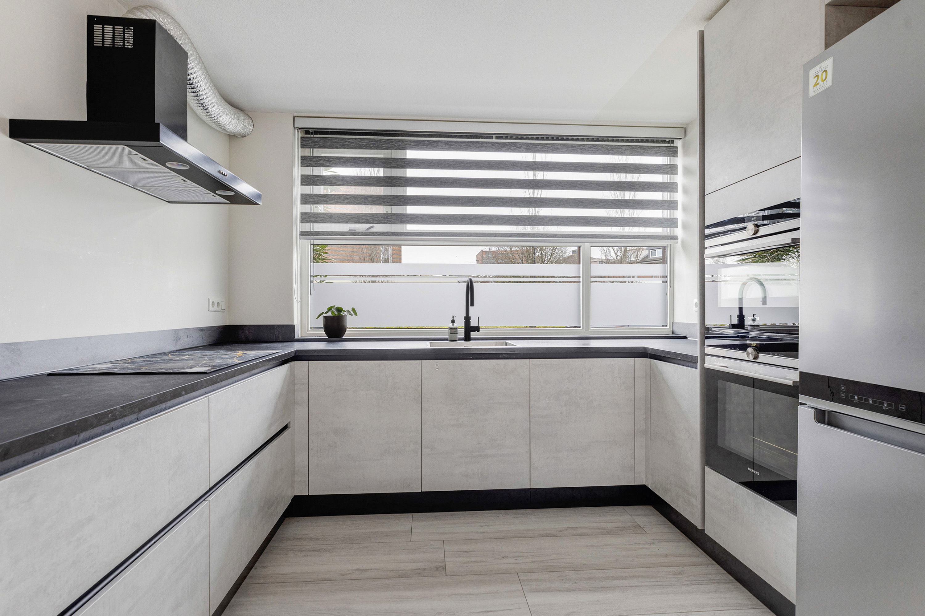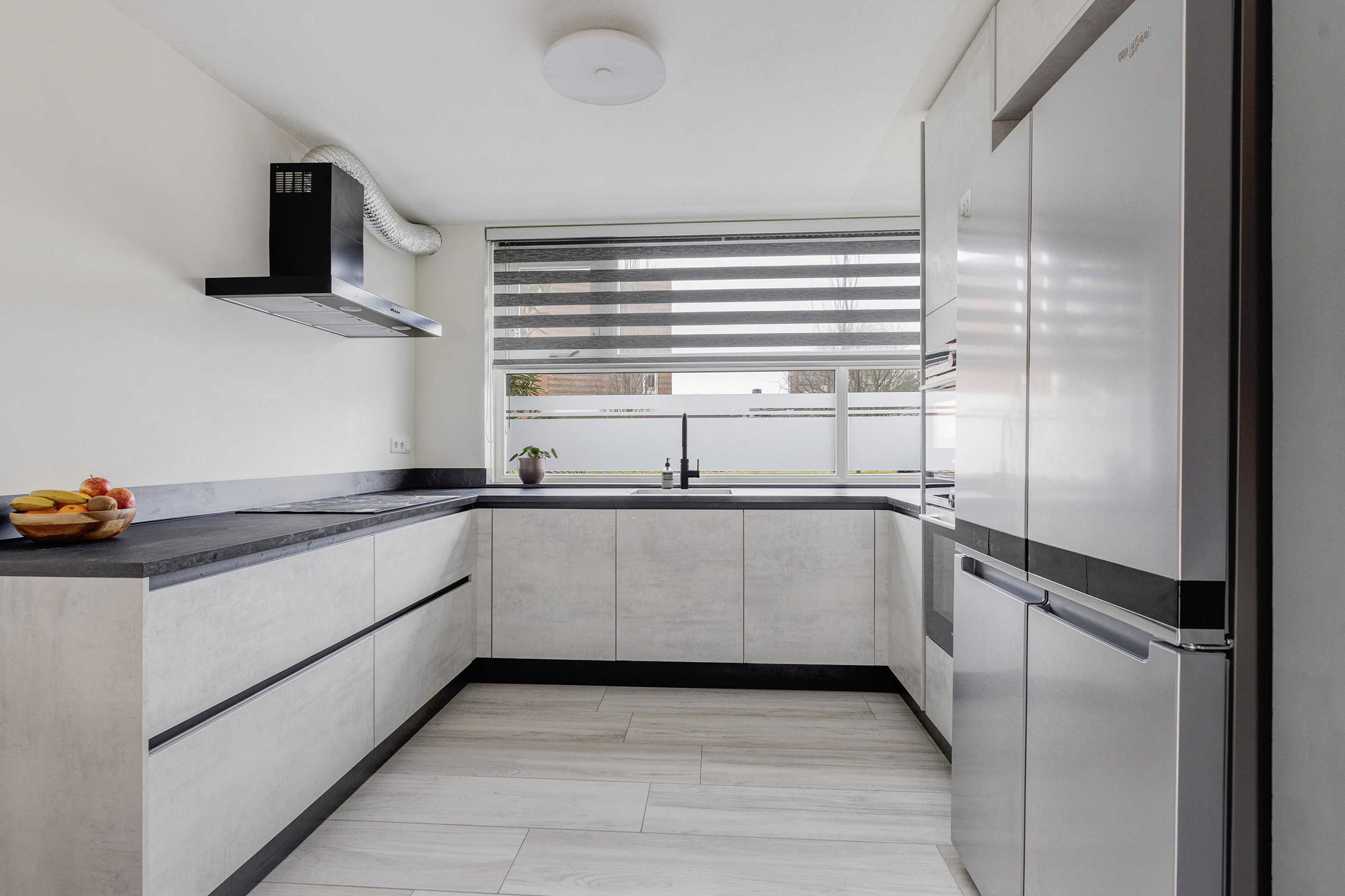 De ruime keuken bevindt zich aan de voorzijde van de woning en profiteert van veel natuurlijk licht dankzij het grote raam. De keuken (bouwjaar 2022) is modern uitgevoerd en voorzien van diverse inbouwapparatuur, waaronder een inductiekookplaat, combi-oven, heteluchtoven, vaatwasser, afzuigschouw en een Quooker. Dankzij het royale werkblad is er volop werk- en bergruimte.