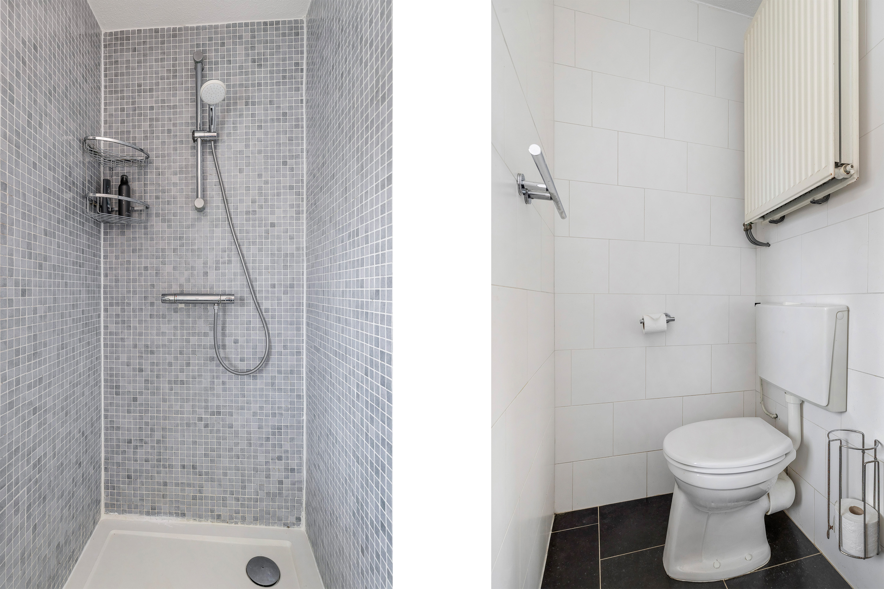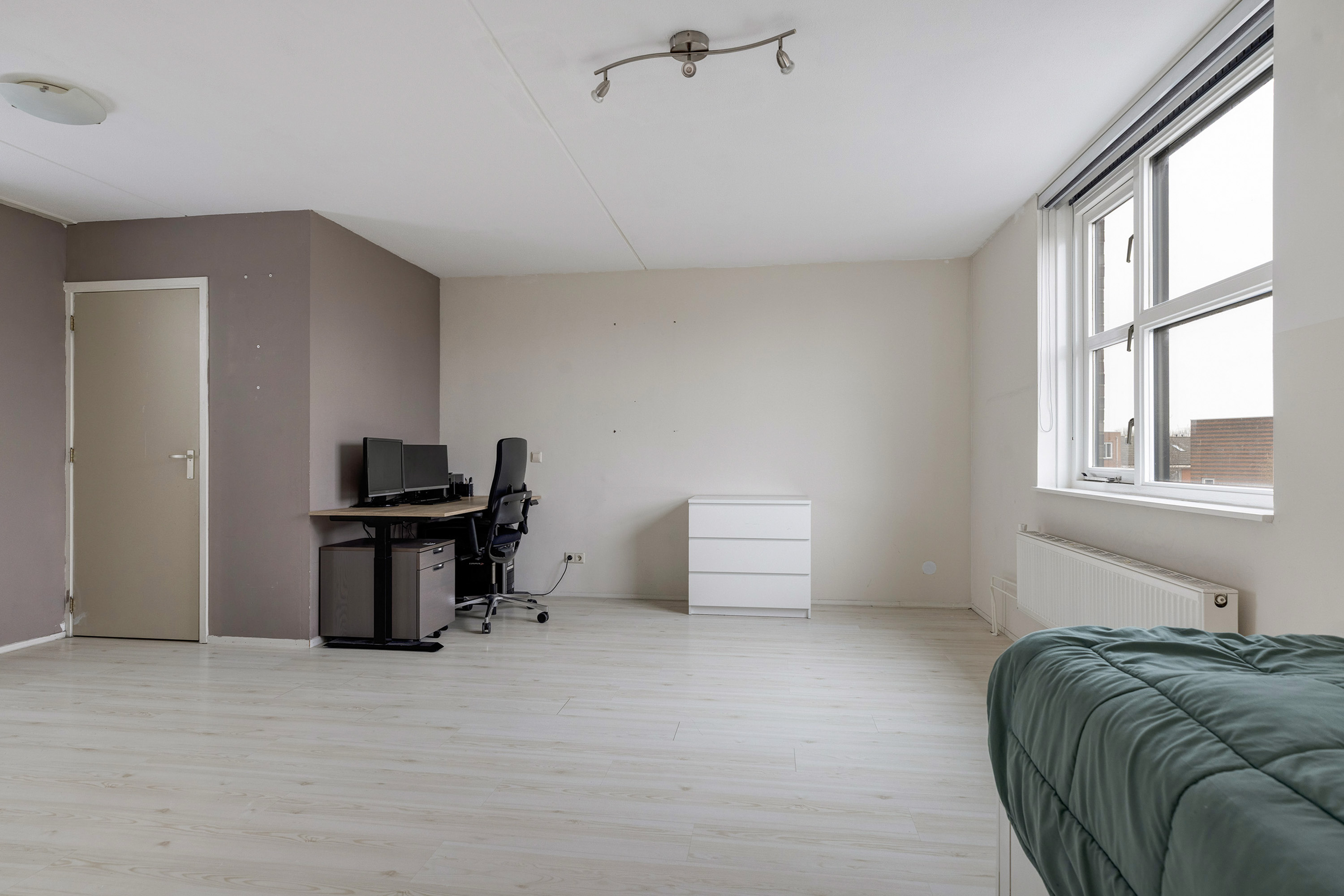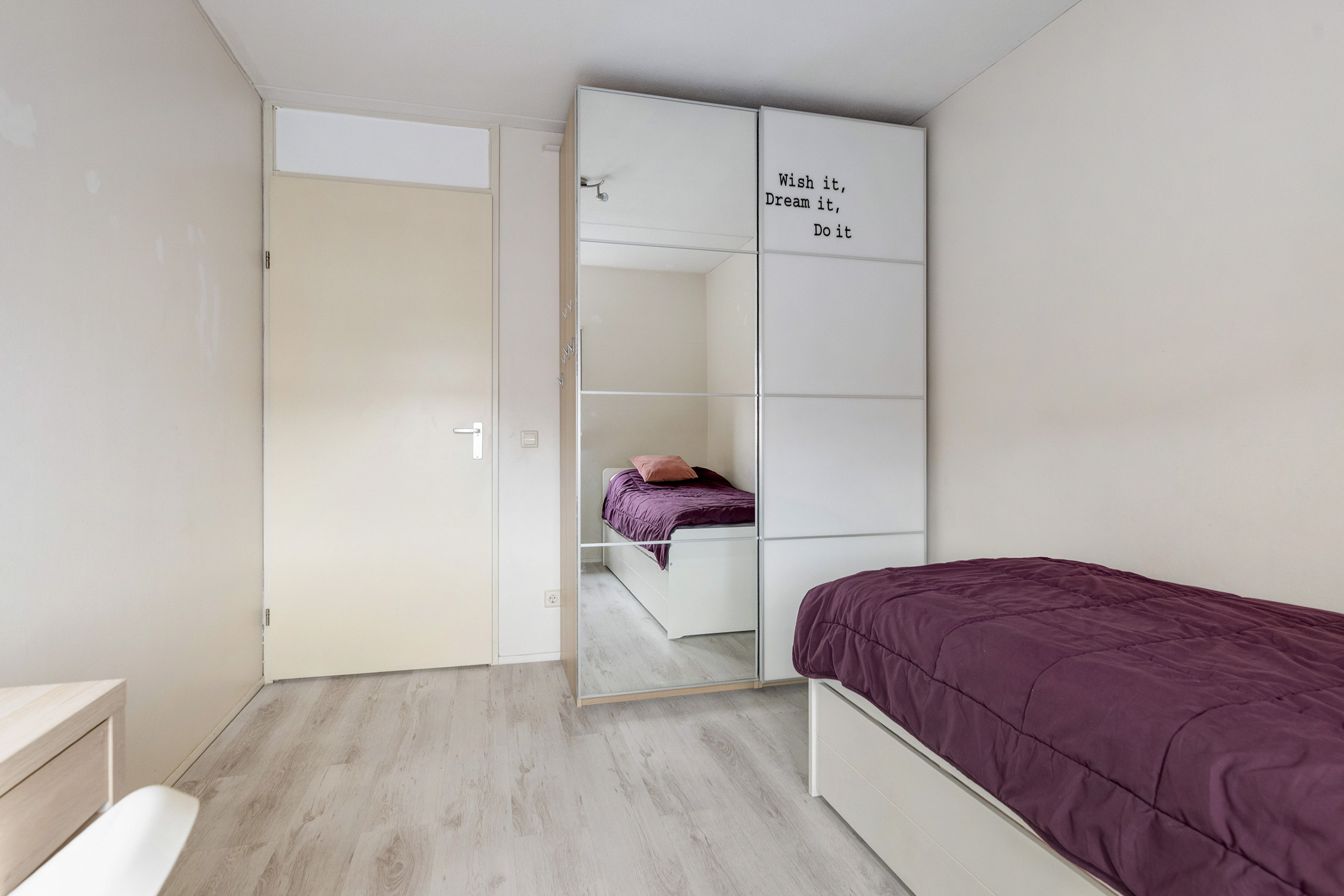 De vloer is grotendeels afgewerkt met laminaat. Daarnaast zijn op deze verdieping rolluiken aanwezig, wat zorgt voor extra comfort en privacy.