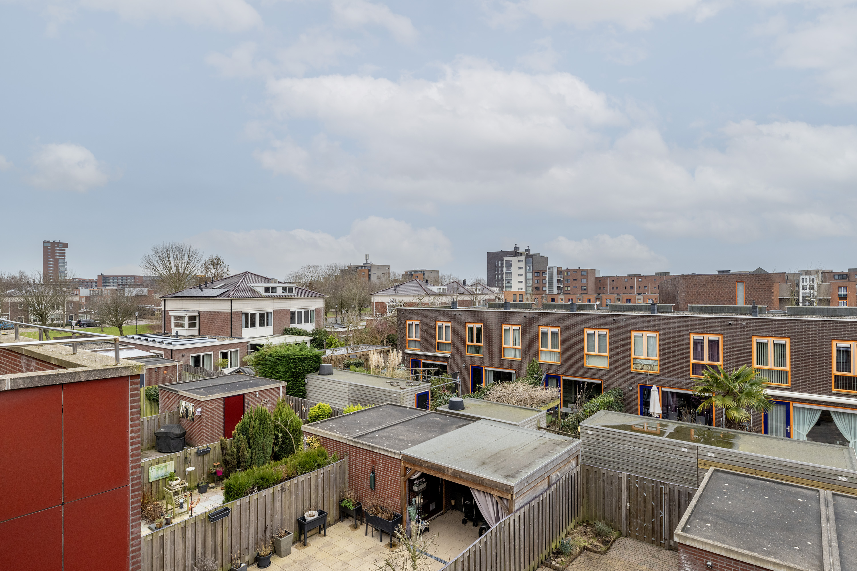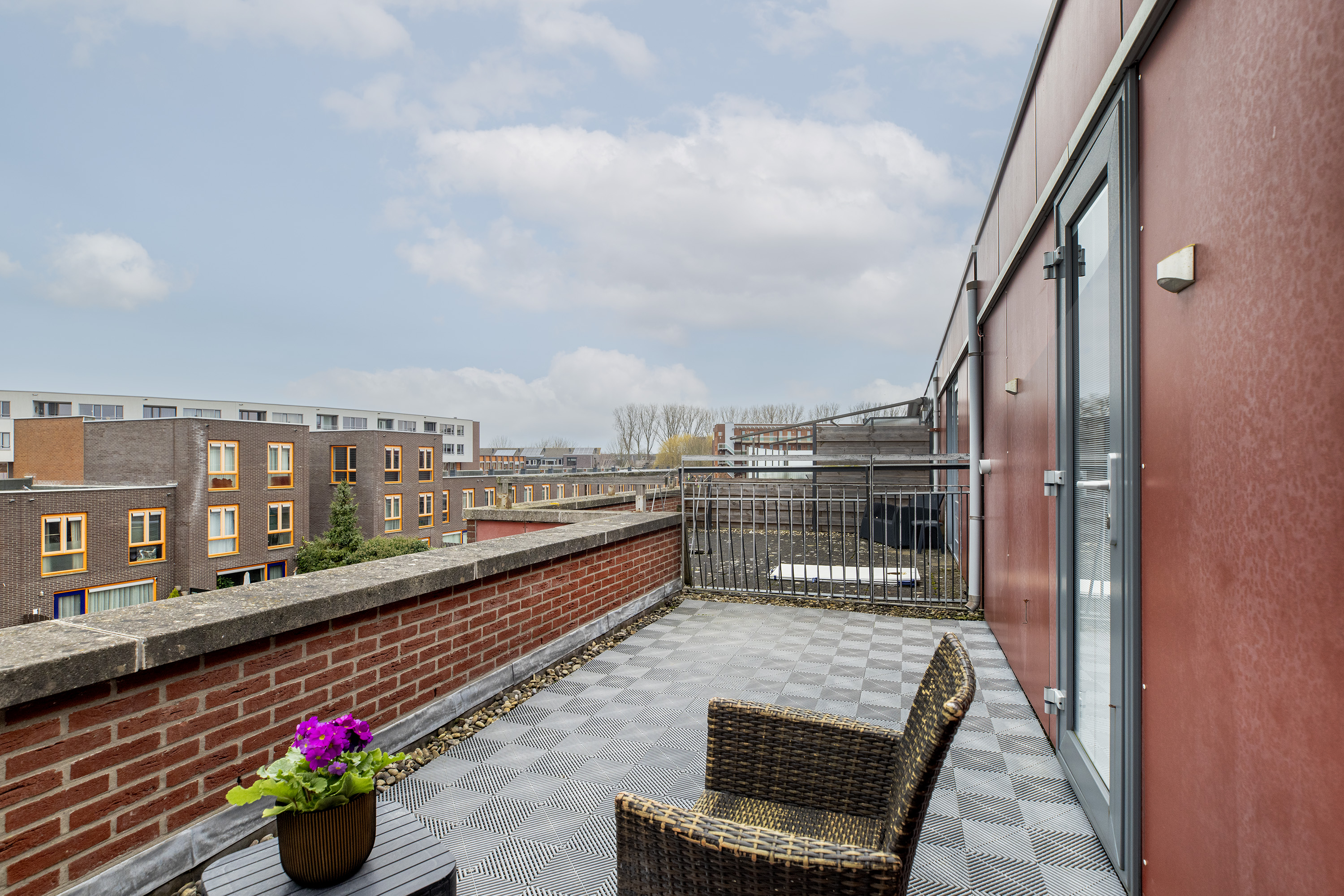 Via de vernieuwde kunststof pui is er toegang tot het dakterras – een heerlijke extra buitenruimte met volop privacy.
