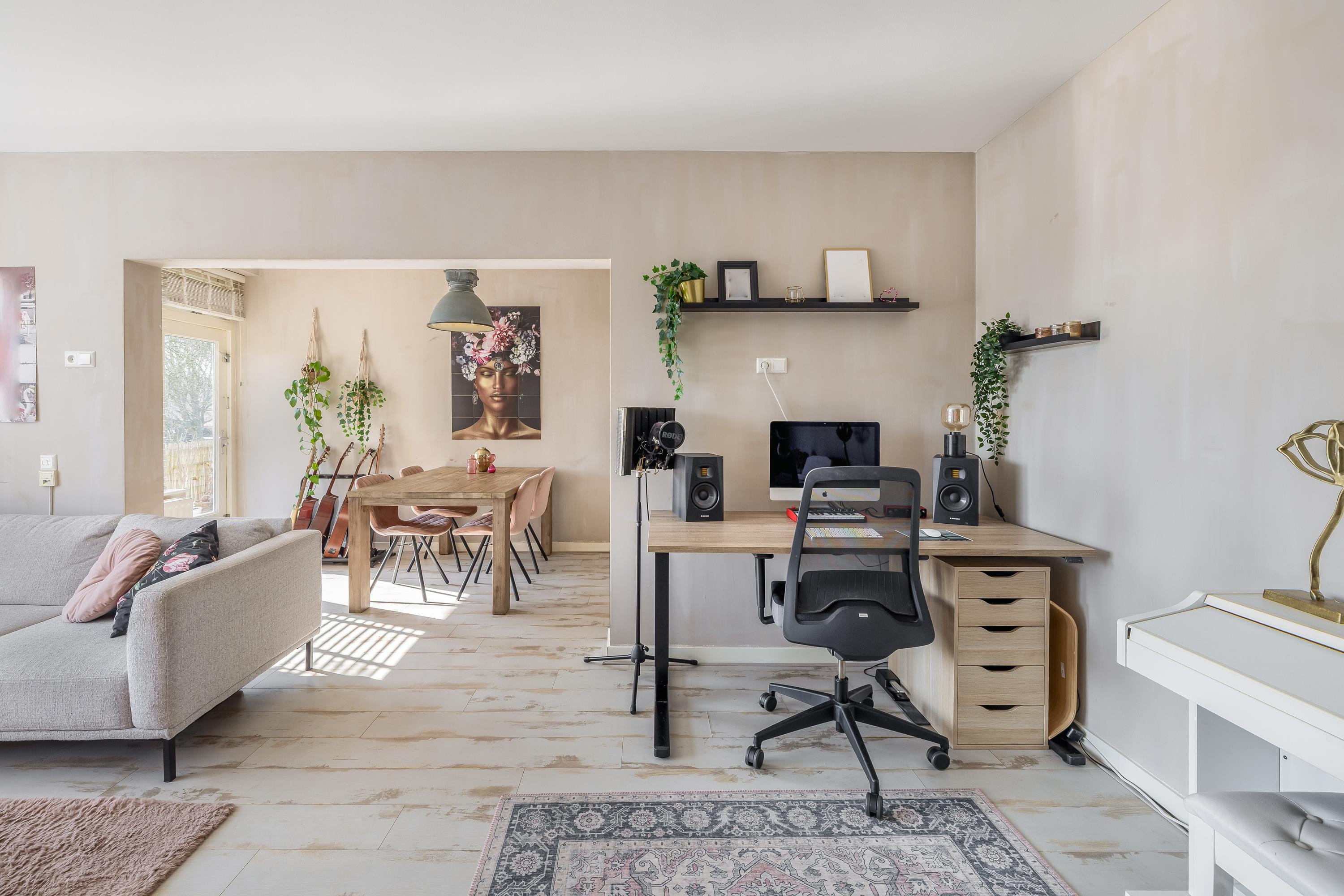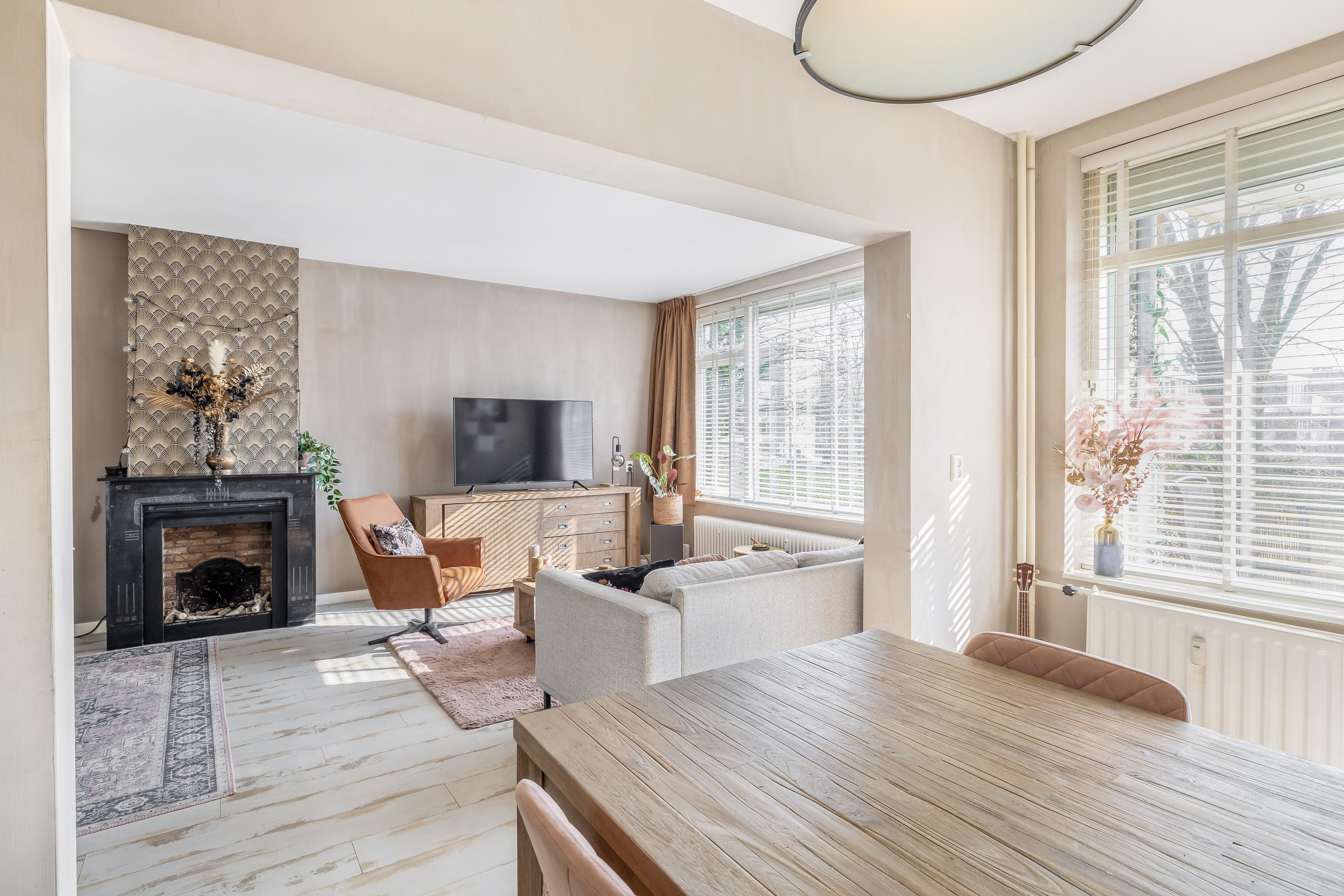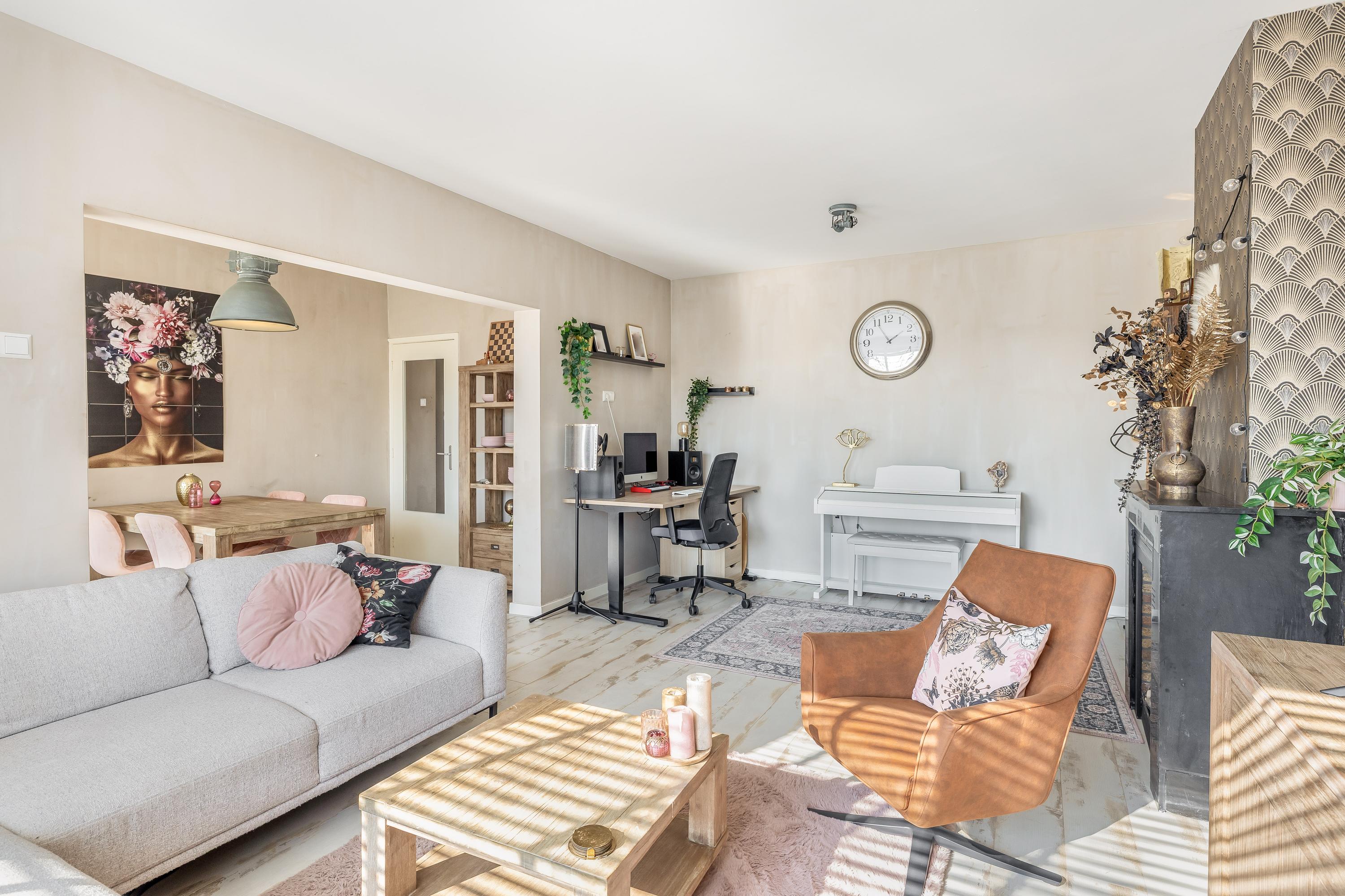 Royale lichte woonkamer (ca. 31 m2) voorzien van een duurzame laminaatvloer. De woonkamer is verder fraai afgewerkt met kalkverf, wat zorgt voor een warme en karaktervolle uitstraling. De elegante marmeren schouw met een bio ethanol haard vormt een sfeervol middelpunt en voegt een uitnodigende sfeer toe. Verder zorgen de grote raampartijen voor volop aangenaam daglicht. De woonkamer biedt voldoende ruimte voor een gezellige eethoek en werkhoek. Door middel van een balkondeur heeft u toegang tot het zonnige balkon.