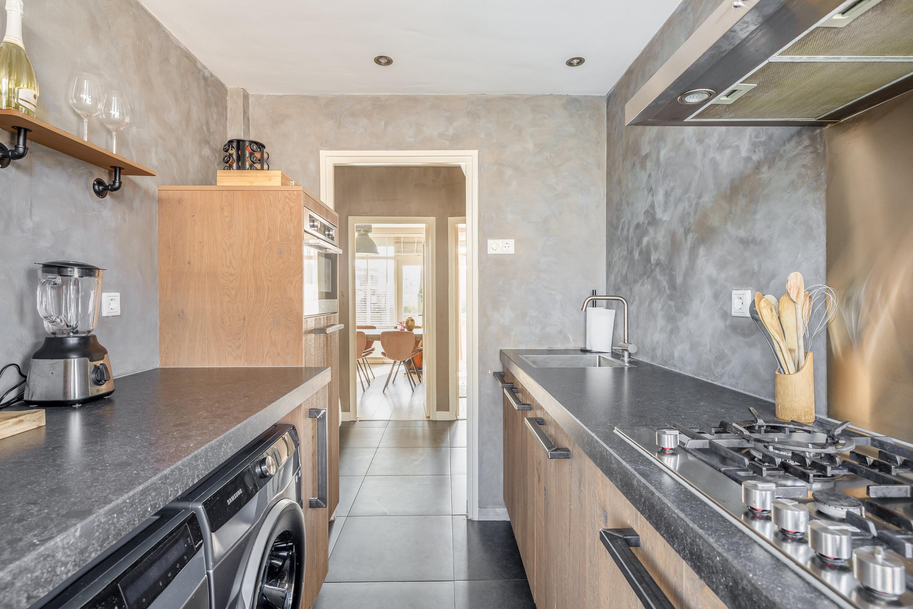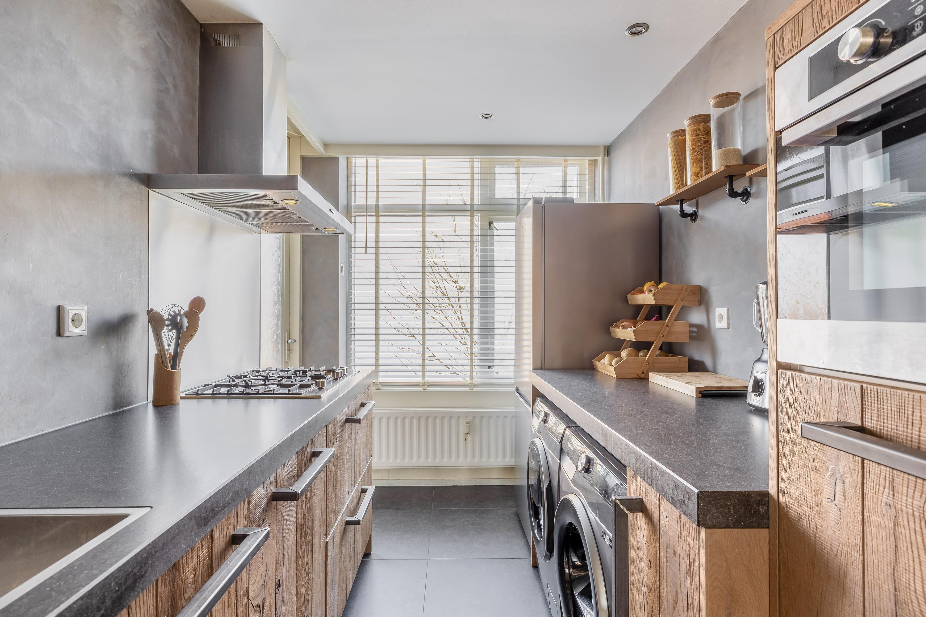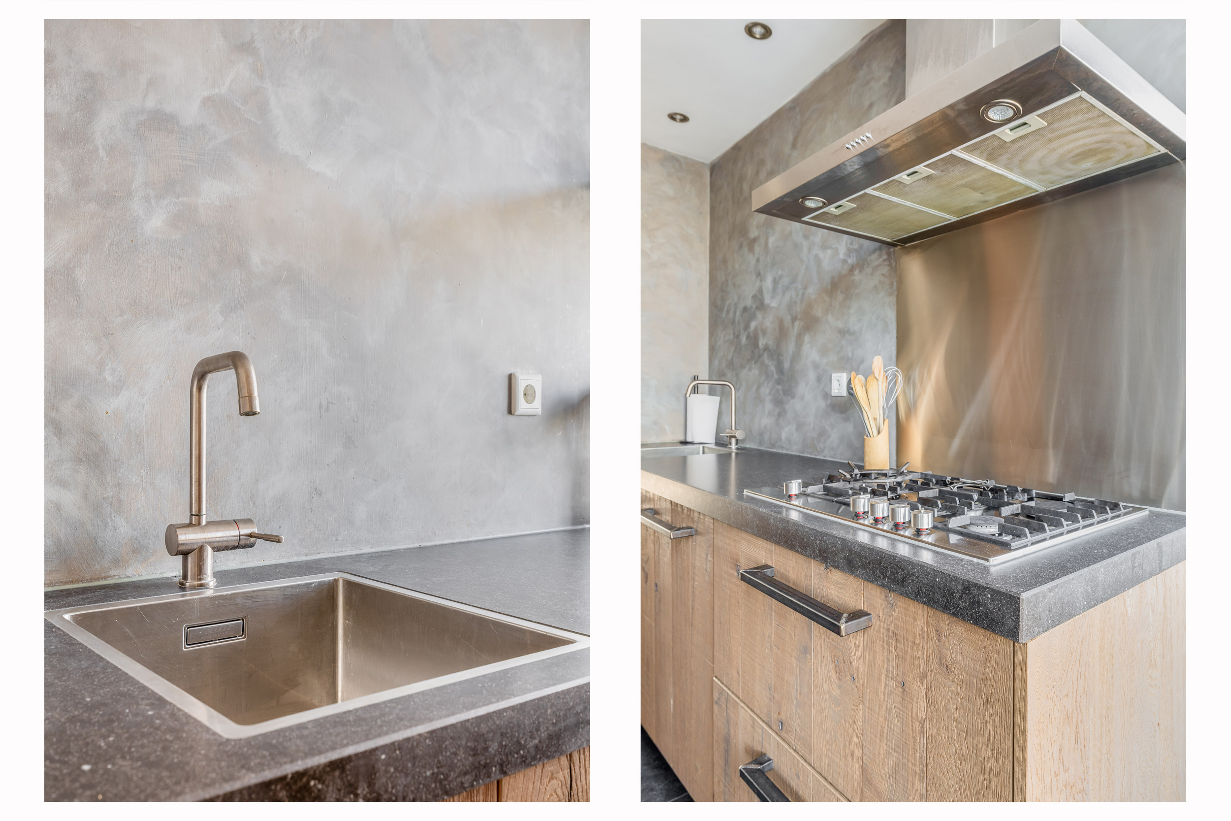 De keuken (ca. 7 m2) is gelegen aan de voorzijde van het complex en is uitgevoerd in twee rechte opstellingen. De keuken is voorzien van diverse apparatuur zoals een 5-pits gaskookplaat, RVS afzuigkap. combimagnetron en een vaatwasser. Verder is de keuken voorzien van de aansluiting voor de wasmachine/droger, een enkele spoelbak en grote lades. Het geheel is afgewerkt met een composiet aanrechtblad en donkergrijze tegelvloer. Door middel van een balkondeur heeft u toegang tot een klein balkon.
