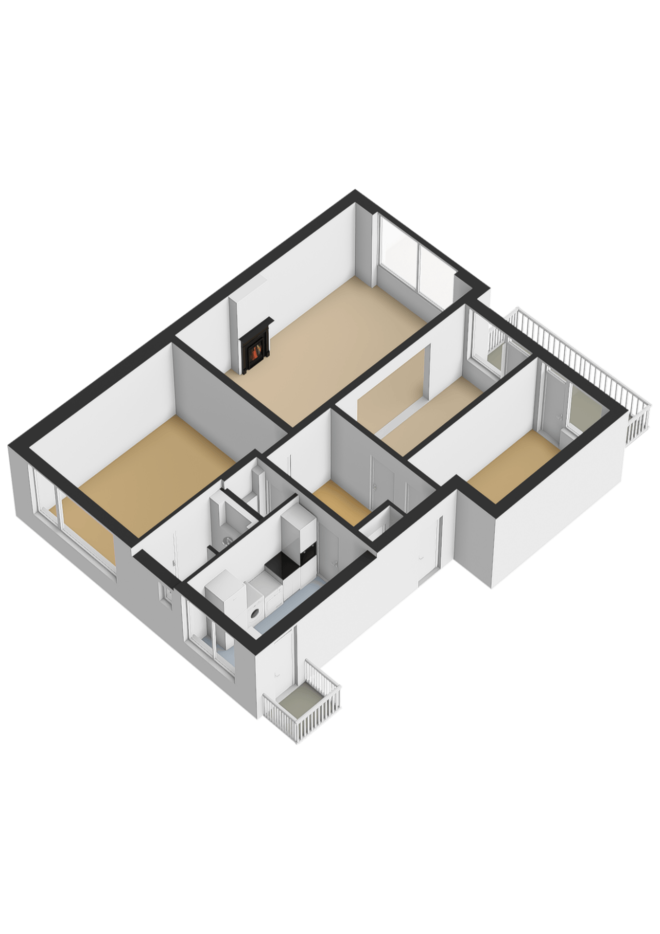 - Twee balkons bereikbaar via de woonkamer en de keuken;