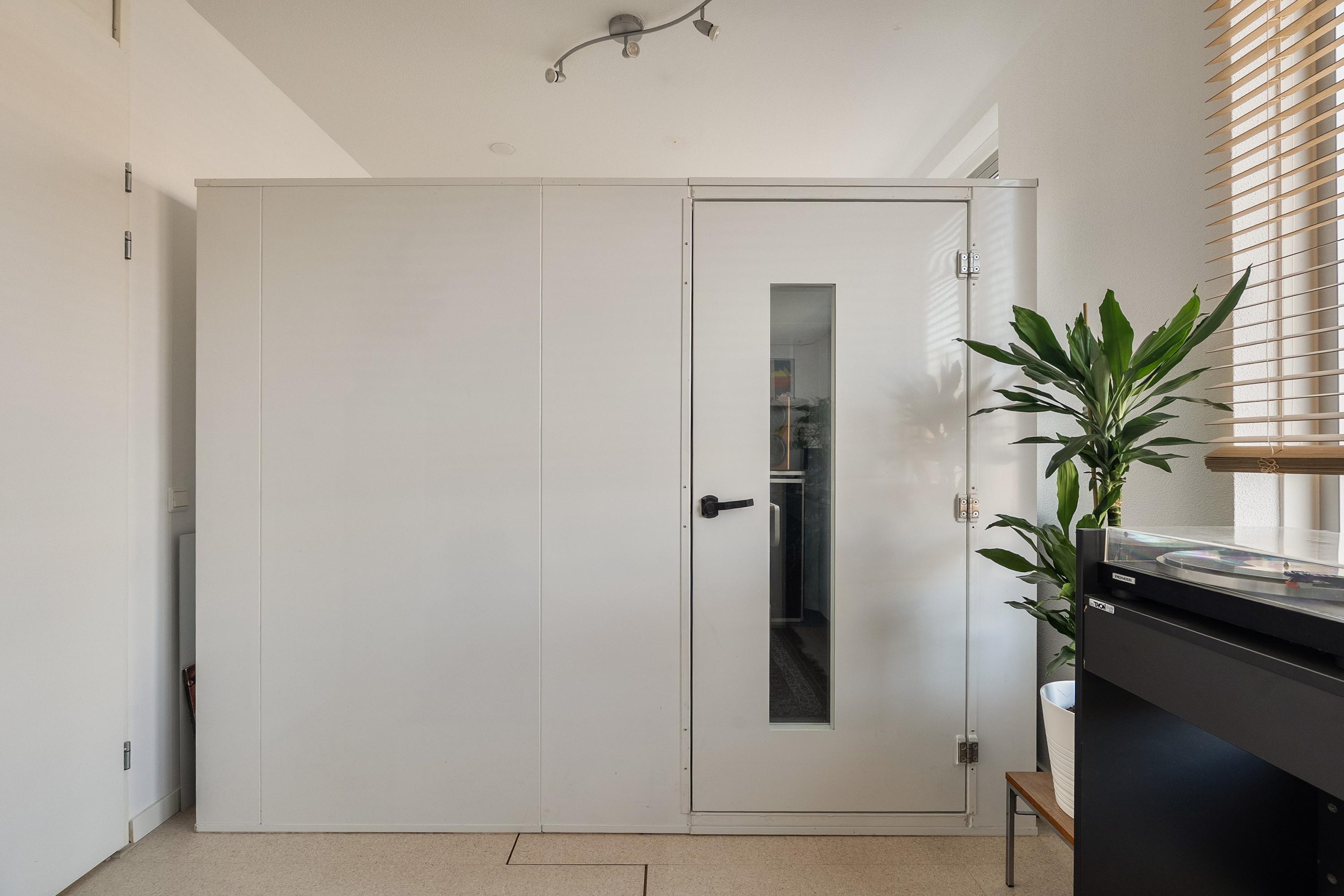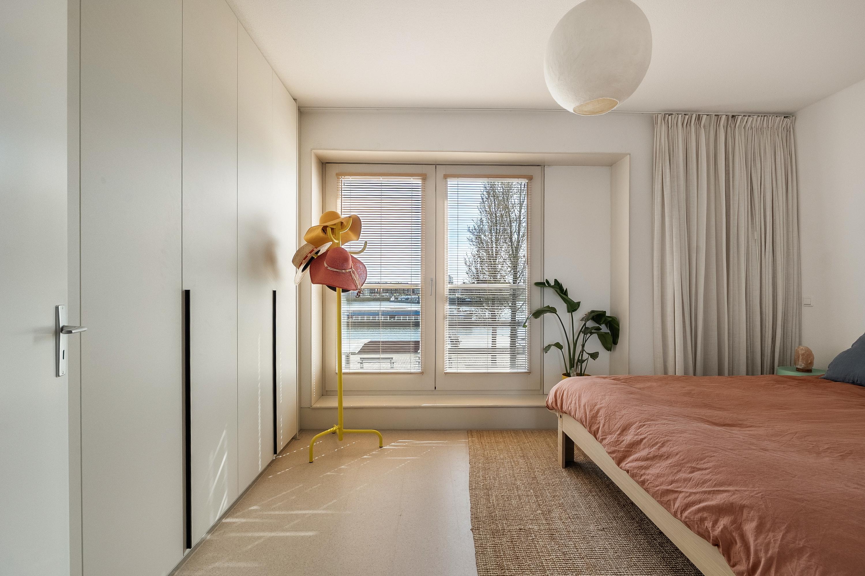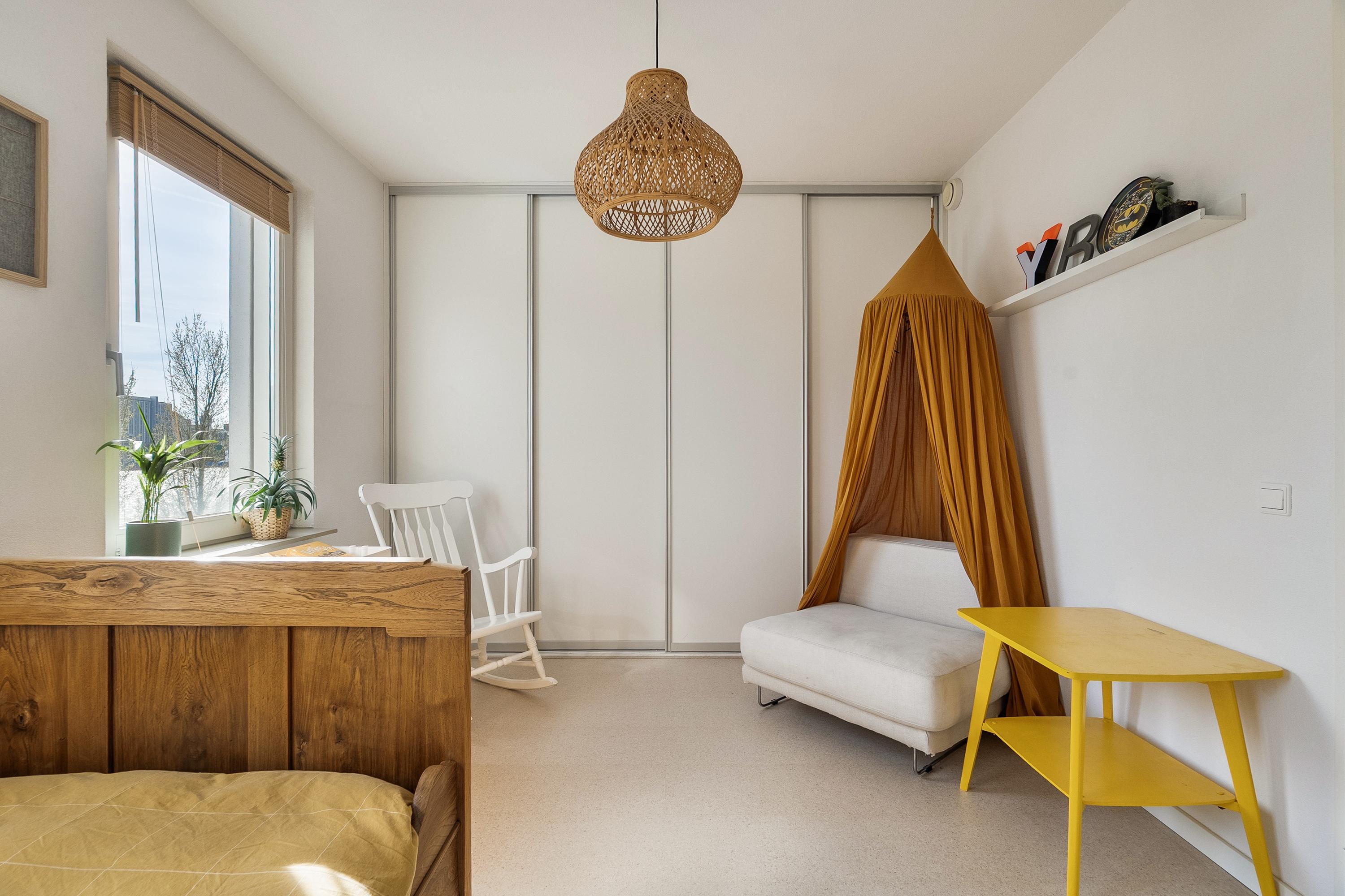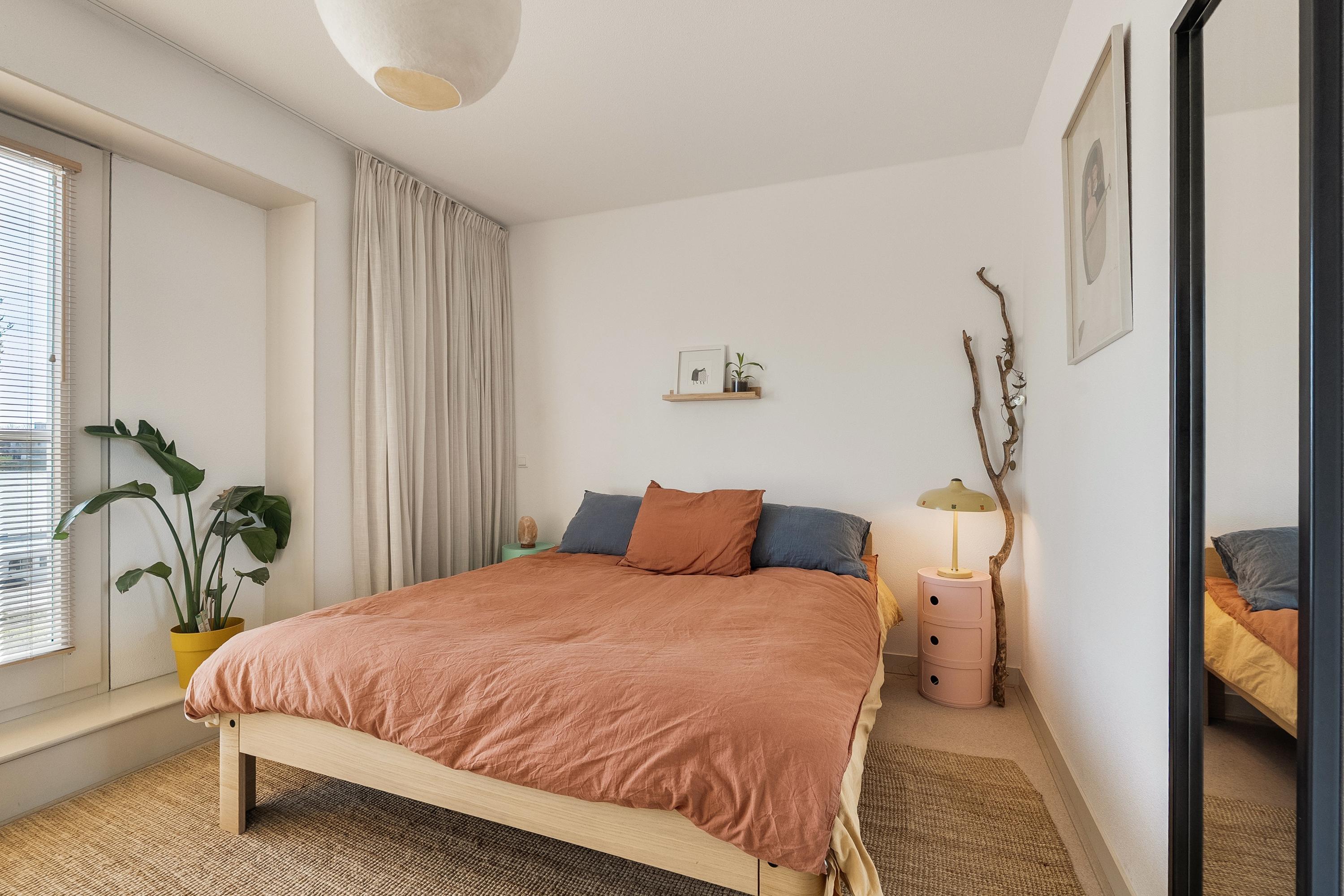 Op de tweede verdieping treffen we nog eens twee slaapkamers en een overloop met een inpandige berging — handig voor de wasmachine en opslag. De slaapkamer aan de voorzijde is ook hier voorzien van een inbouwkast die achterblijft. Ook hier zijn de vloeren in 2023 vernieuwd. Er is geen badkamer op deze verdieping, maar de ruimte biedt zeker mogelijkheden voor wie dat in de toekomst wil realiseren.