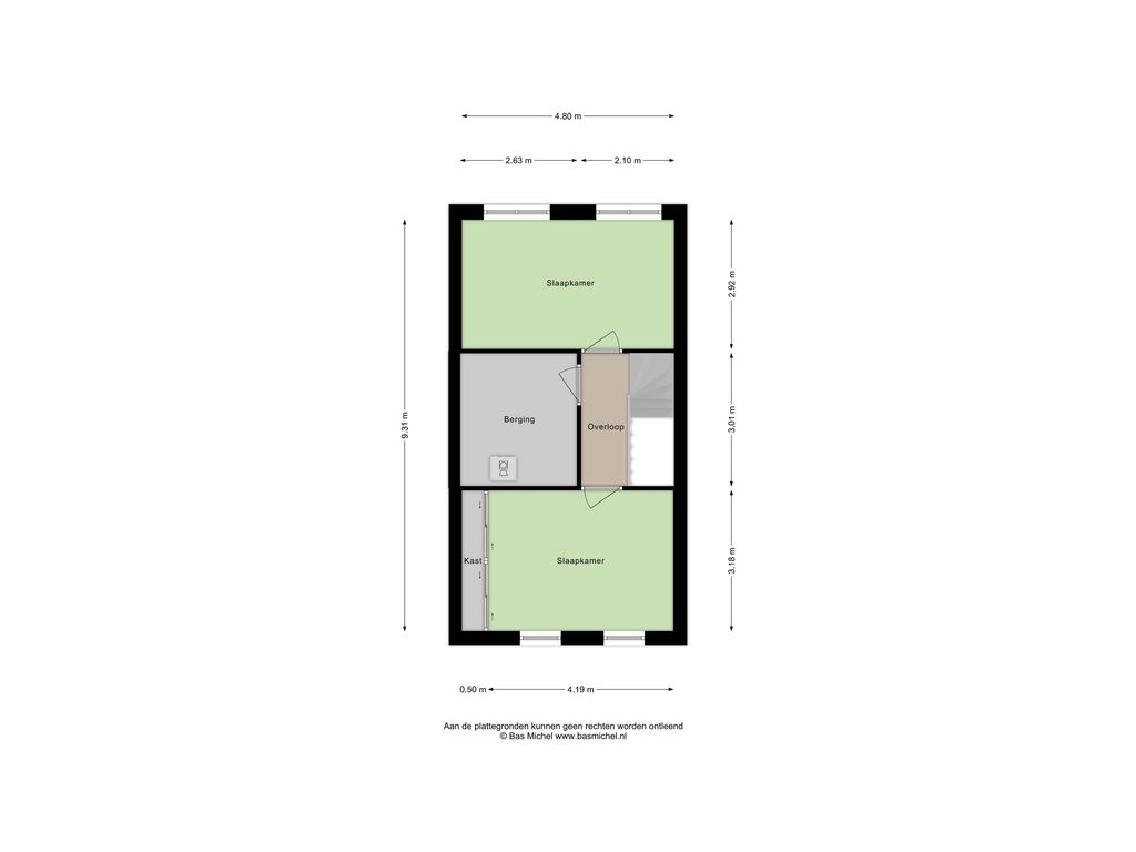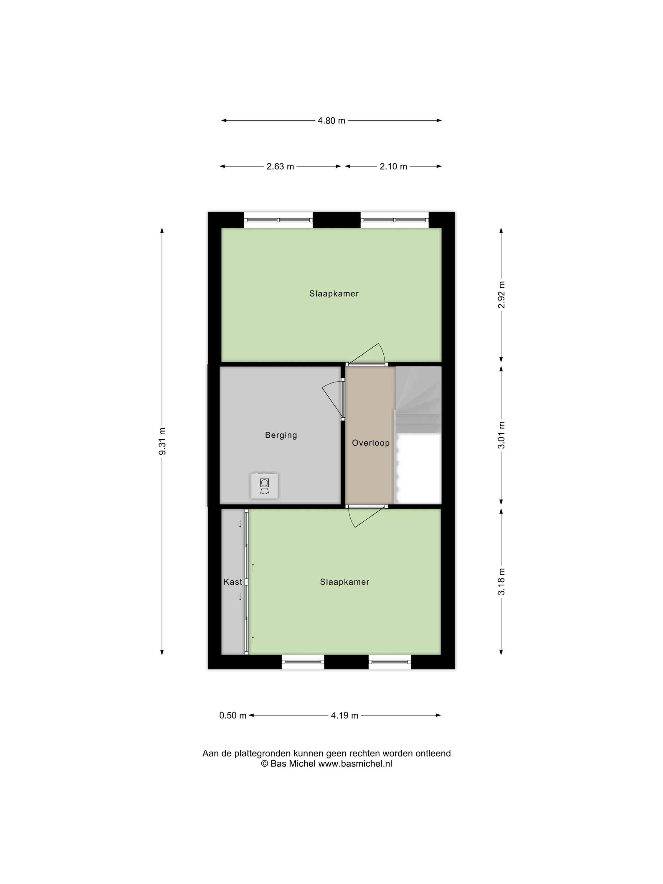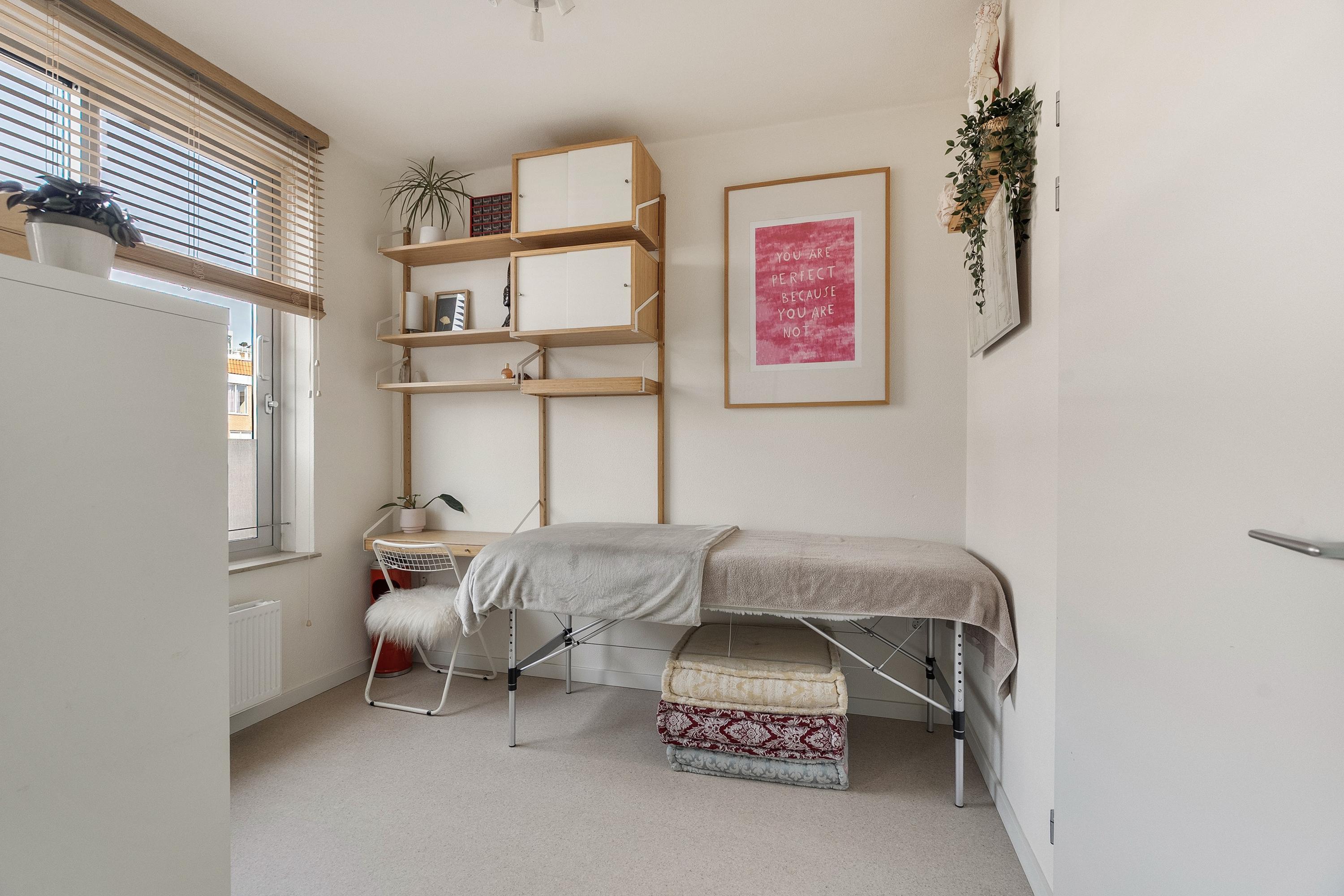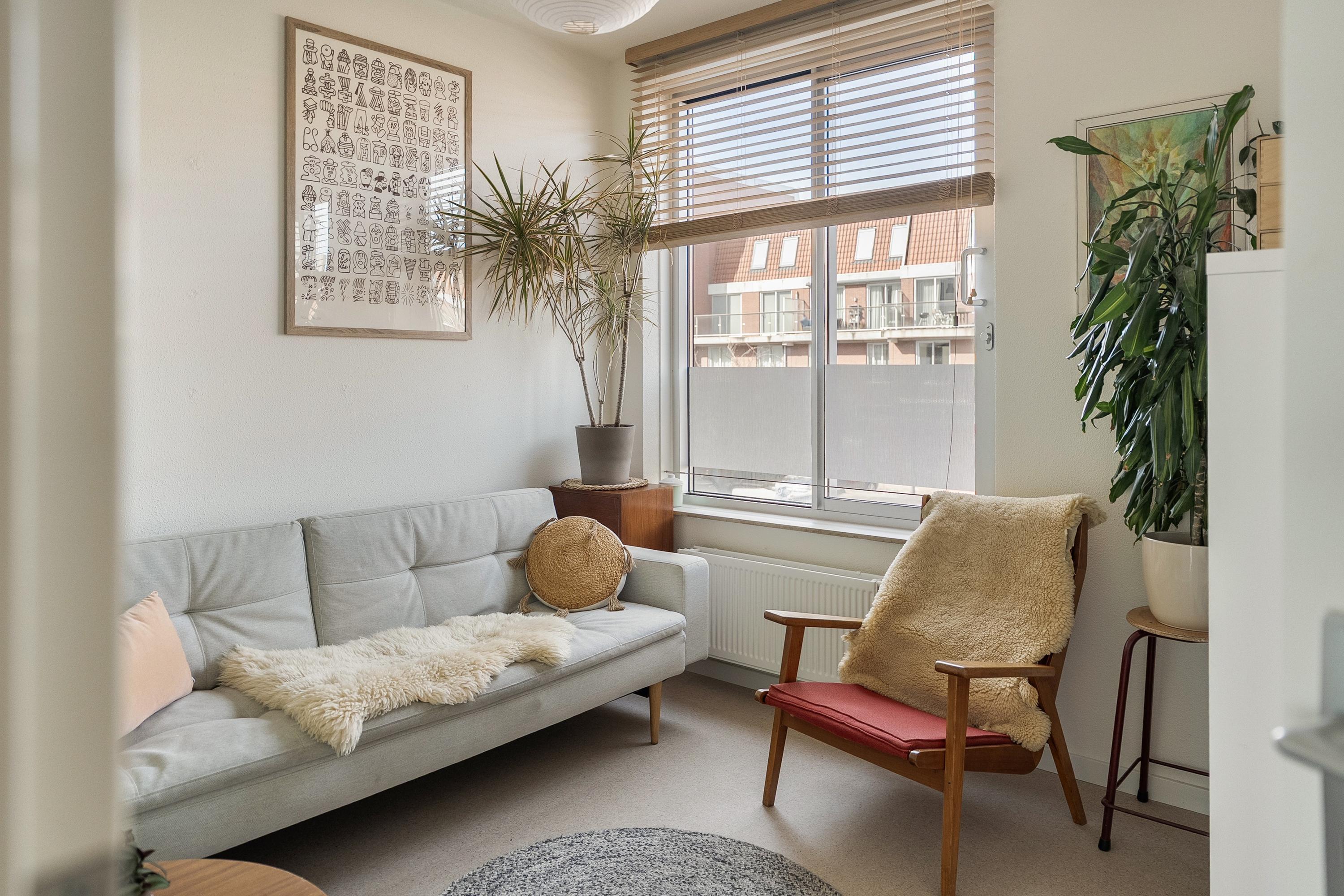 Op de tweede verdieping treffen we nog eens twee slaapkamers en een overloop met een inpandige berging — handig voor de wasmachine en opslag. De slaapkamer aan de voorzijde is ook hier voorzien van een inbouwkast die achterblijft. Ook hier zijn de vloeren in 2023 vernieuwd. Er is geen badkamer op deze verdieping, maar de ruimte biedt zeker mogelijkheden voor wie dat in de toekomst wil realiseren.