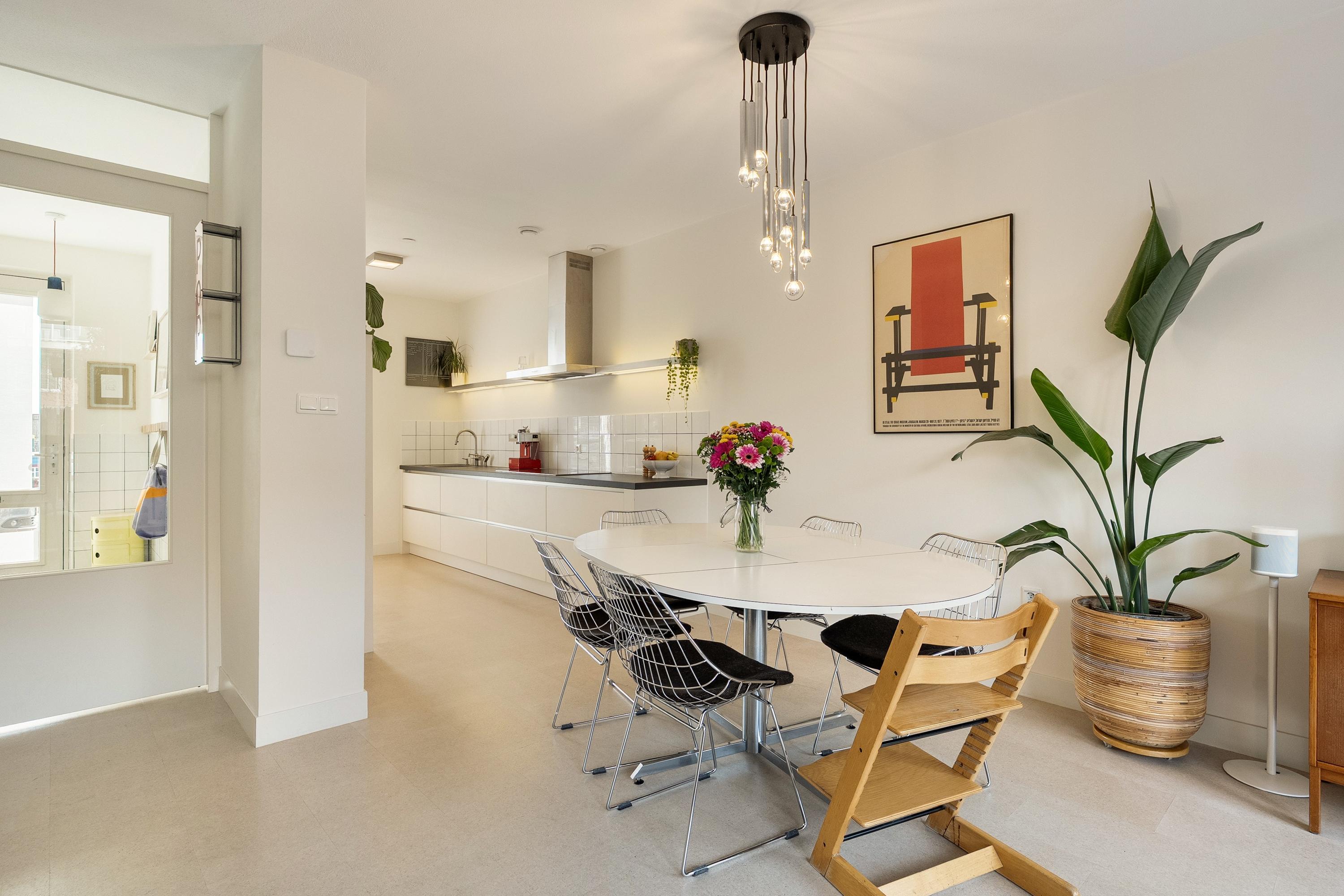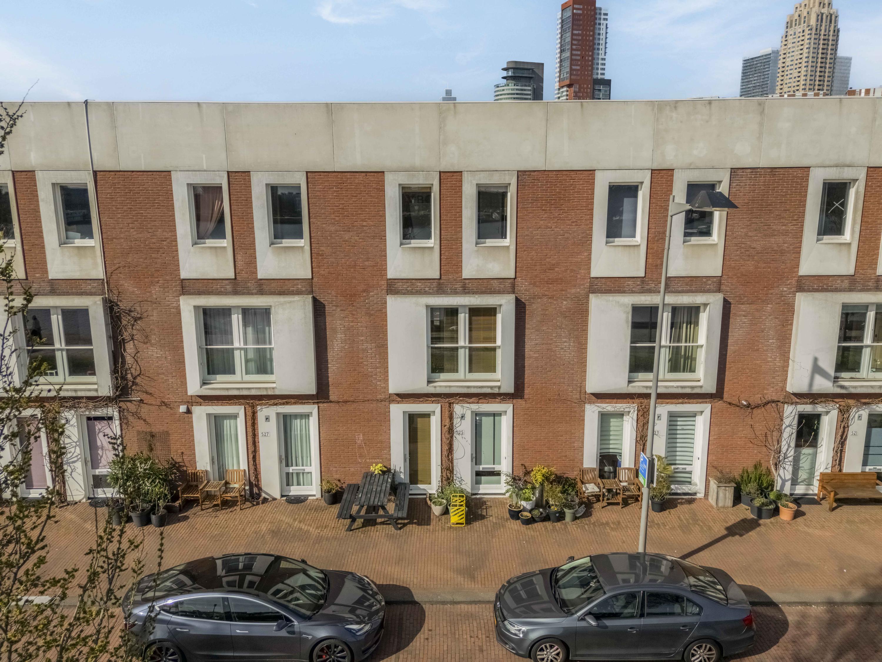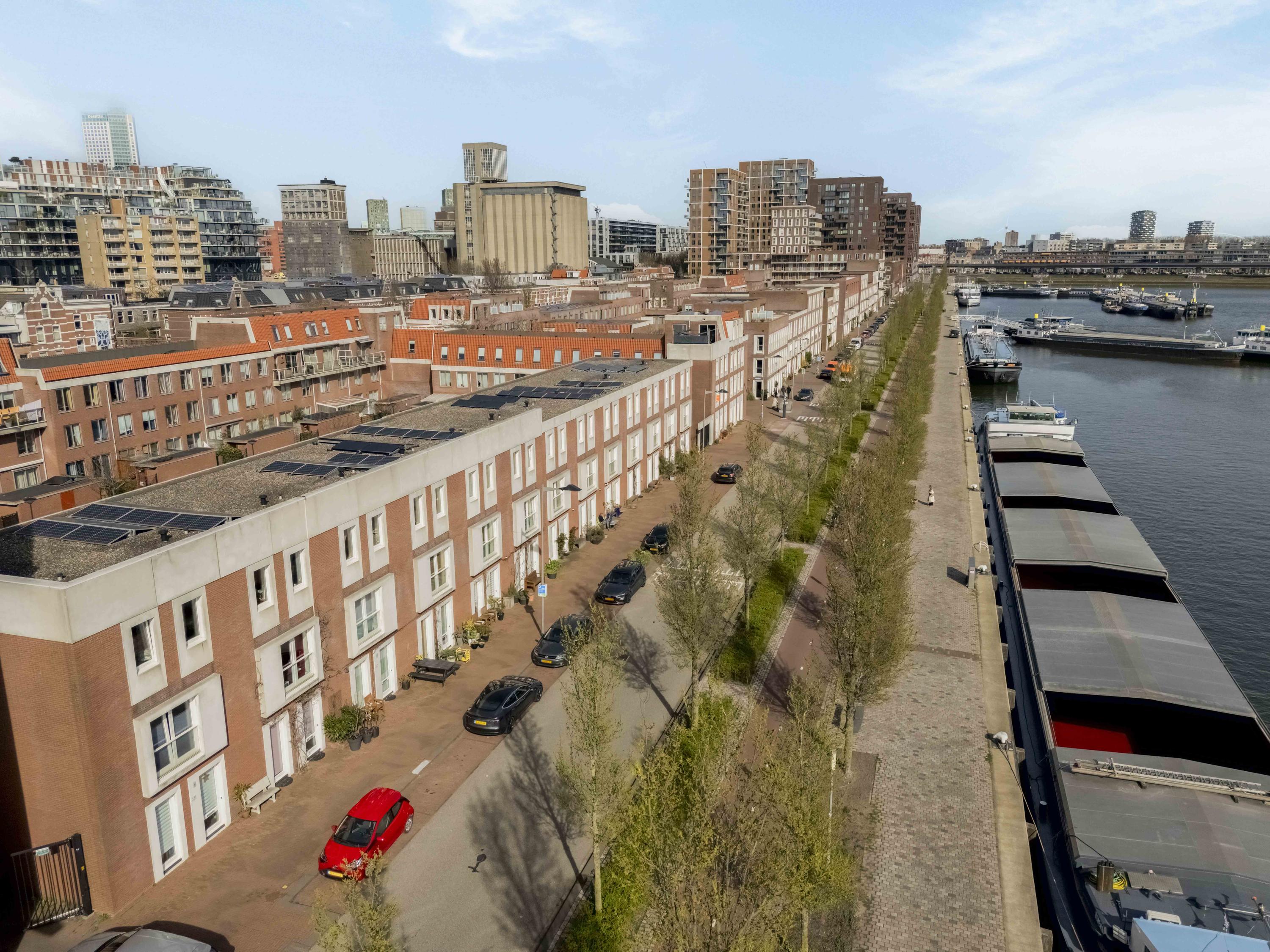 Op Katendrecht woon je al met plezier, maar op de Maashaven Noordzijde 525 woon je ook slim. Deze ruime tussenwoning van 134 m² verrast je niet door overdreven grandeur, maar door hoe goed alles op zijn plek valt. Drie volwaardige verdiepingen, vier slaapkamers, een tuin met vrijstaande berging, een eigen parkeerplaats en een energielabel A+++. Geen aardgasaansluiting, geen onverwachte energierekening. Warm water en verwarming lopen via stadsverwarming, en de tien zonnepanelen op het dak wekten vorig jaar zo'n 3.700 kWh op. Na teruglevering resteerde er nog geen 1.315 kWh verbruik. In 2023 is er ingrijpend verbouwd: de hal is heringedeeld en de trap is onderdeel gemaakt van de leefruimte op de begane grond. Het resultaat is een open, logische indeling die je meteen het gevoel geeft van een woning die klopt.