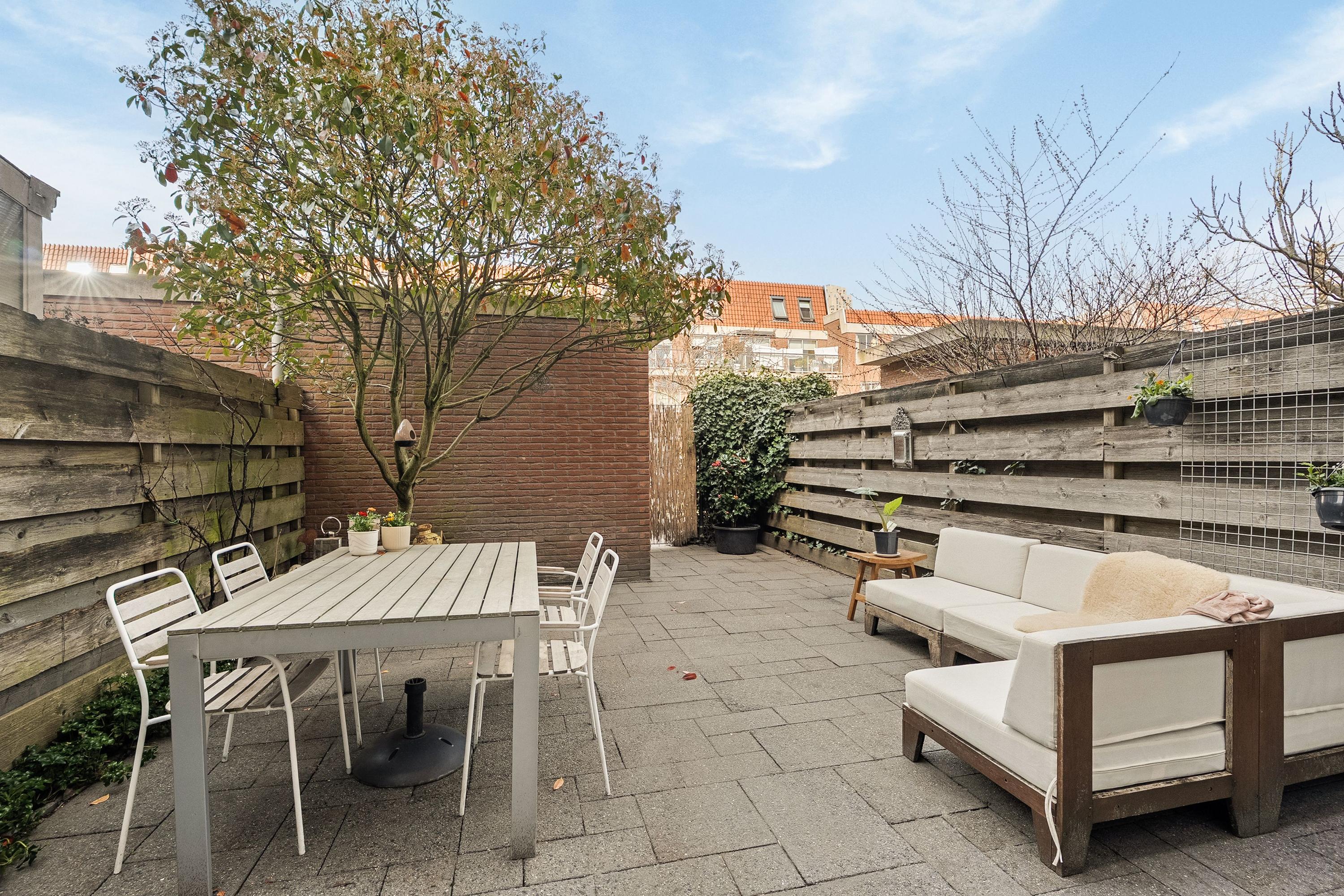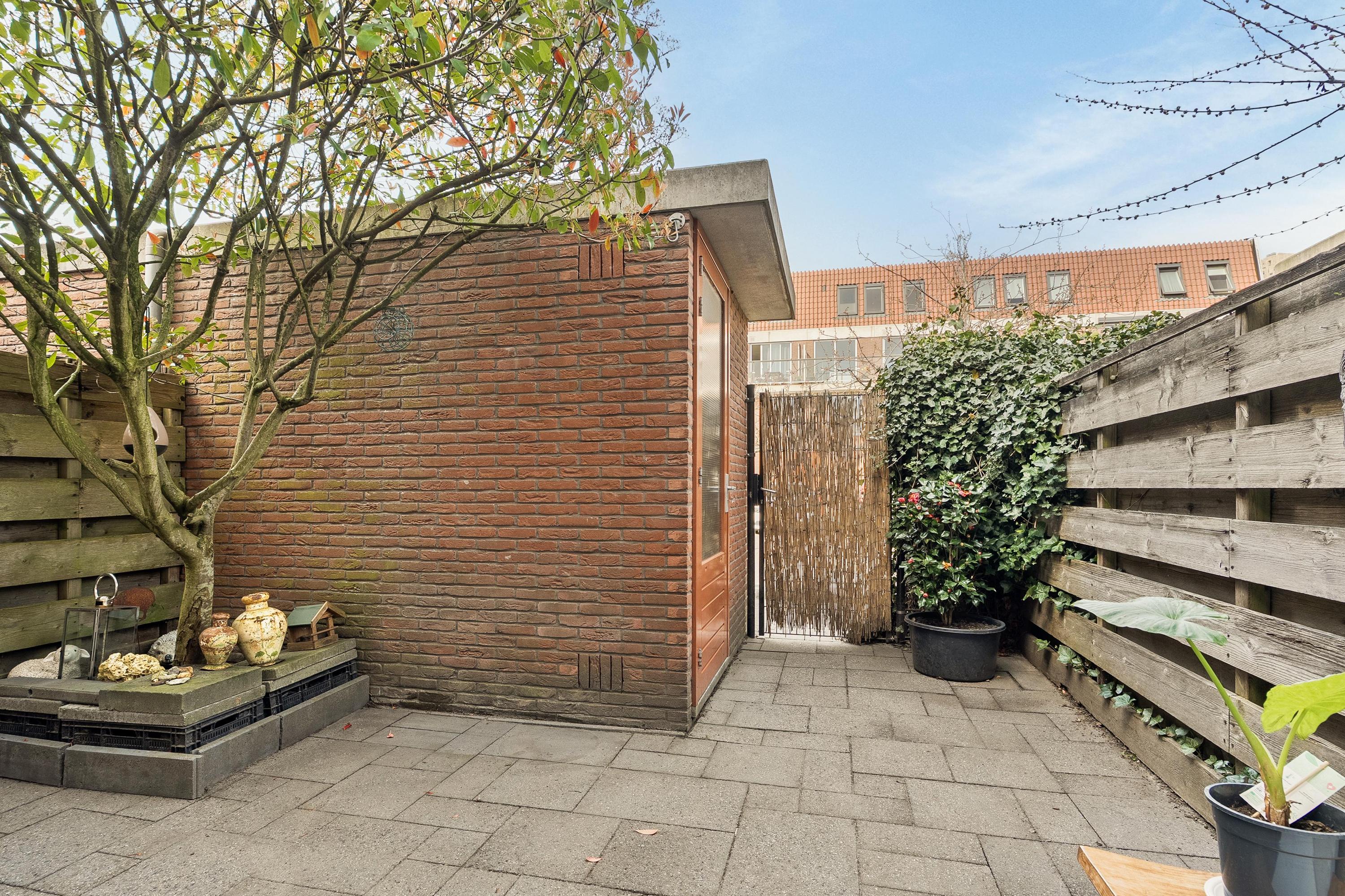 De woonkamer is ruim en goed in te delen: een zithoek om even bij te komen, en een eethoek voor lange avonden met vrienden. Het is een lichte, uitnodigende ruimte. Via grote schuifpuien loopt de woonkamer naadloos over in de tuin, die op het noorden ligt. De tuin is voorzien van bestrating en beplanting; achterin staat een vrijstaand stenen tuinhuisje met sedumdak, geplaatst in 2024. Praktisch en verzorgd.