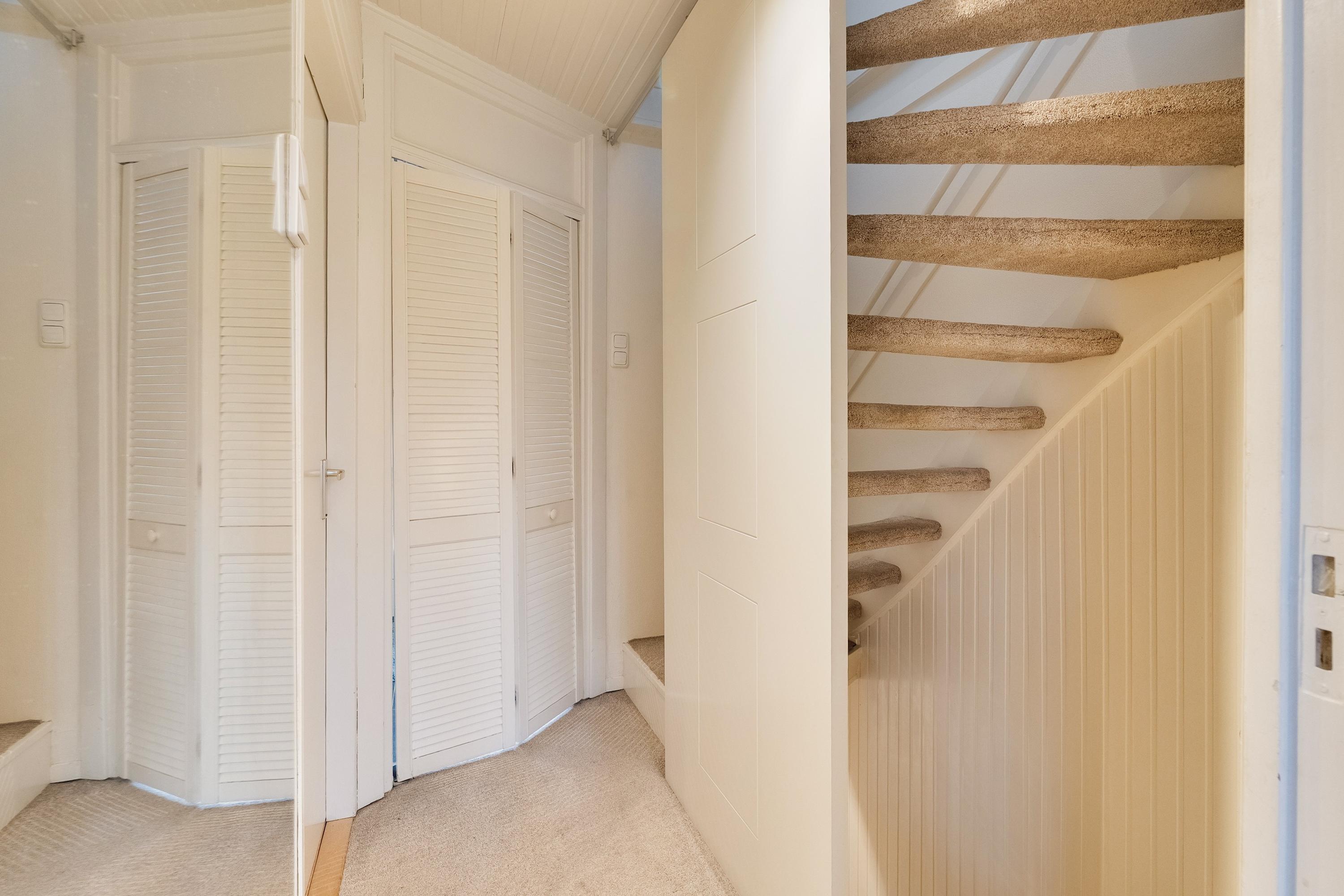 Terug in de hal komen we op de eerste verdieping met 2 slaapkamers en de badkamer. De slaapkamers zijn respectievelijk 18 en 8 m2 waarvan de grootste aan de achterzijde is voorzien van Airco en heerlijk veel ramen, zodat het een lekkere lichte ruimte is. De kamer aan de voorzijde is nu hobbykamer, maar is een uitstekende slaapkamer. Mocht je willen zou je de originele situatie weer kunnen herstellen en dan kan je de achterkamer weer verdelen in 2 slaapkamers.
