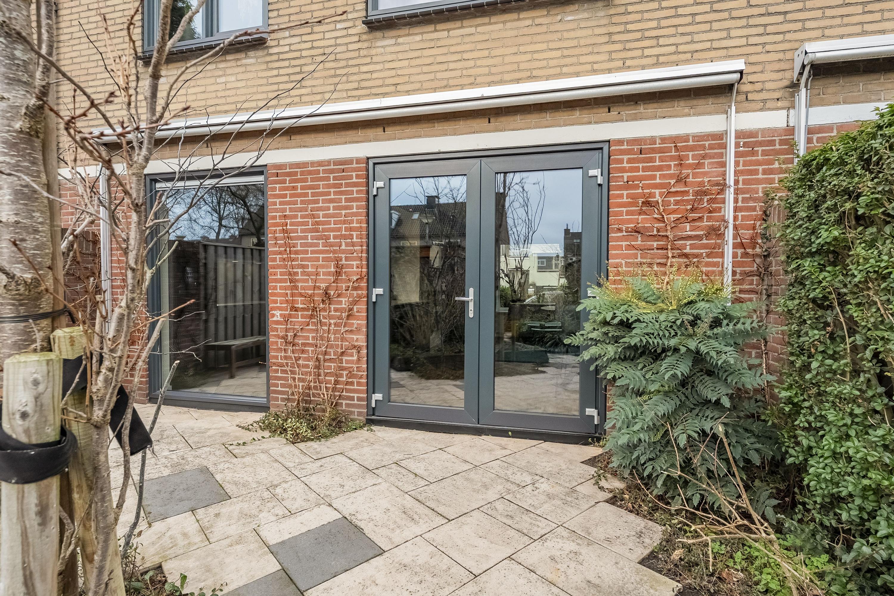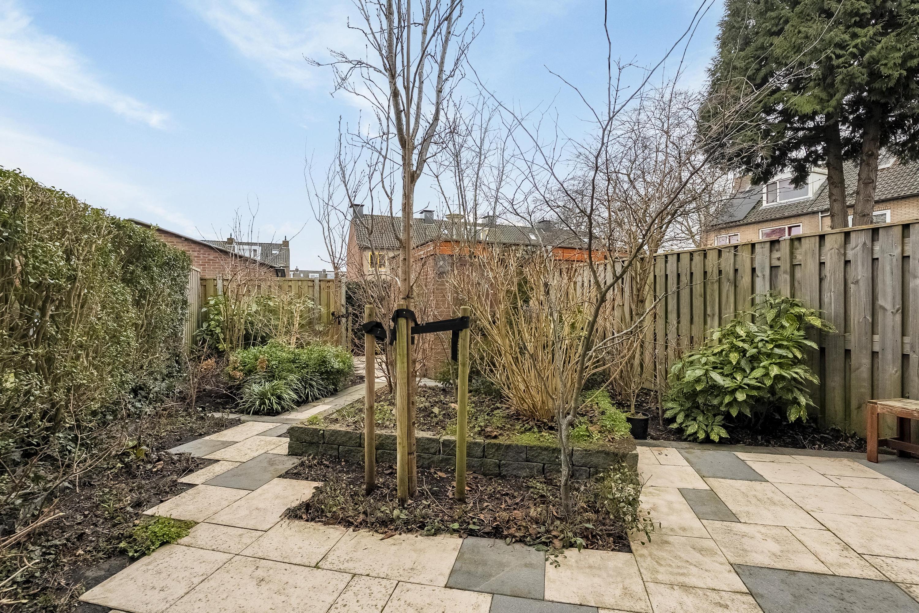 Zodra je de openslaande deuren opent, sta je in de zonnige achtertuin op het zuiden. Hier geniet je vrijwel de hele dag van de zon, terwijl het zonnescherm voor schaduw zorgt wanneer nodig. De tuin is verzorgd aangelegd met sierbeplanting en sierbestrating, heeft een stenen berging en een praktische achterom naar de parkeerplaats. Een heerlijke plek voor lange zomeravonden, spelende kinderen of een gezellige barbecue.