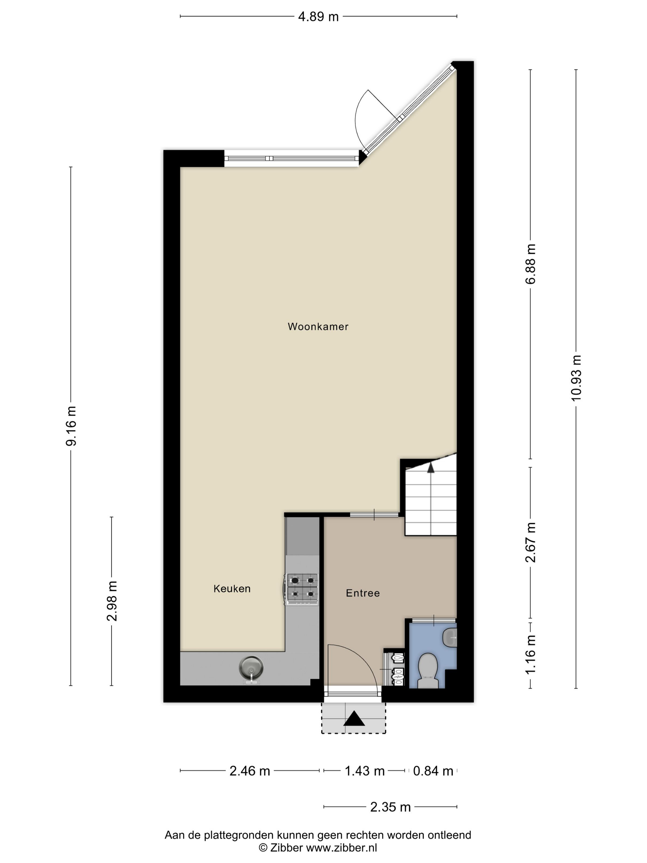 Entree met meterkast, toiletruimte en trapopgang.