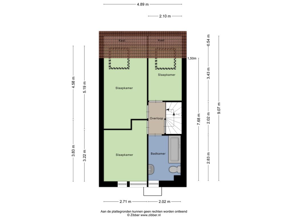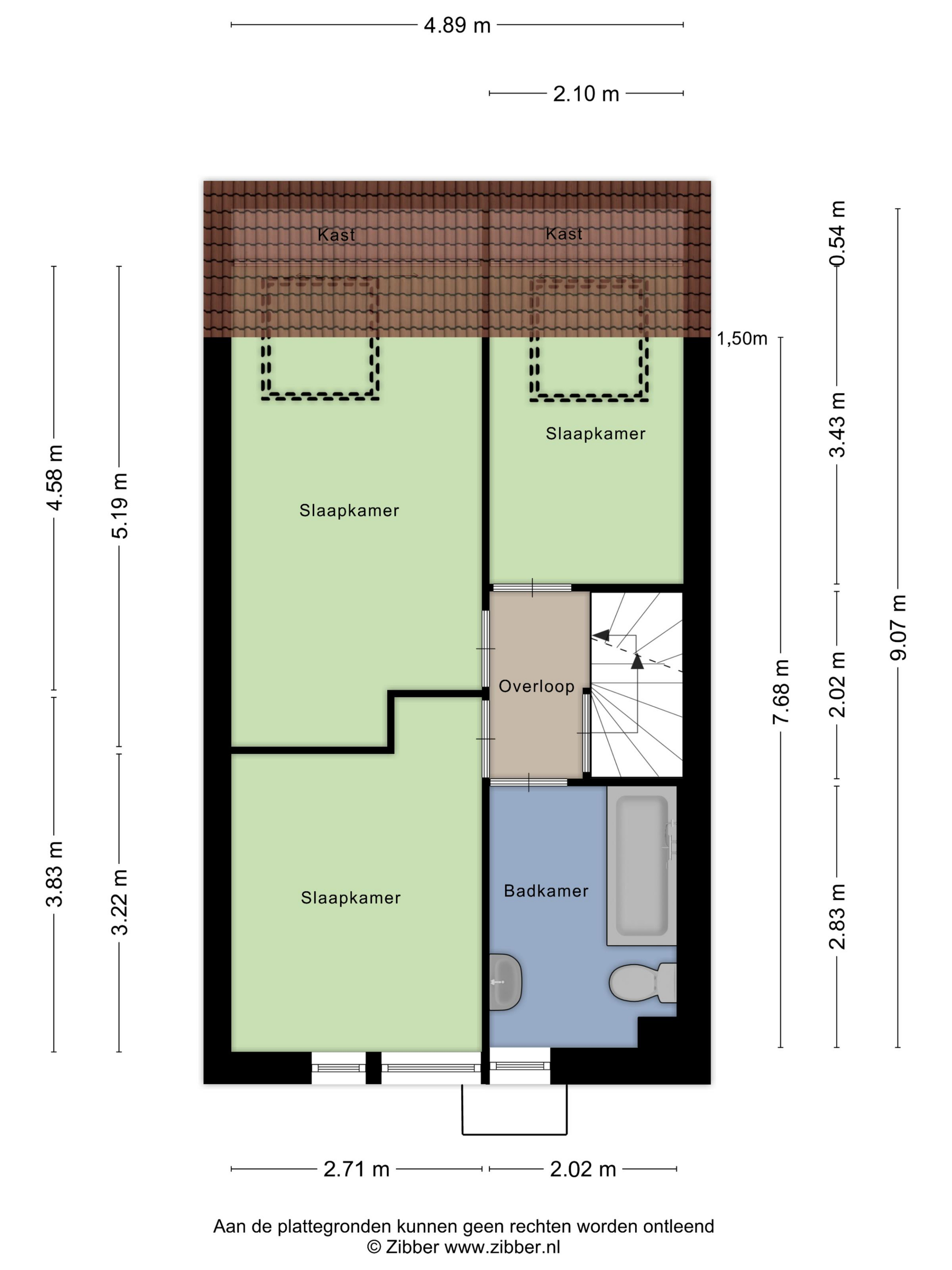 Drie slaapkamers, waarvan twee aan de achterzijde met een dakraam en één aan de voorzijde.