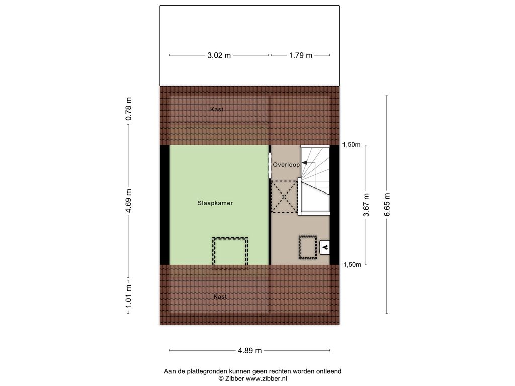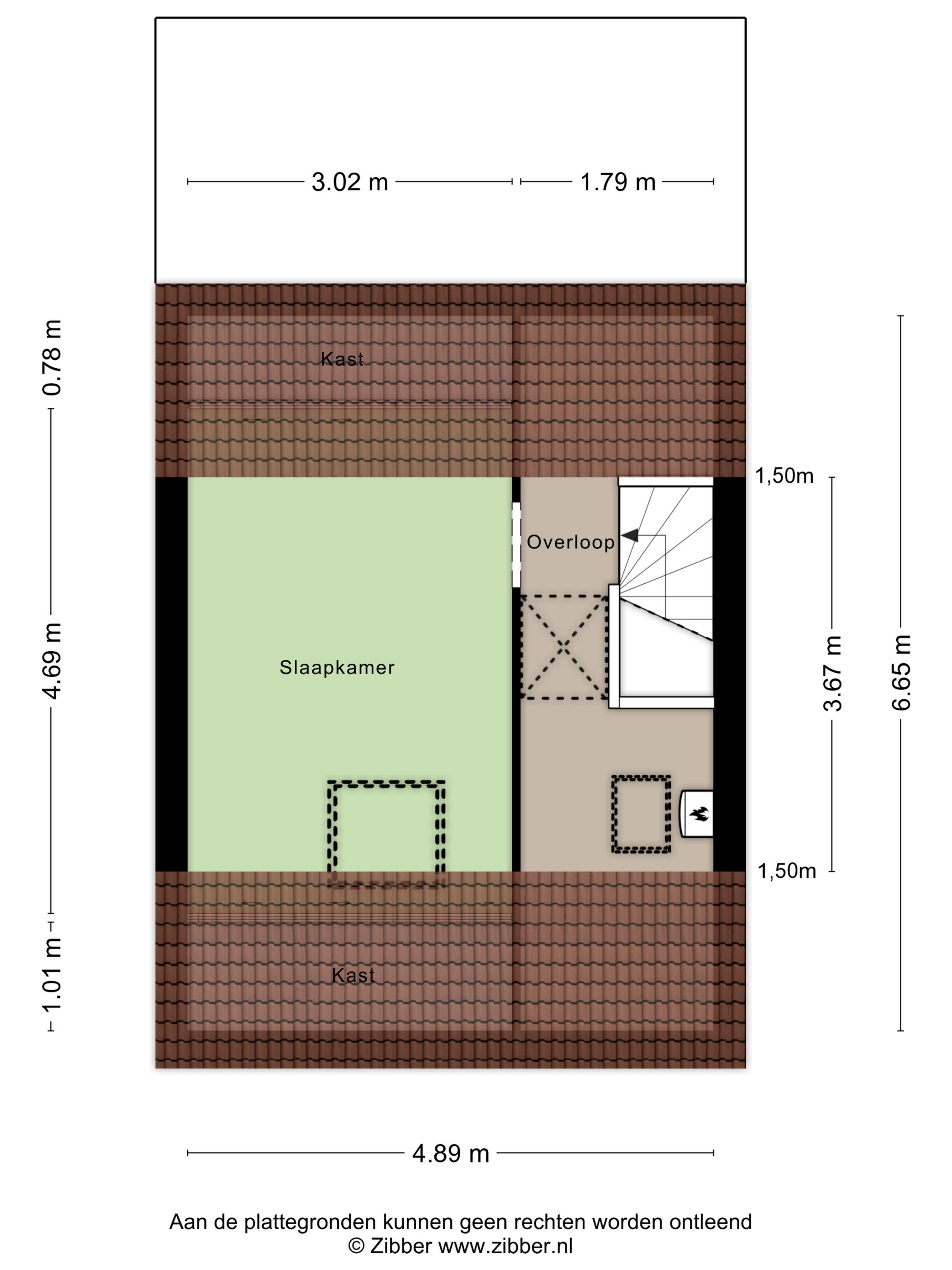 Op deze verdieping is ook een ruime zolderkamer aanwezig, voorzien van dakraam en bergruimte achter de knieschotten.