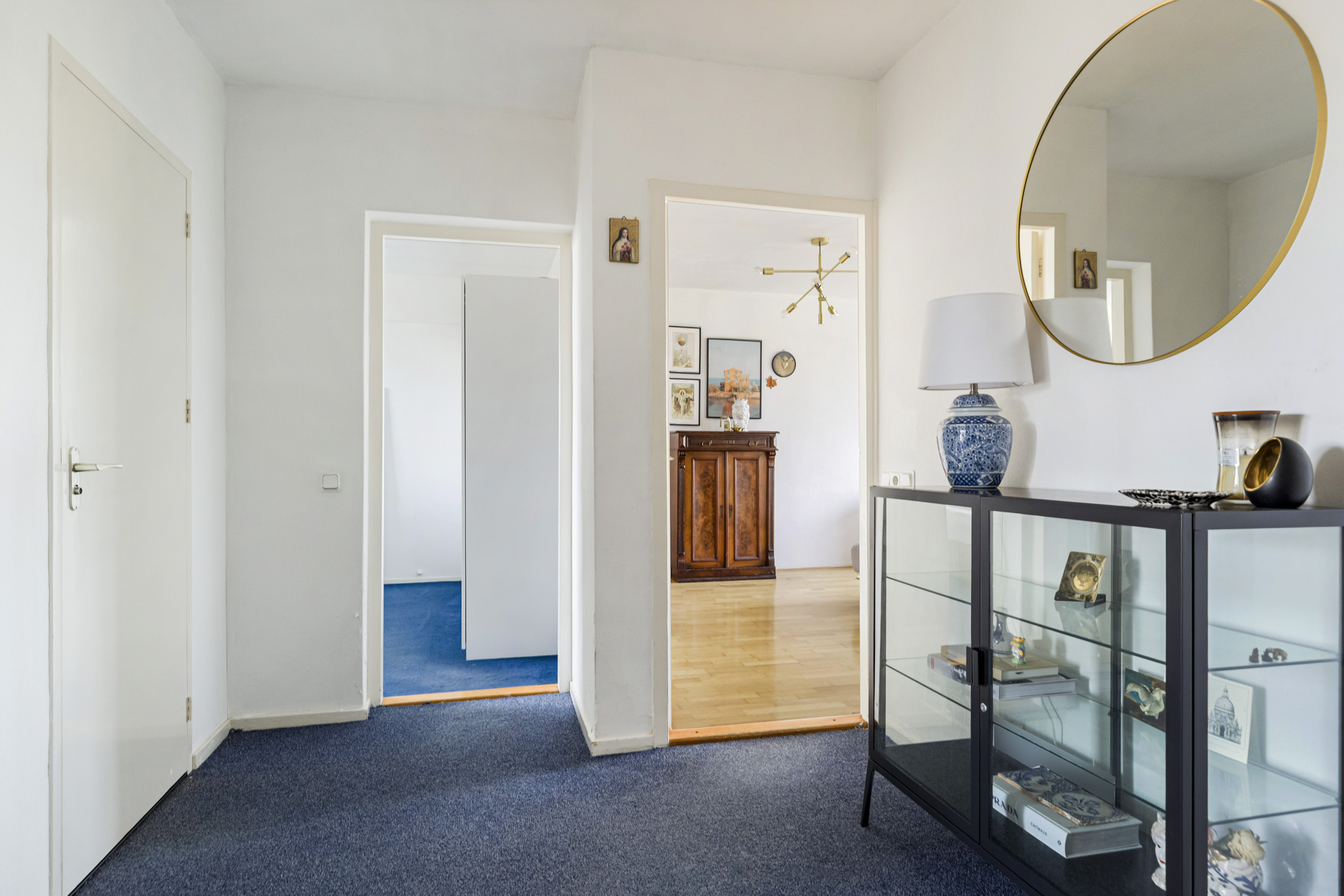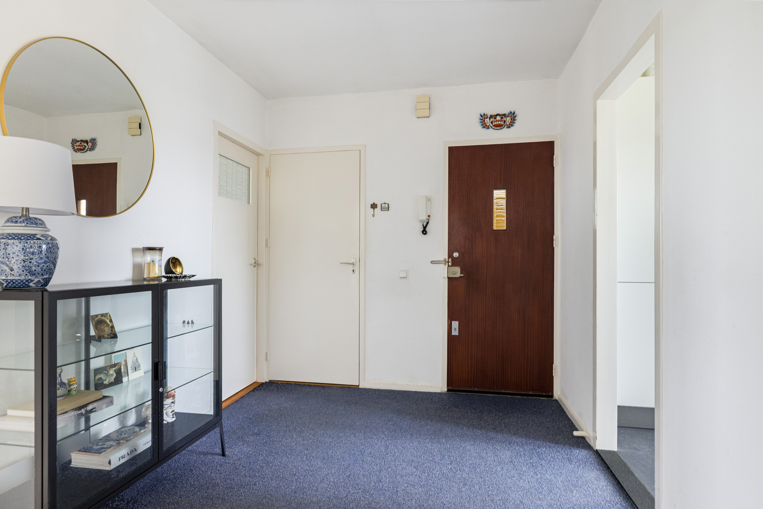 Via de woningentree kom je in de royale hal, die toegang biedt tot alle vertrekken. De hal beschikt over een praktische vaste kast, ideaal voor garderobe of extra bergruimte.
