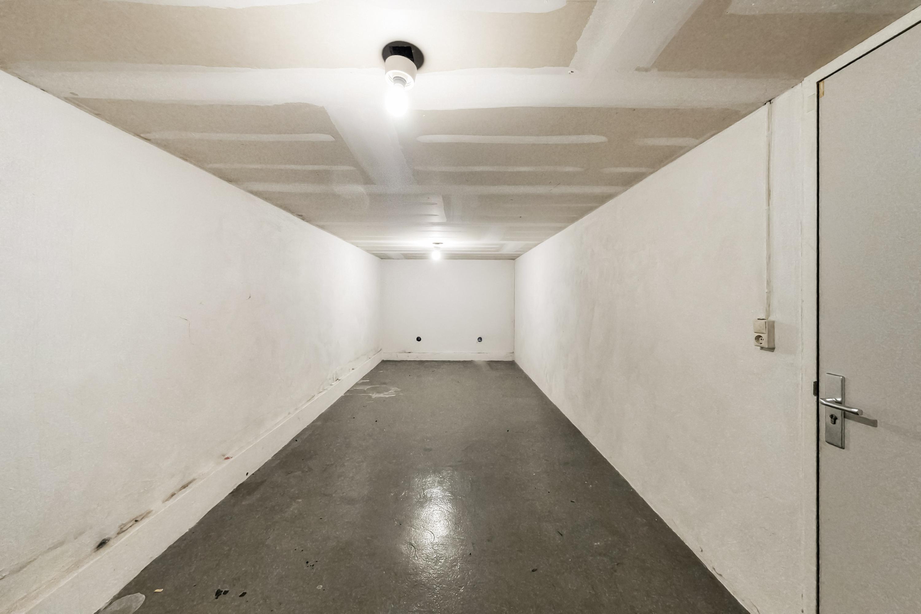 Overloop met toegang tot de bergingen en de parkeergarage.