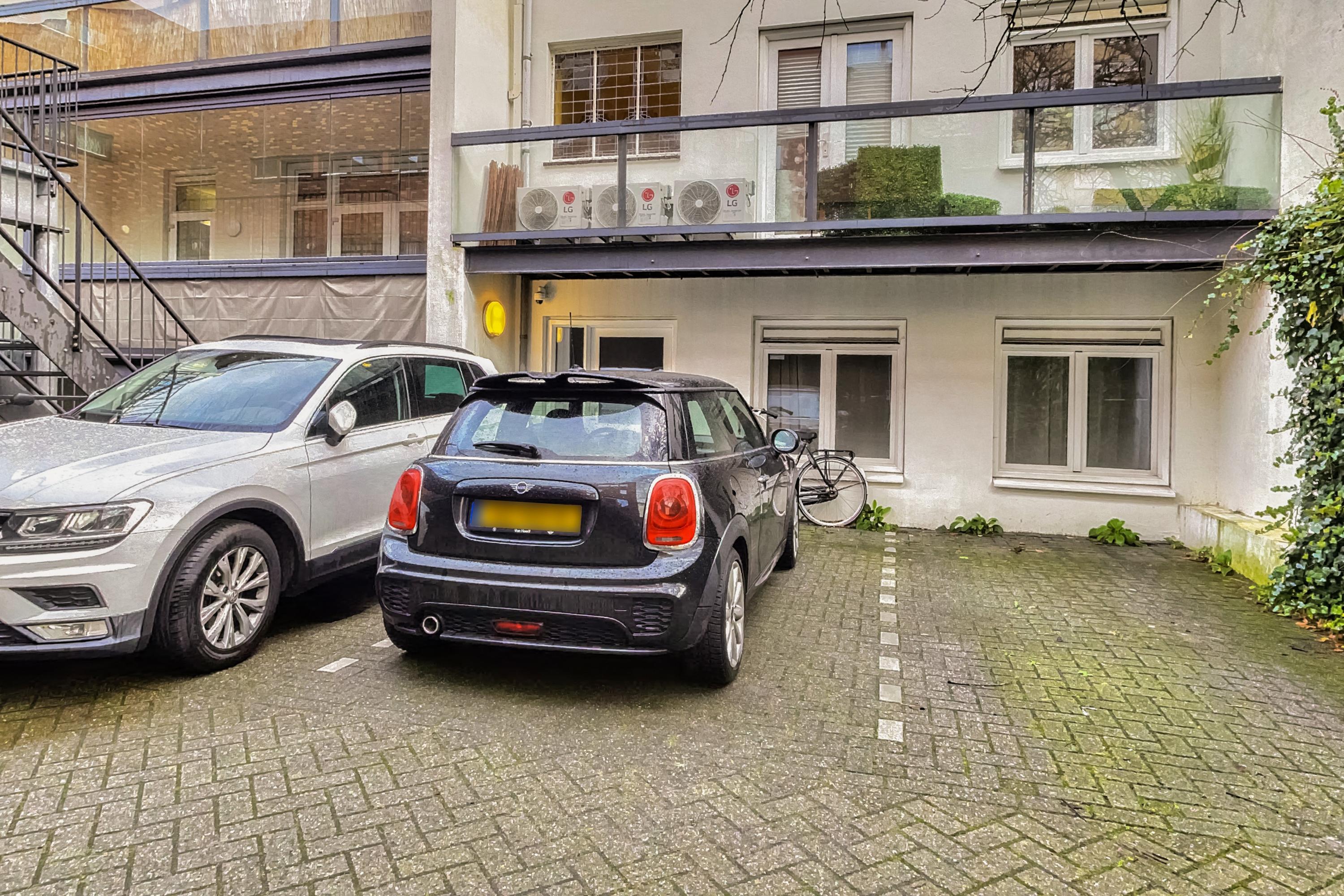 De parkeerplaats is ook via de onderbouw bereikbaar en bevindt zich in een afgesloten garage achter het complex, voorzien van een elektrische garagedeur met afstandsbediening.