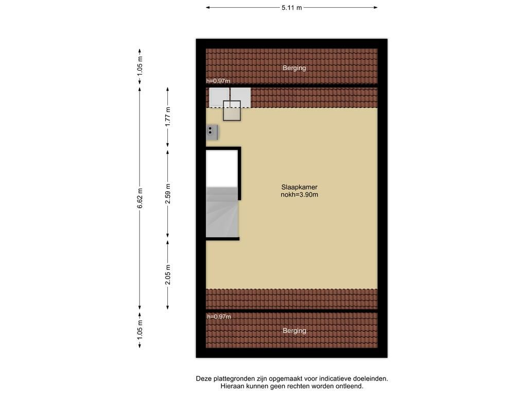 - Zolder met vaste kasten en bergruimte achter de knieschotten