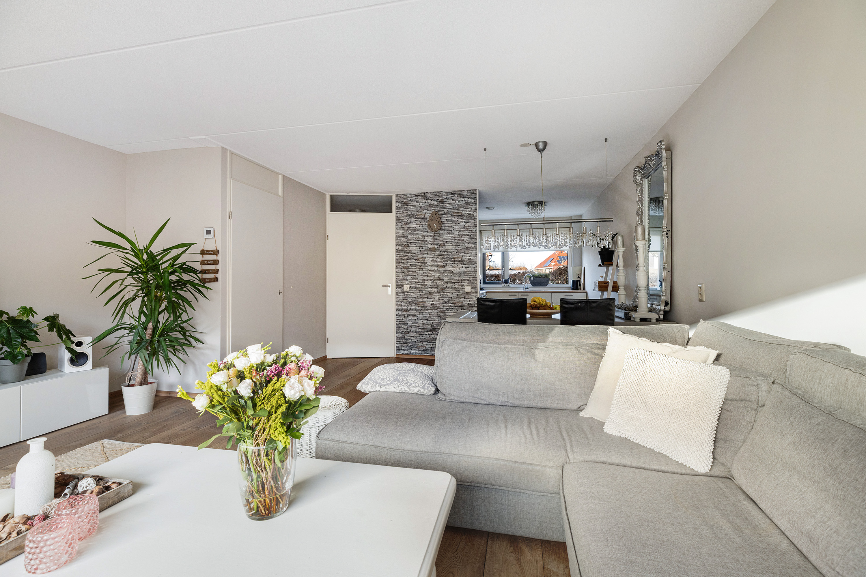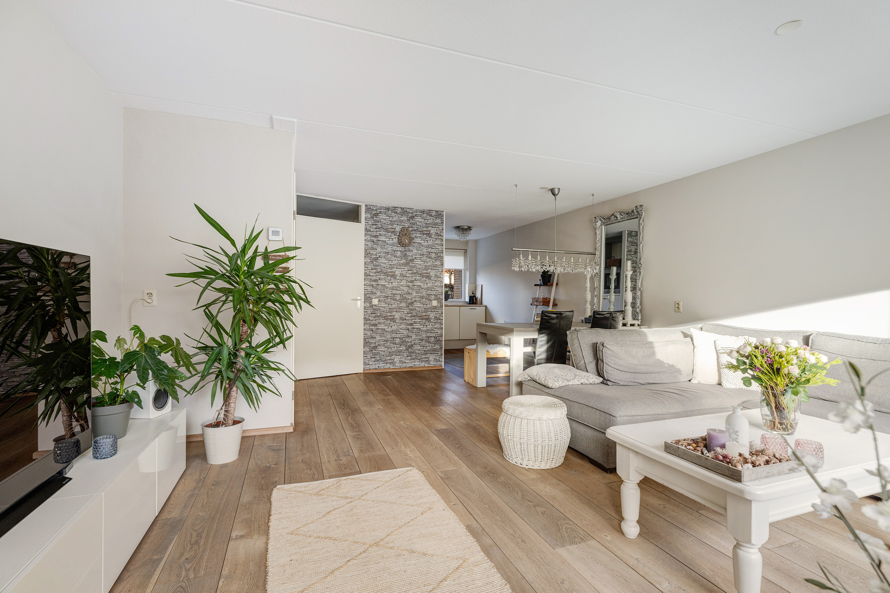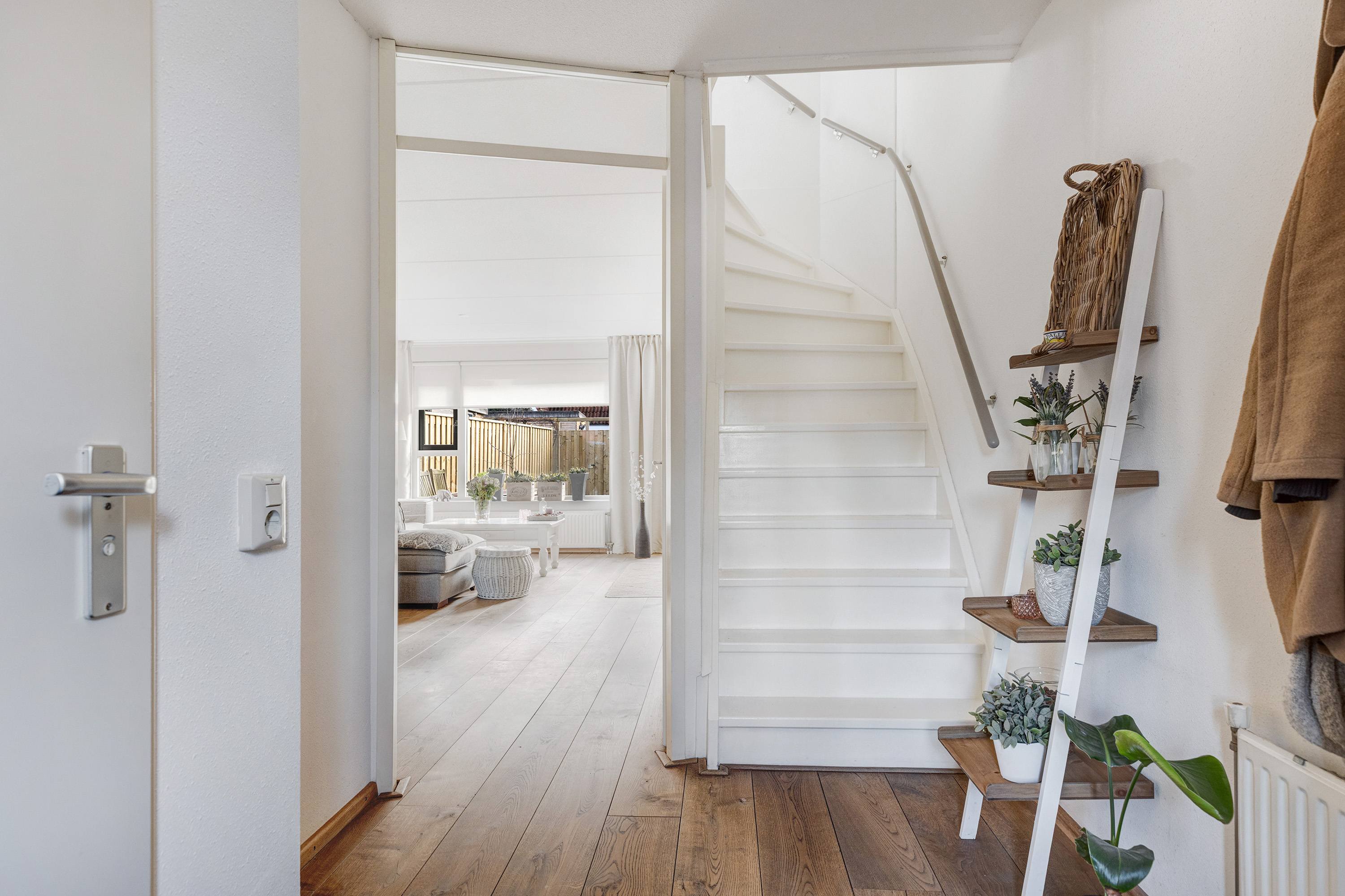 - Eikenhouten vloer en strak gestucte wanden op de begane grond