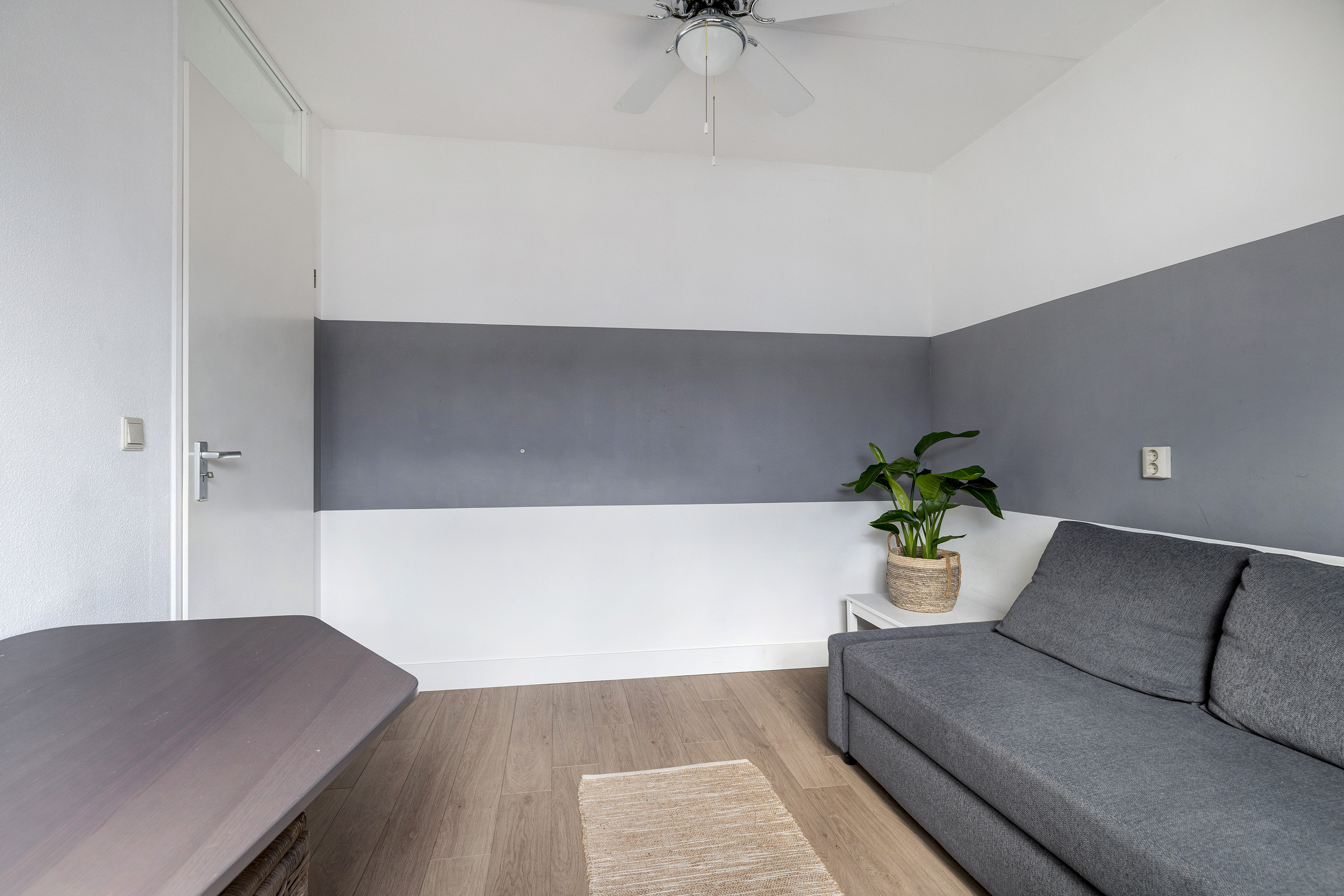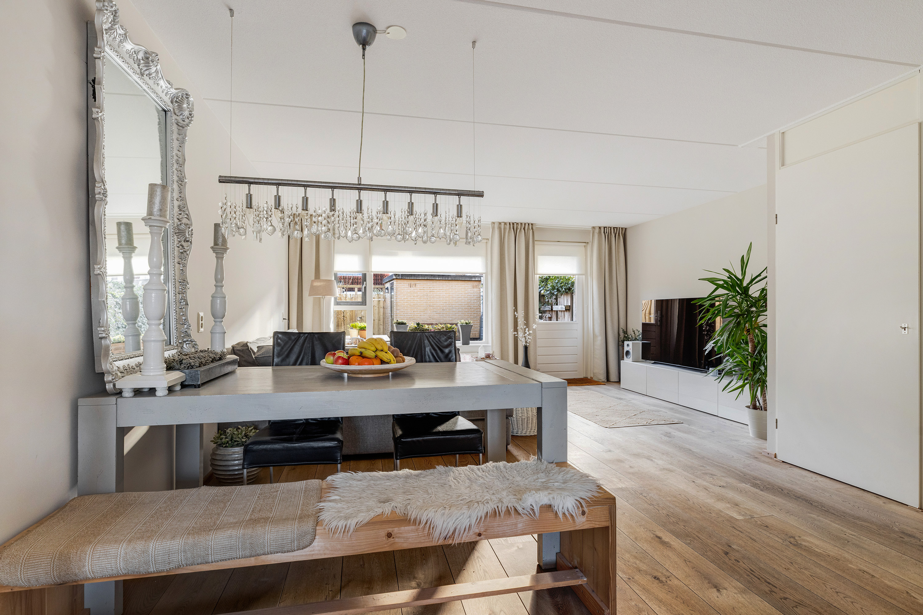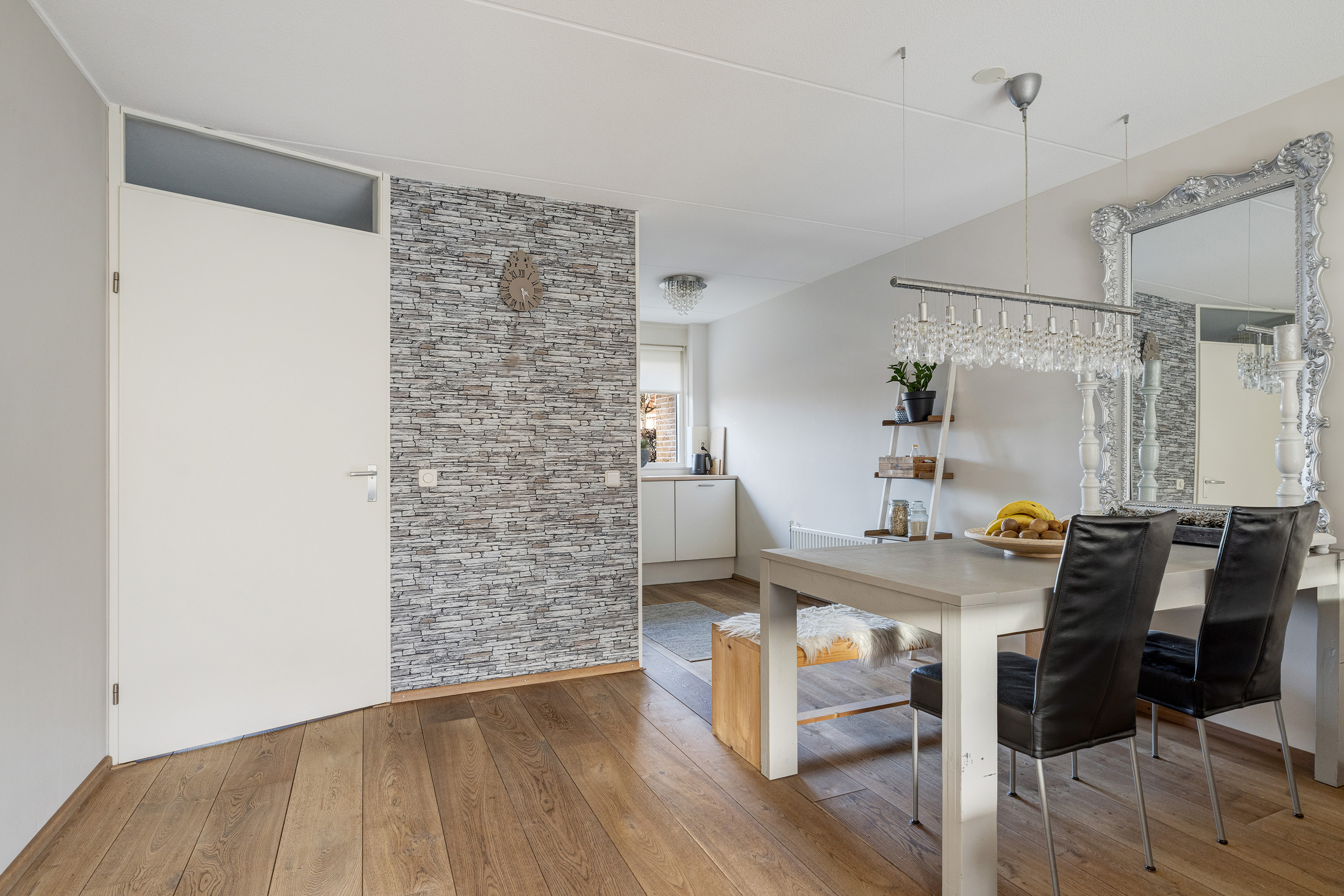 - Eikenhouten vloer en strak gestucte wanden op de begane grond
