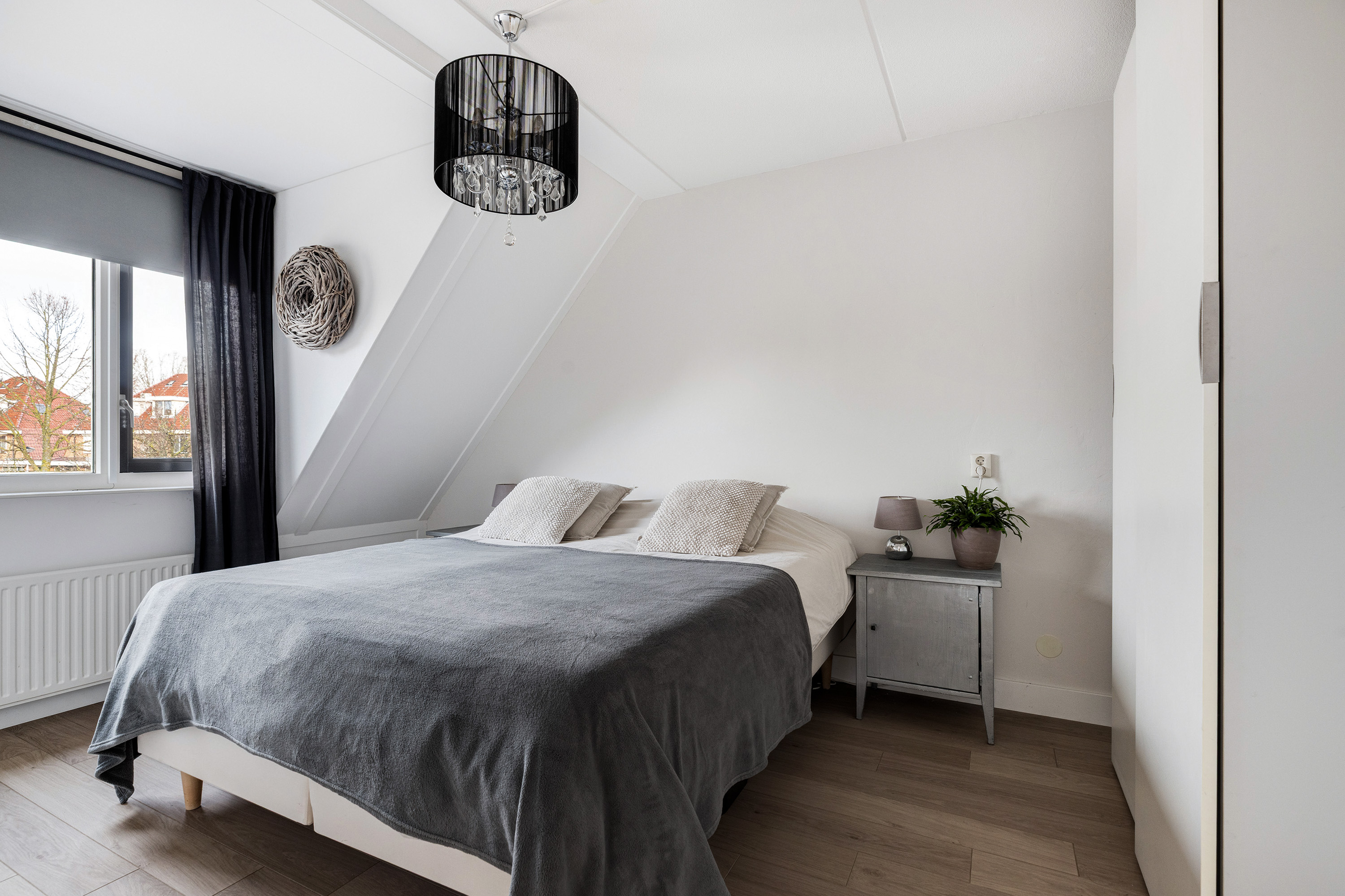 Slaapkamer 3 ligt ook aan de achterzijde, eveneens met kunststof dakkapel en laminaatvloer.