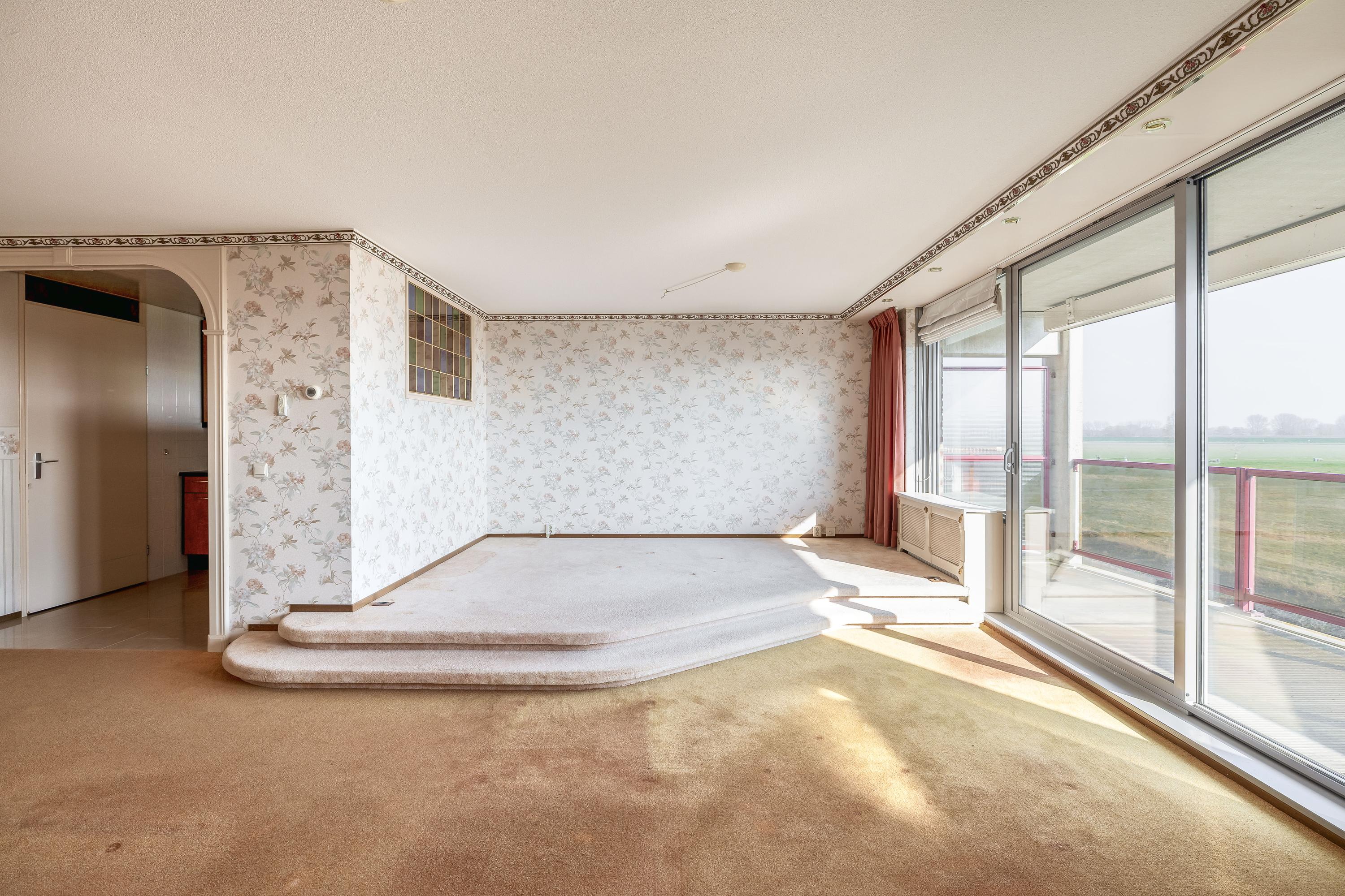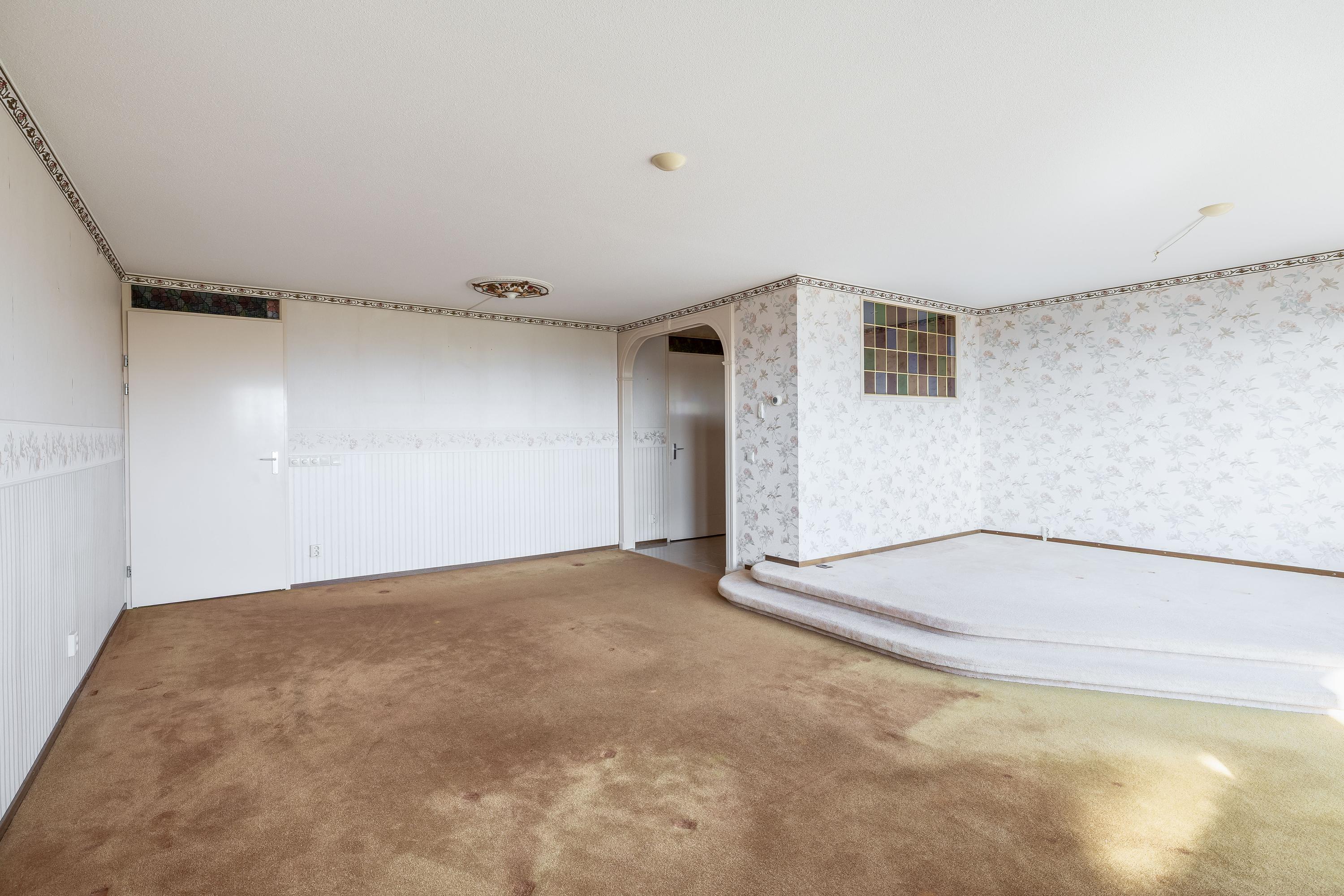 Royale en speels ingedeelde woonkamer (ca. 35 m2). Door het niveauverschil ontstaat er een natuurlijke scheiding tussen het zitgedeelte en een eetgedeelte. De grote raampartijen zorgen voor volop aangenaam daglicht. Vanuit de woonkamer, middels een schuifpui, heeft u direct toegang tot het ruime balkon, waar u kunt ontspannen terwijl u geniet van het weidse uitzicht over het natuurgebied.