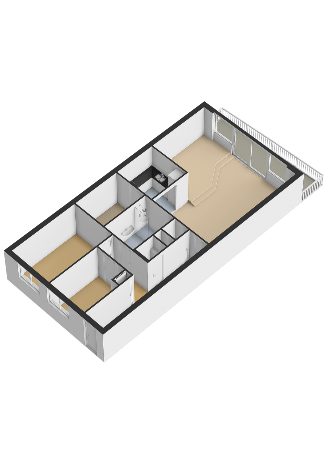 - Licht en zeer ruim 3-kamerappartement op de tweede verdieping;