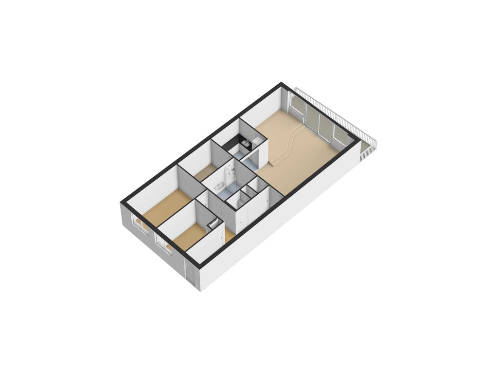Slaapkamer 2 (ca. 8 m2) is gelegen aan de voorzijde van het complex en is voorzien van laminaatvloer.