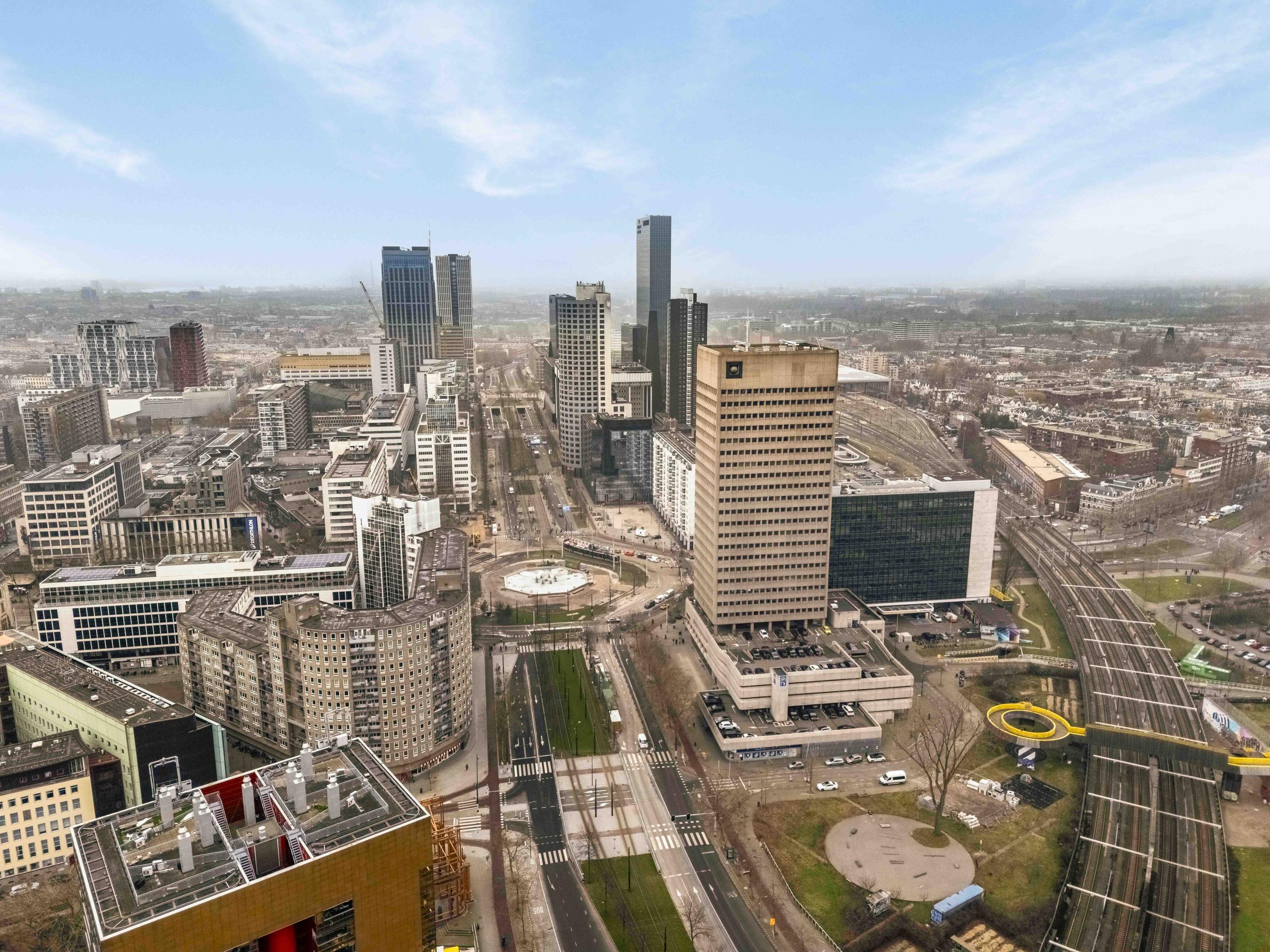 De ligging is ronduit ideaal. Station Rotterdam Centraal ligt letterlijk om de hoek, net als tram, metro en bus. Met de auto zit je zó op de A13, A16 of A20. Of je nu in de stad werkt of daarbuiten: je bent overal snel.