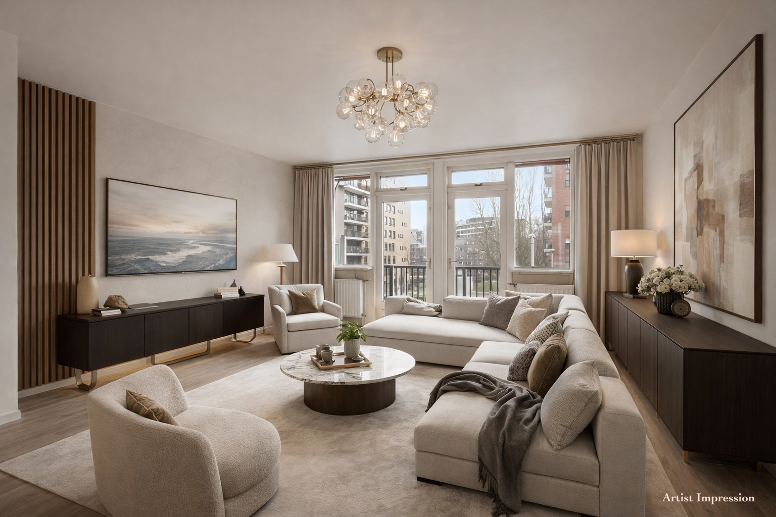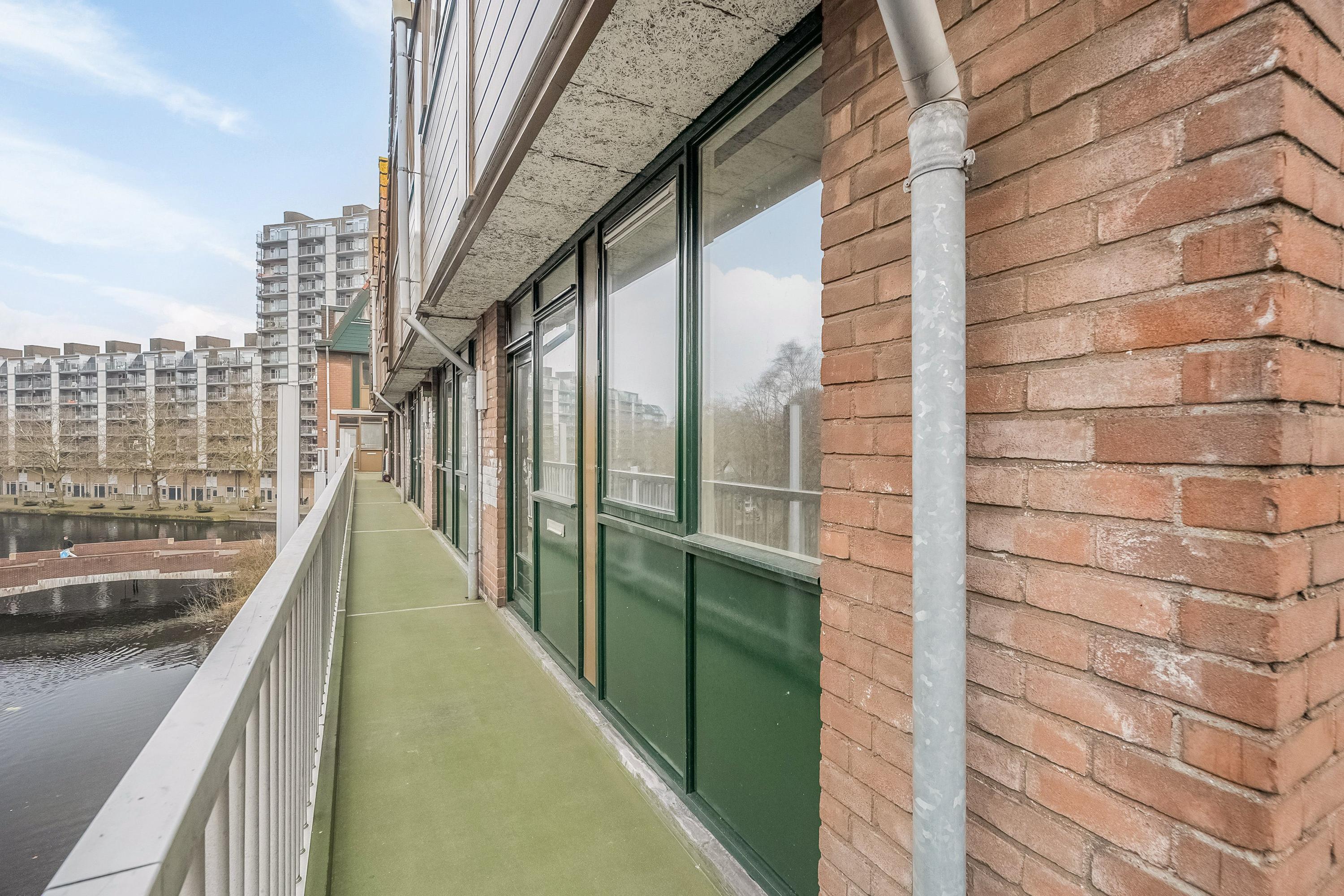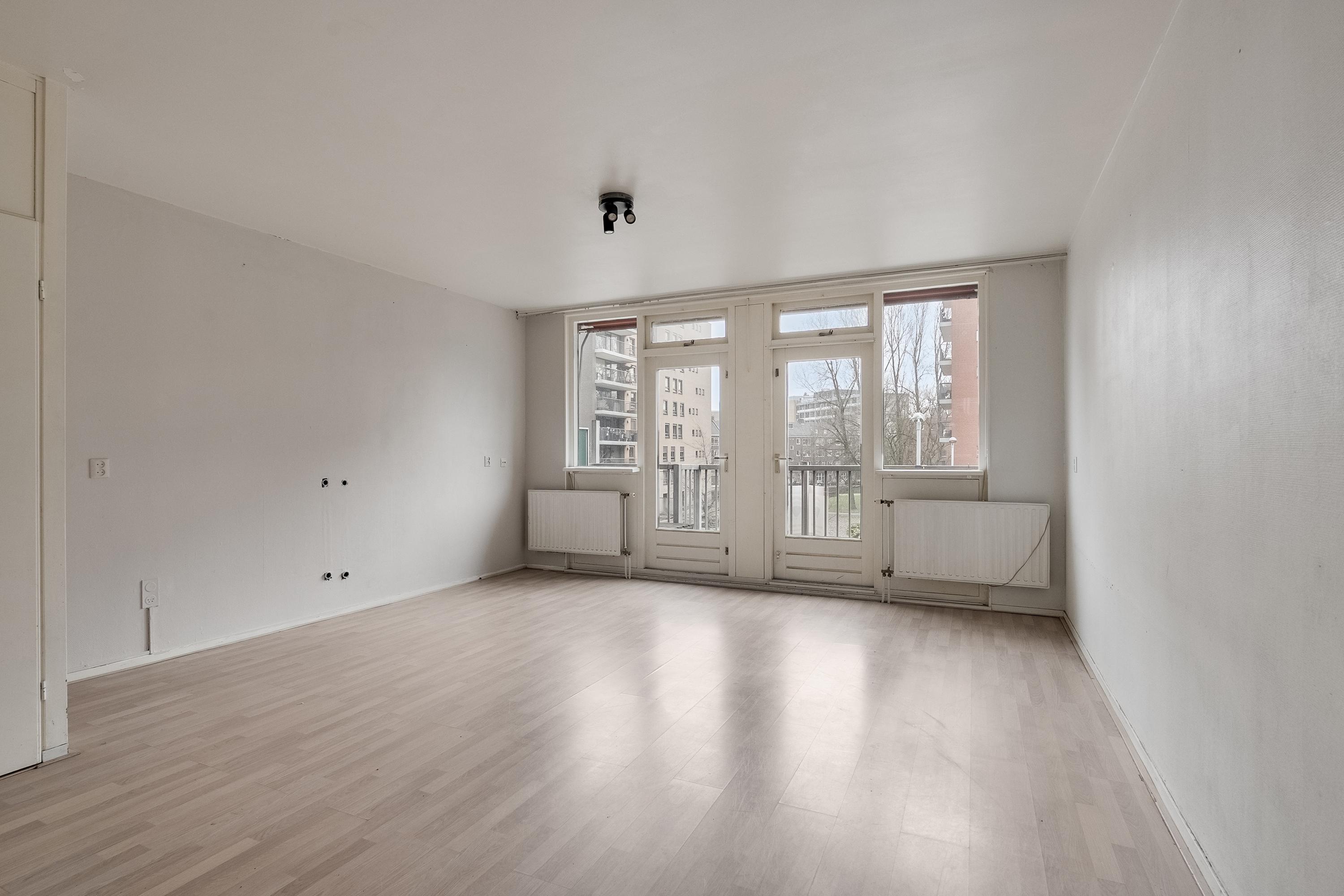 Vanuit de woonkamer kan je aan de voorzijde via 2 deuren het balkon op. Het balkon is lekker ruim (8m2) en vrij diep waardoor je eenvoudig een eettafel of loungeset kwijt kunt. Je zit op het zuid-oosten, heerlijk op de zon. Vanaf het balkon kijk je zo op de Lombardkade.