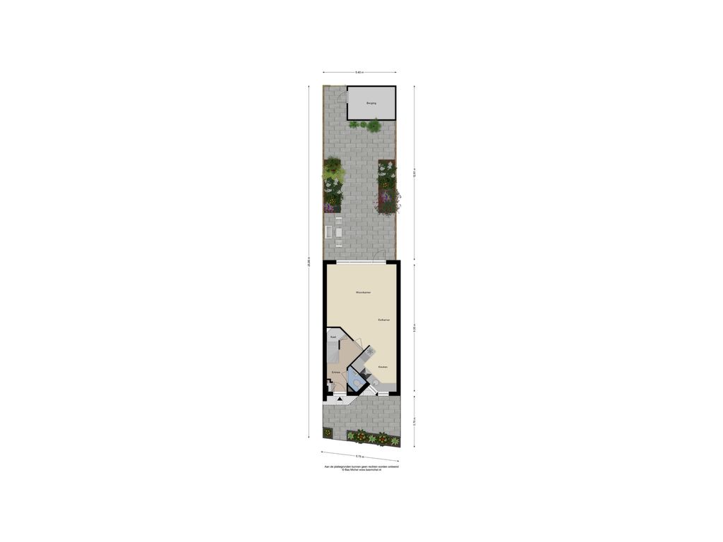 Vanuit de woonkamer is de achtertuin bereikbaar. De tuin ligt gunstig op het zuiden, is volledig bestraat en ingericht met grote vaste plantenbakken. Daarnaast is er een handmatig bedienbaar zonnescherm aanwezig. De tuin is omsloten door houten schuttingen en beschikt over een stenen berging achterin de tuin. Via de achterom is de tuin ook van buitenaf bereikbaar.