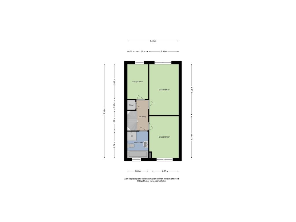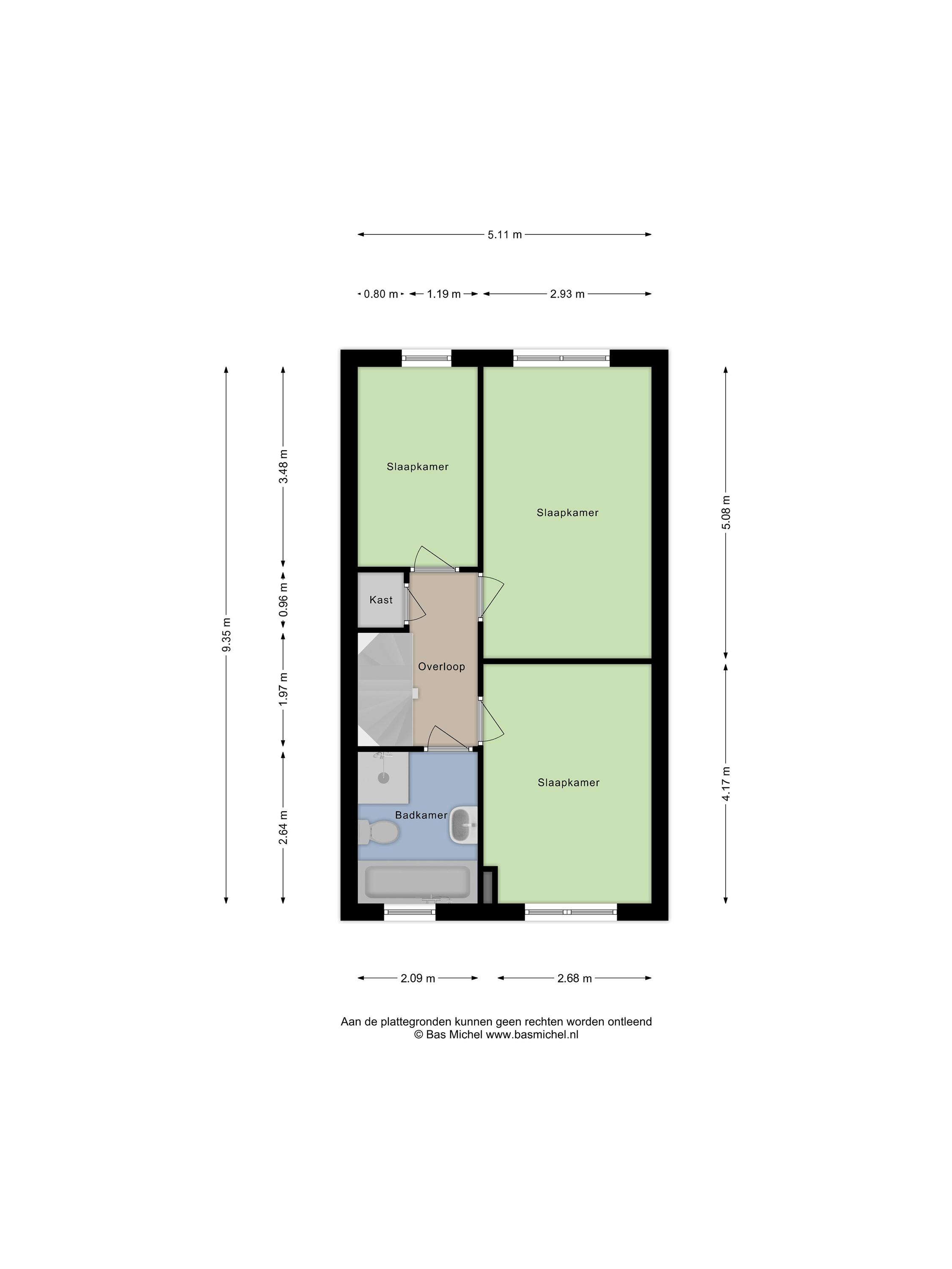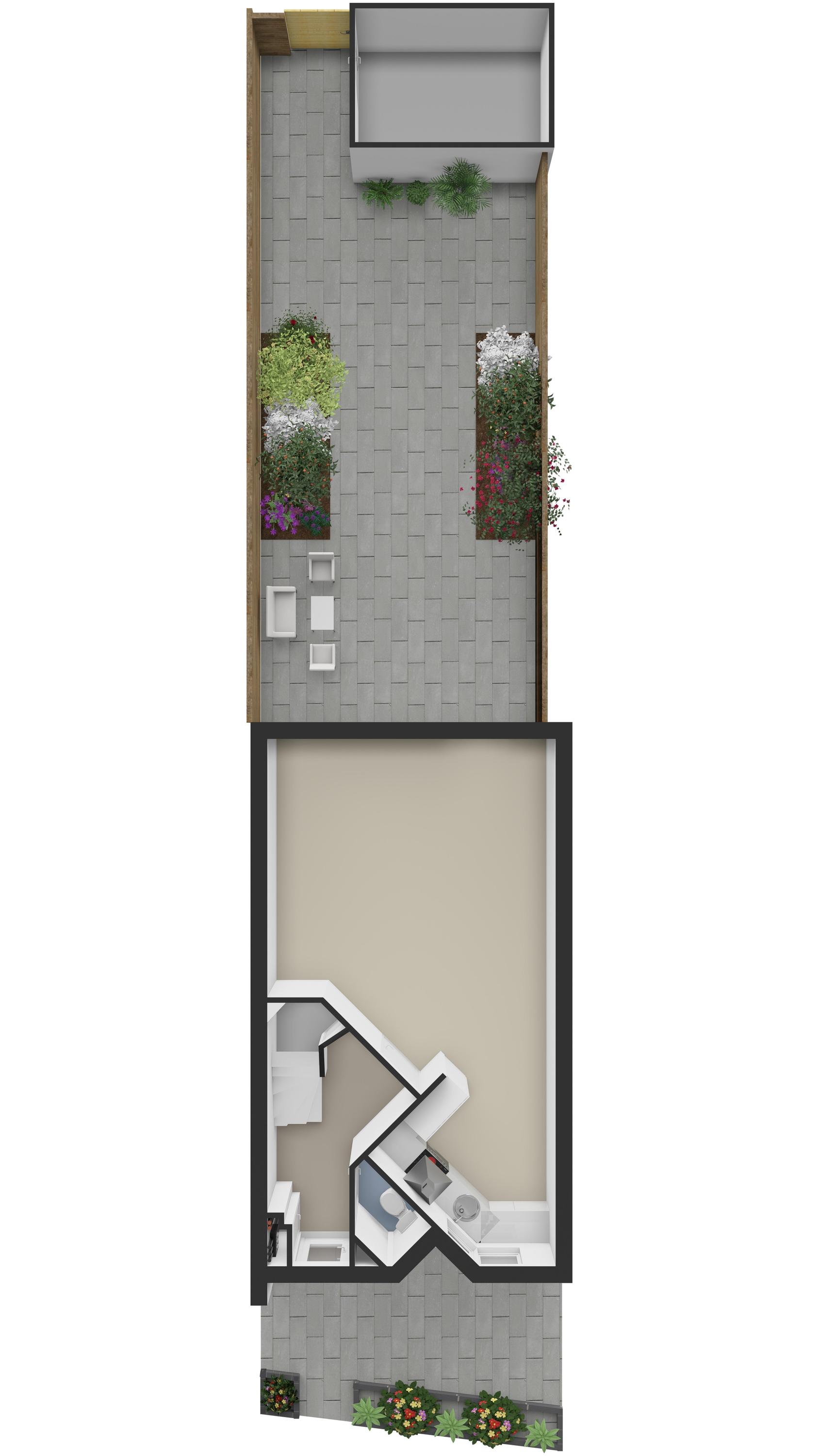 Op deze verdieping bevindt zich de vierde slaapkamer, eveneens voorzien van een dakraam aan de achterzijde. Over de gehele verdieping zijn knieschotten aanwezig, wat zorgt voor veel praktische bergruimte. De vloer is voorzien van vloerbedekking.