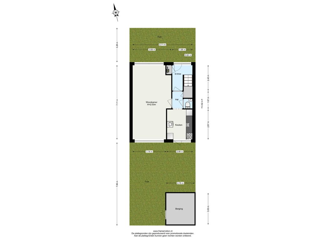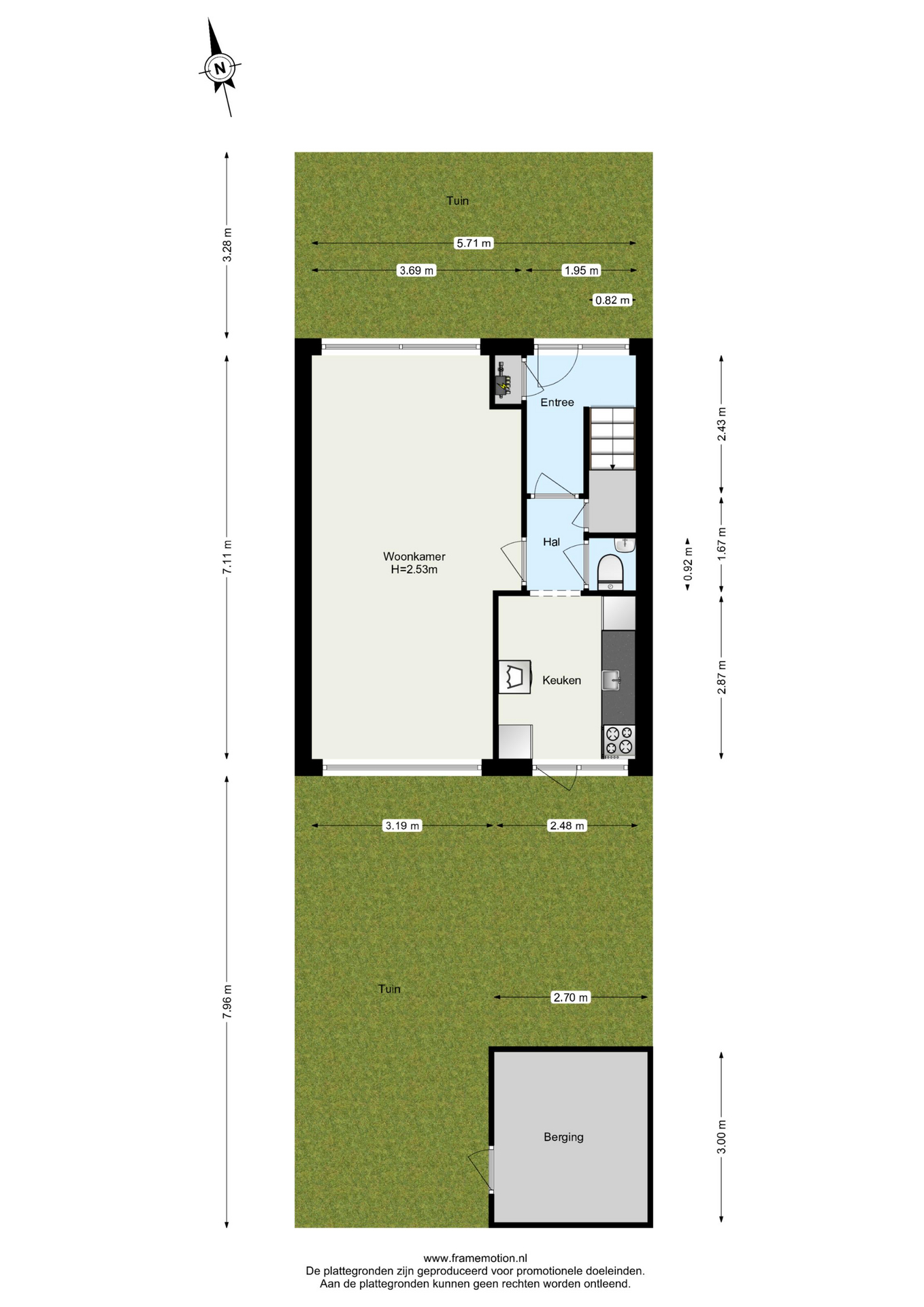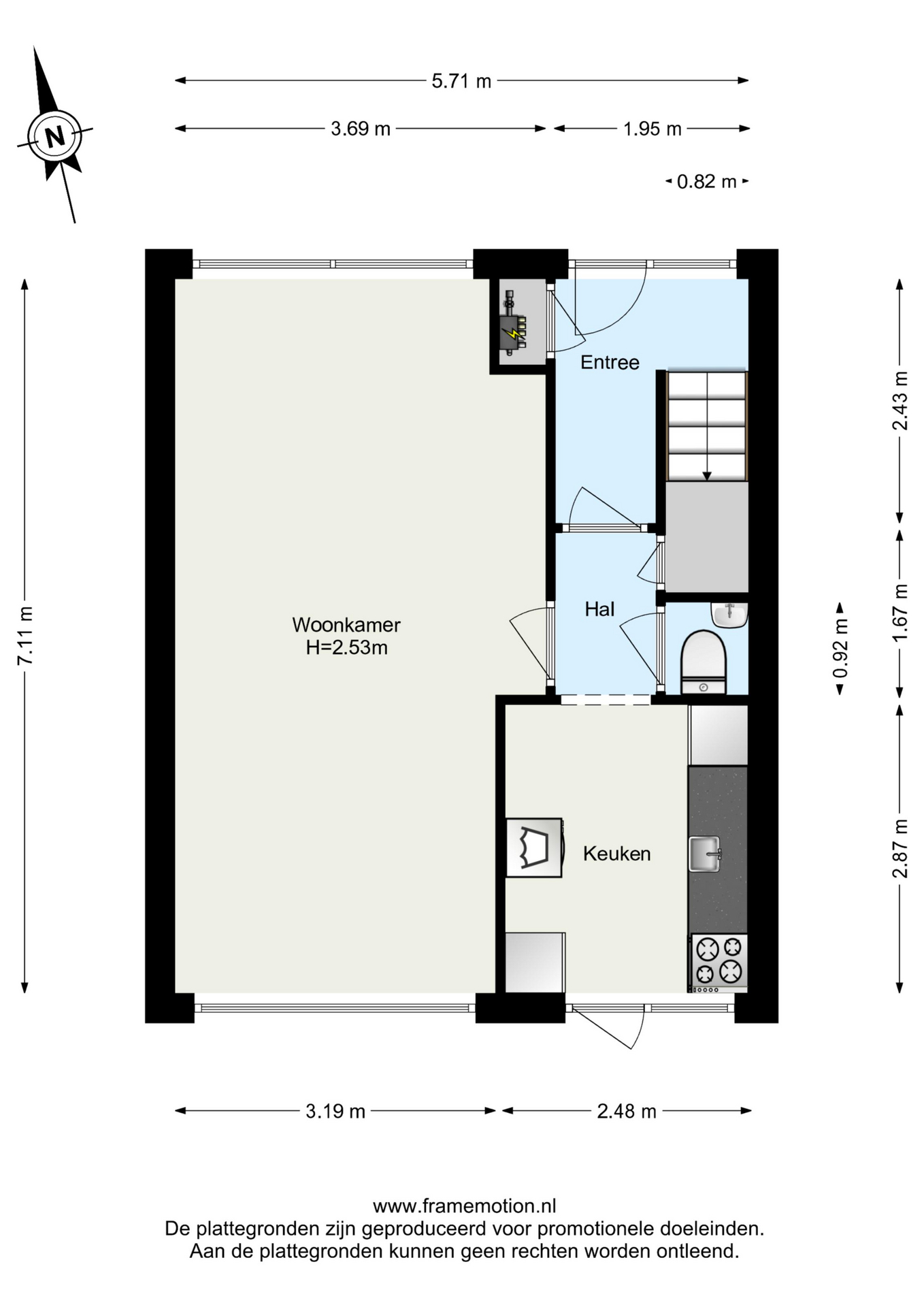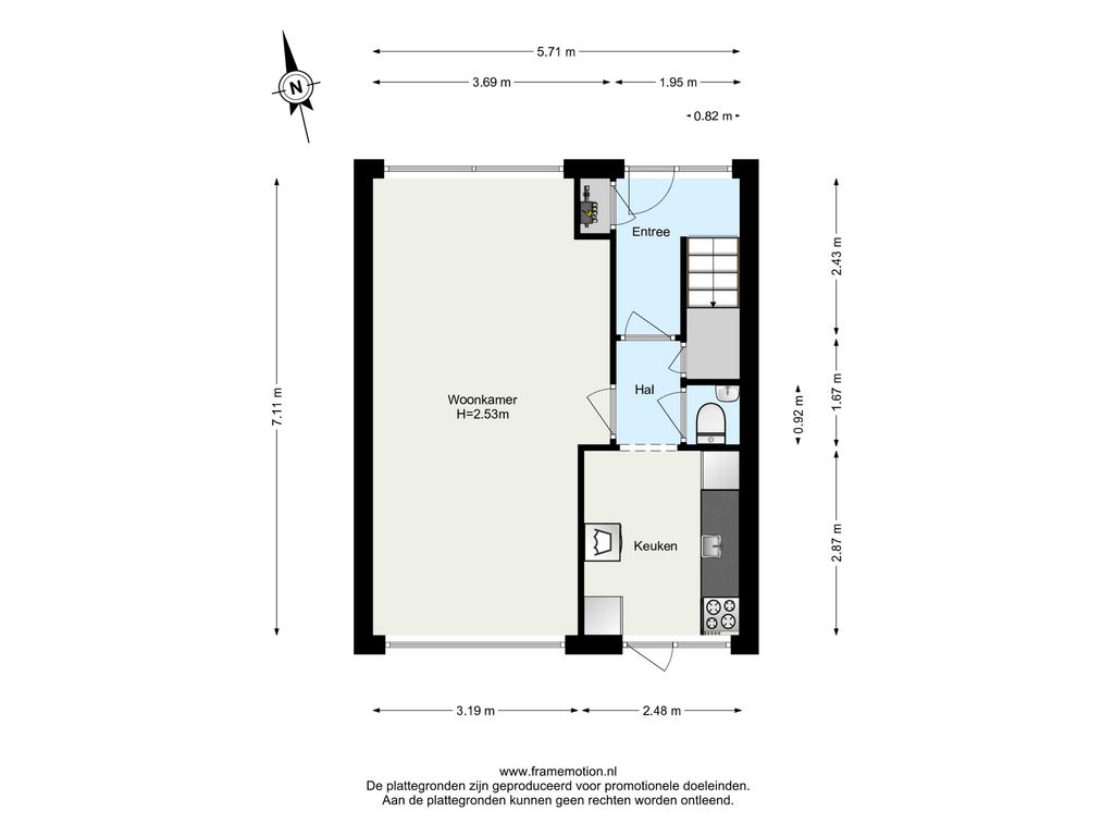 Entree in het voorportaal met trapopgang naar de eerste verdieping en de meterkast. Via een deur bereikt u de tussenhal met trapkast en toegang tot zowel de woonkamer als de keuken.
